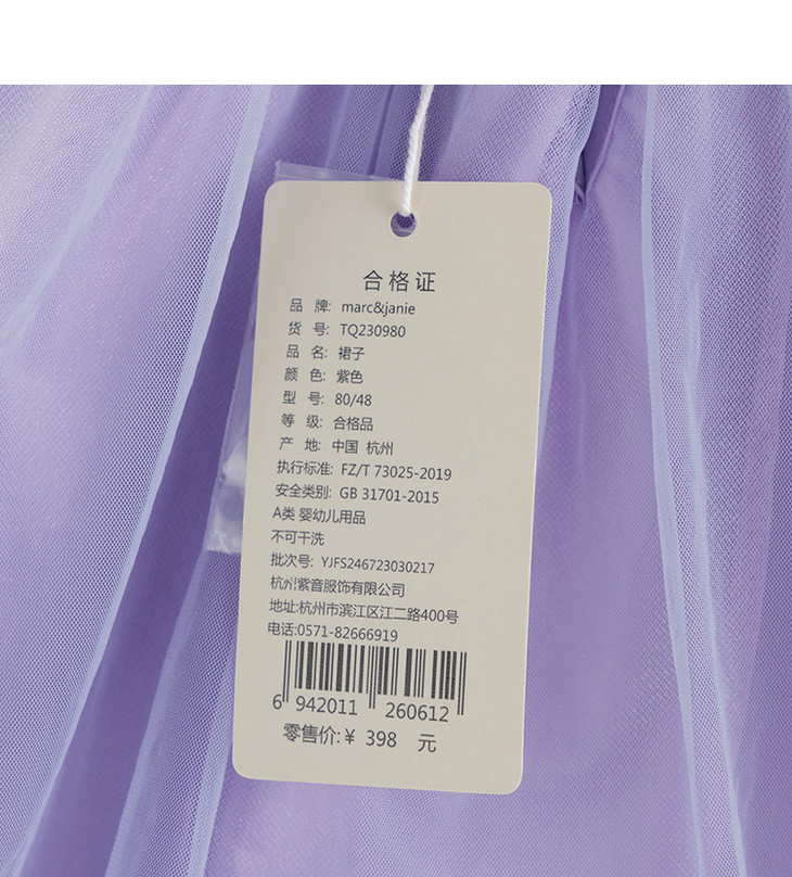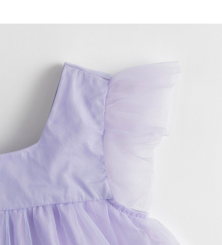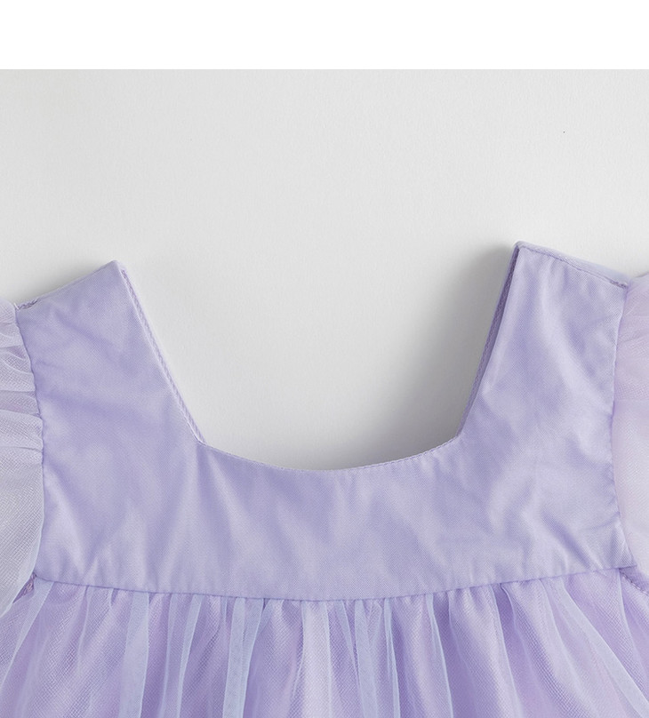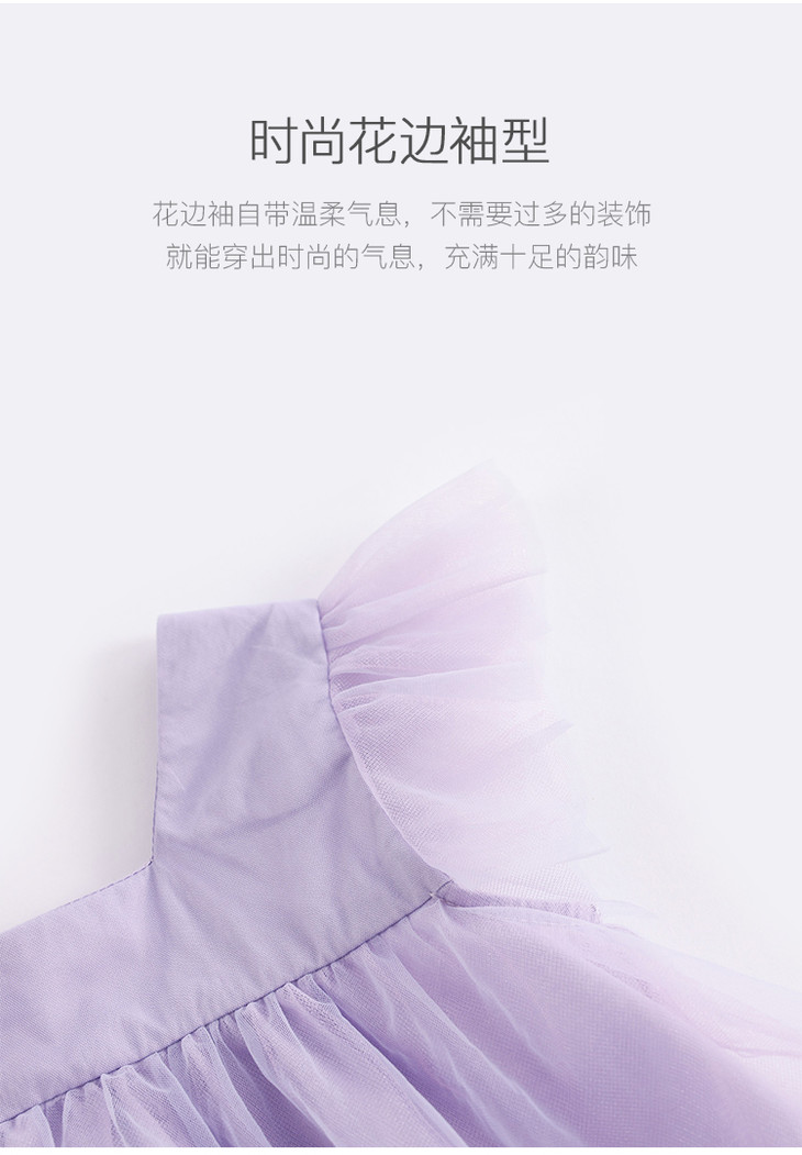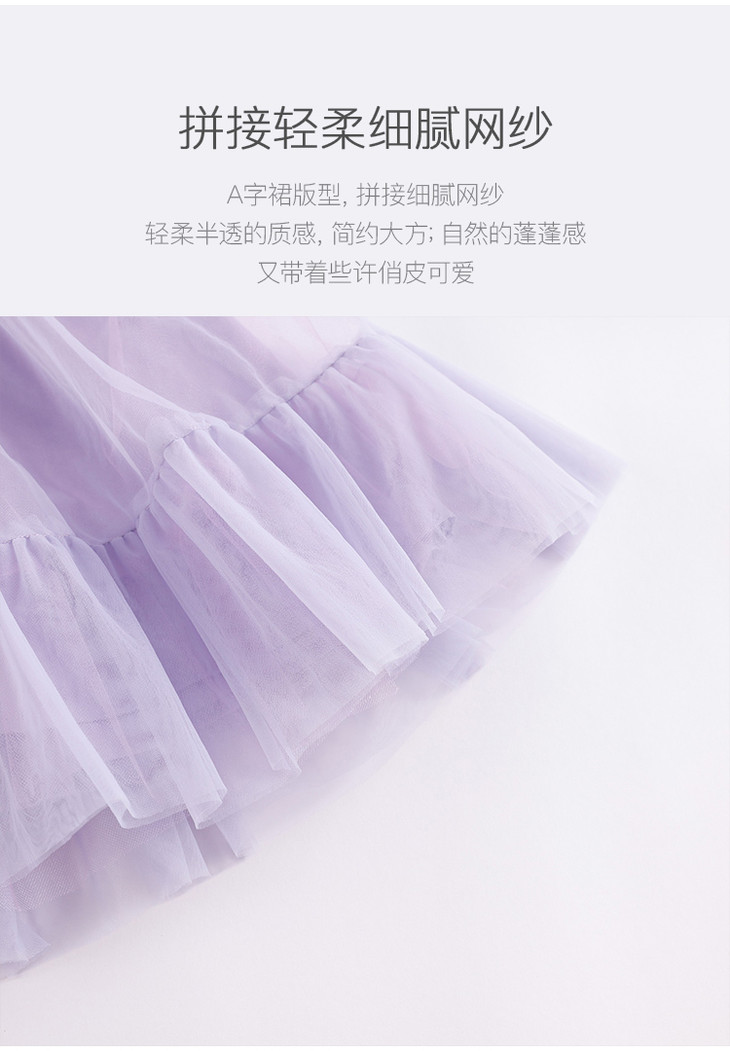 马克珍妮新款夏装 女童方领花边袖蓬蓬网纱连衣裙230980