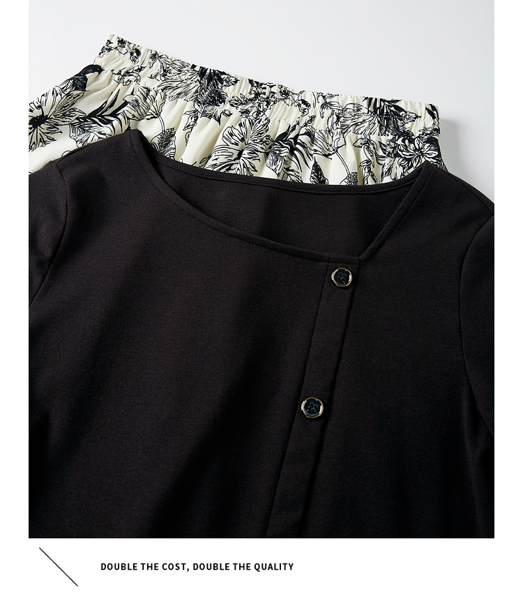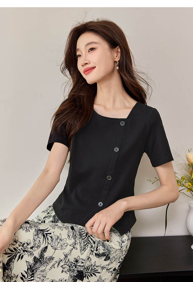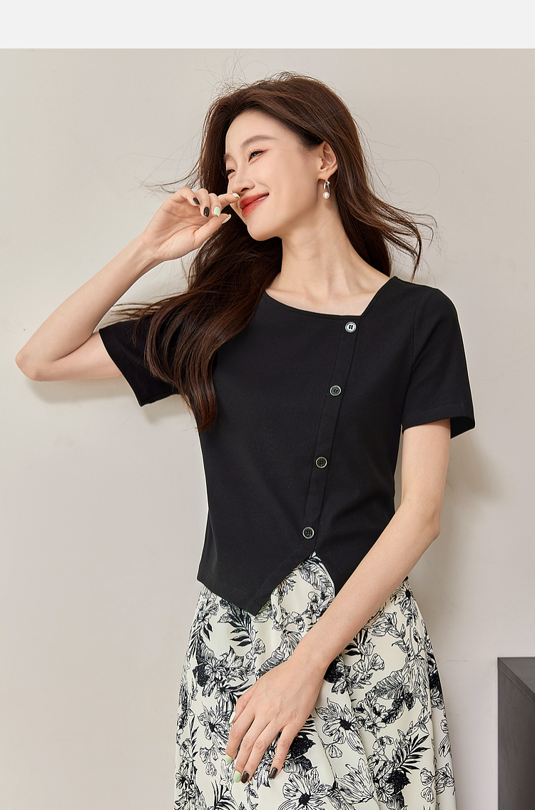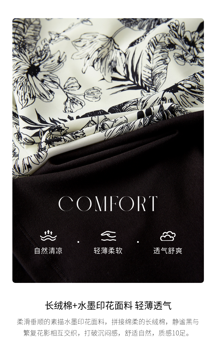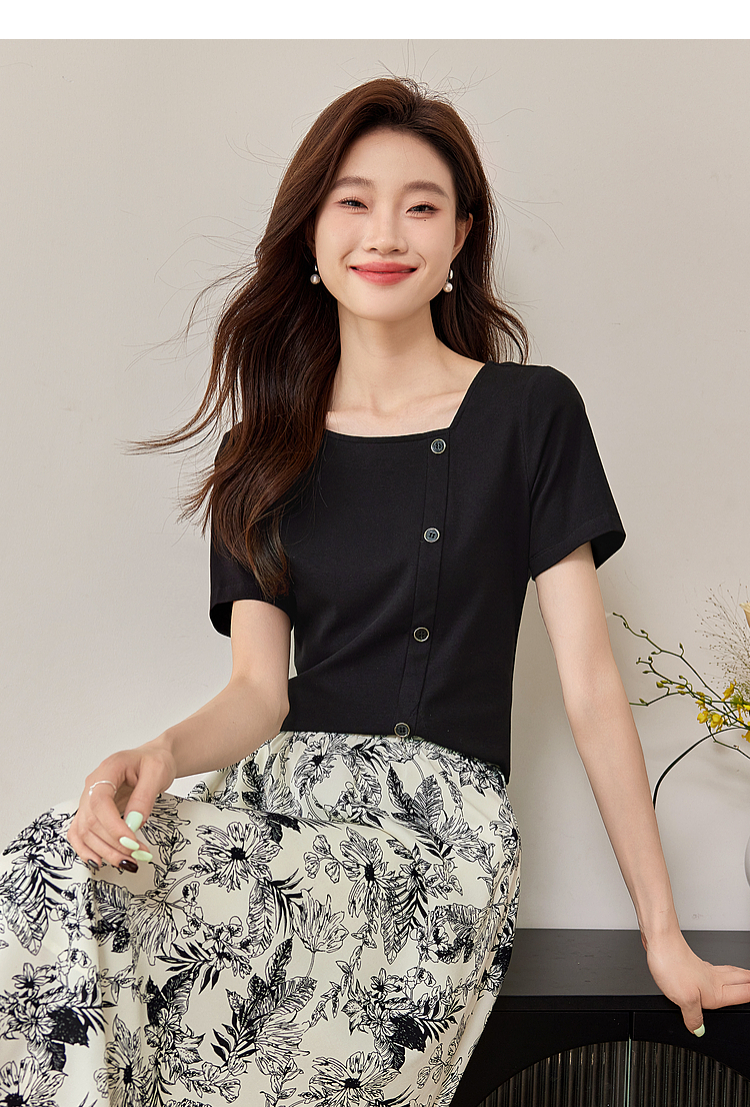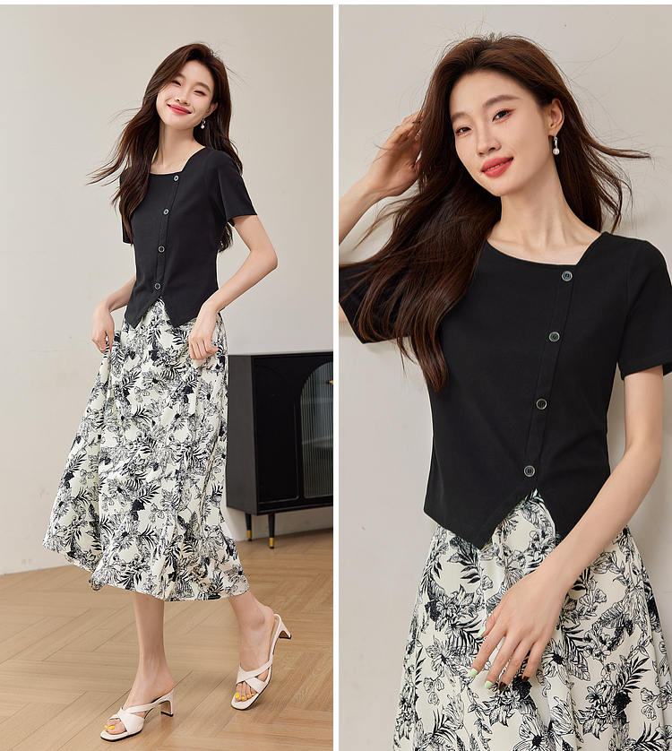 【专属特价】熙世界气质国风水墨印花套装夏装不规则方领T恤半身裙子两件套