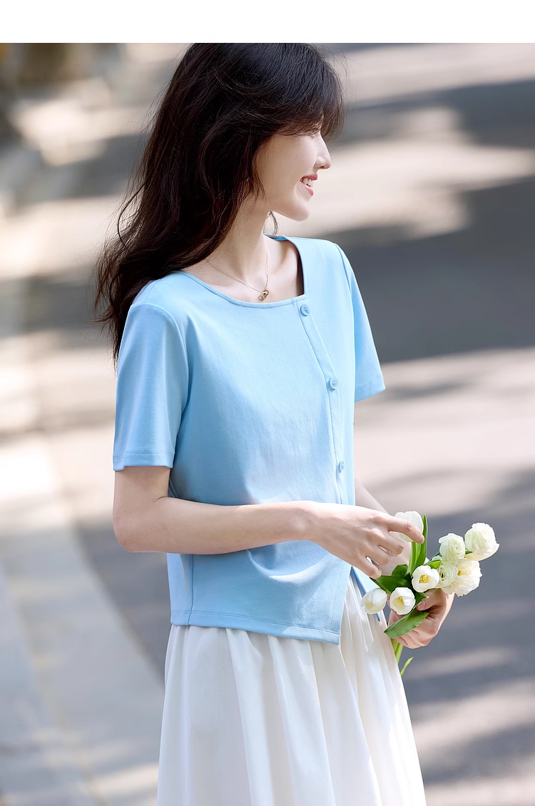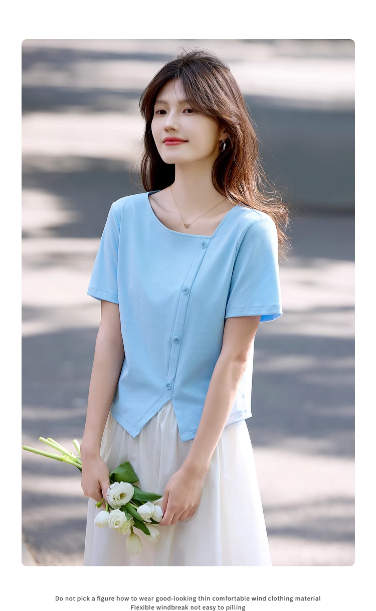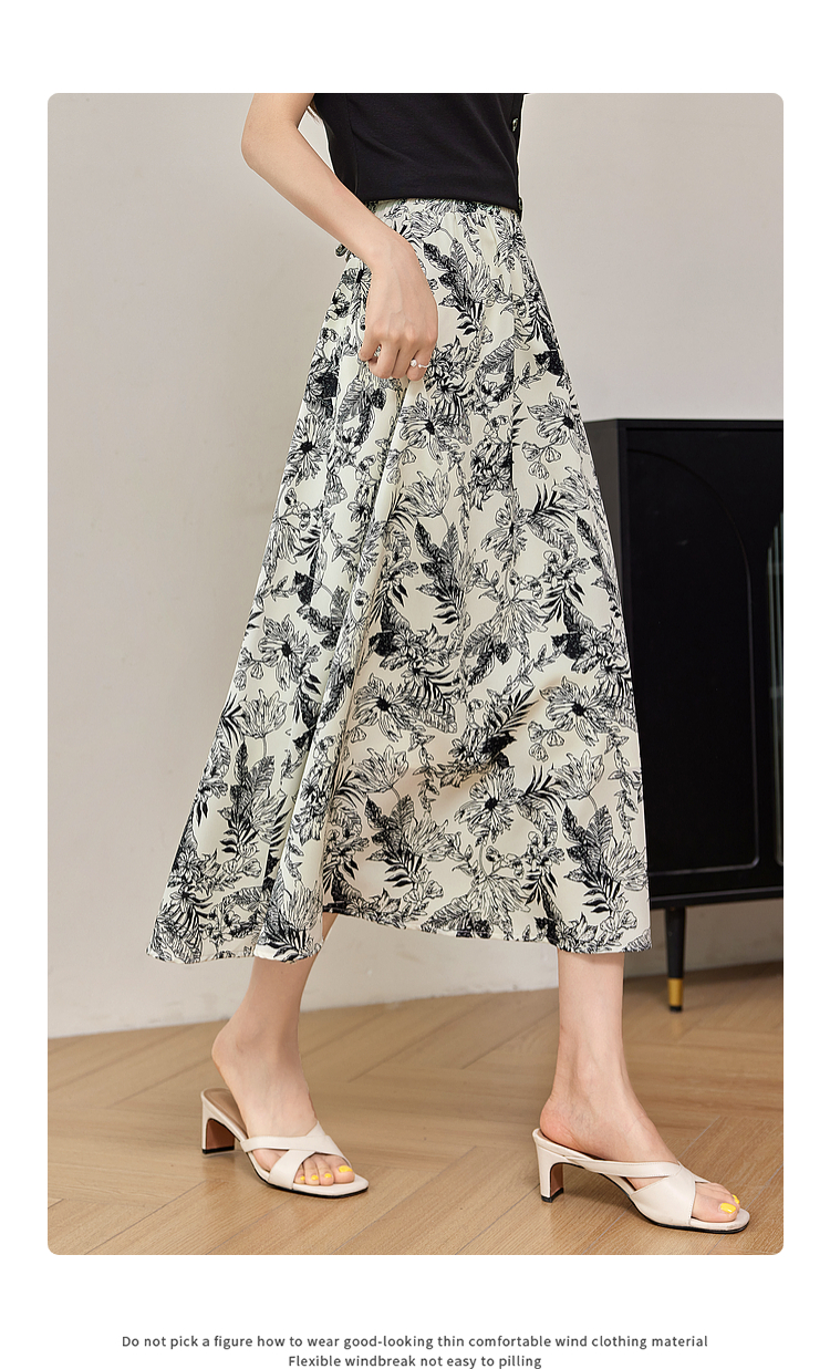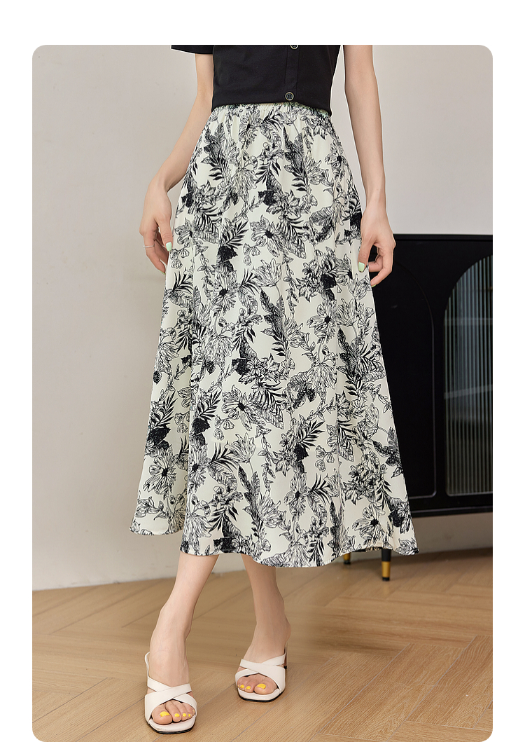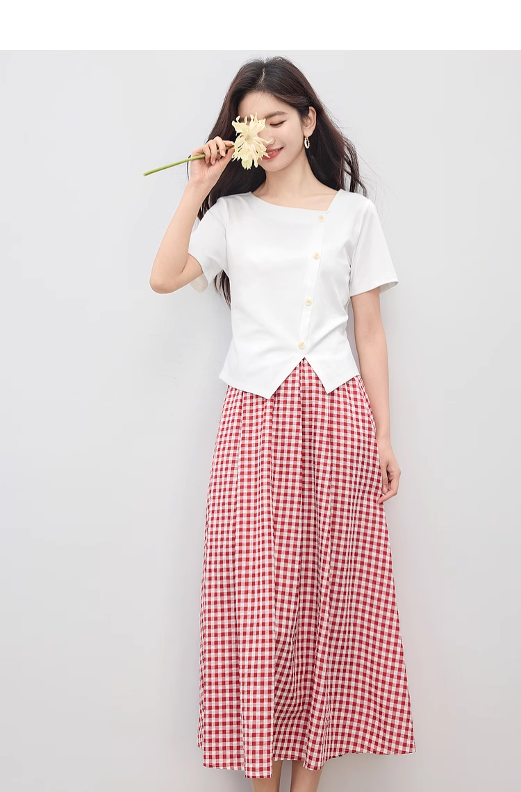 【专属特价】熙世界气质国风水墨印花套装夏装不规则方领T恤半身裙子两件套