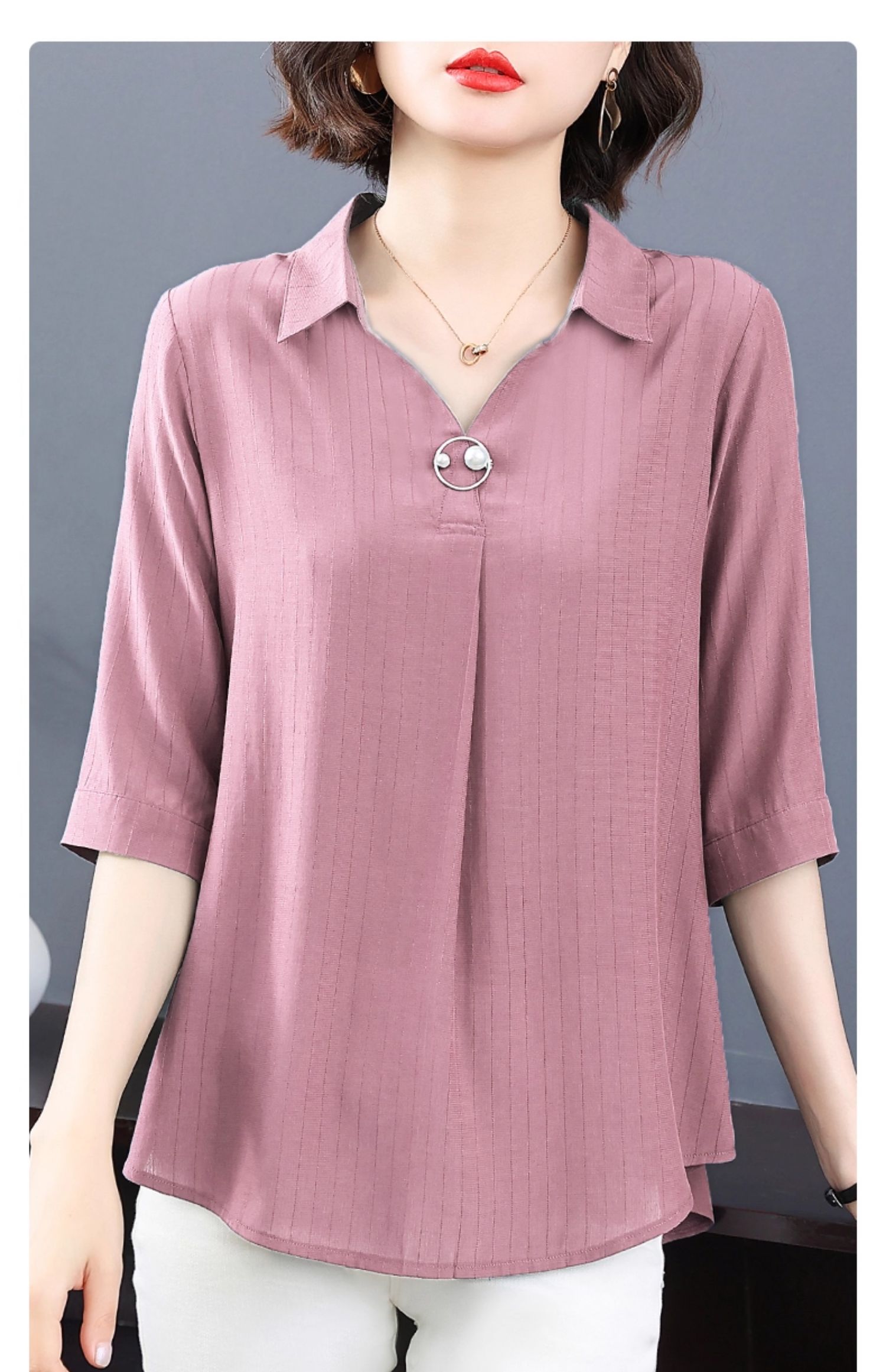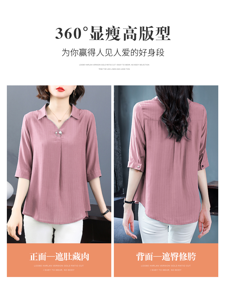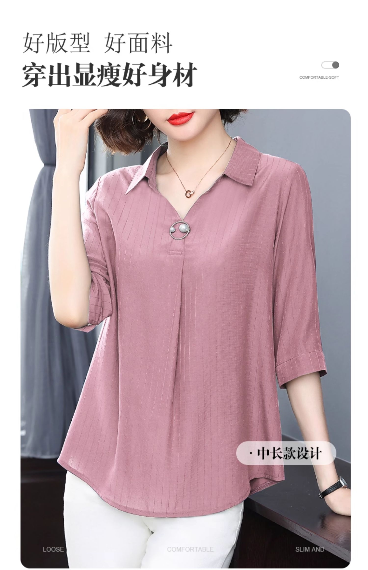 女士中袖雪纺衬衫2025年新款时尚女装夏季短袖七分袖上衣洋气小衫
