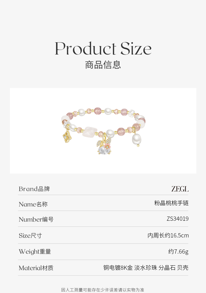 ZEGL设计师本命年桃花兔系列兔子手链女生轻奢小众精致珍珠手饰品