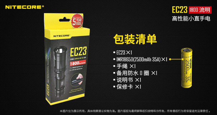 NITECORE奈特科尔EC23超亮强光电筒户外高流明小直高性能手电筒