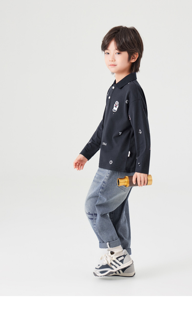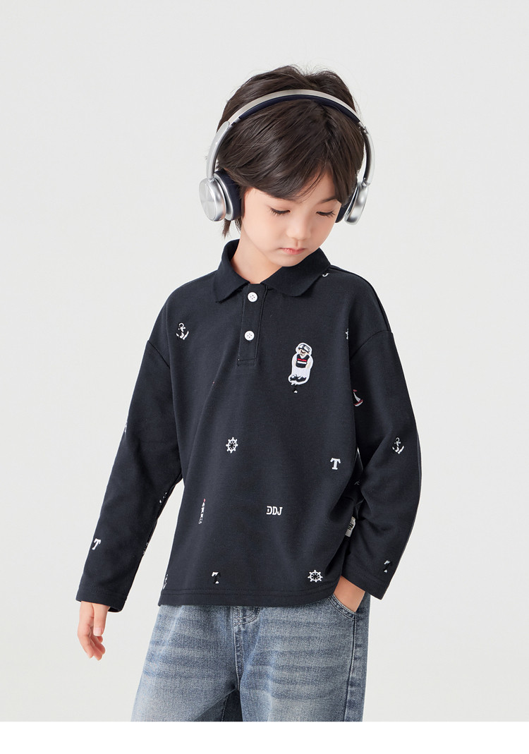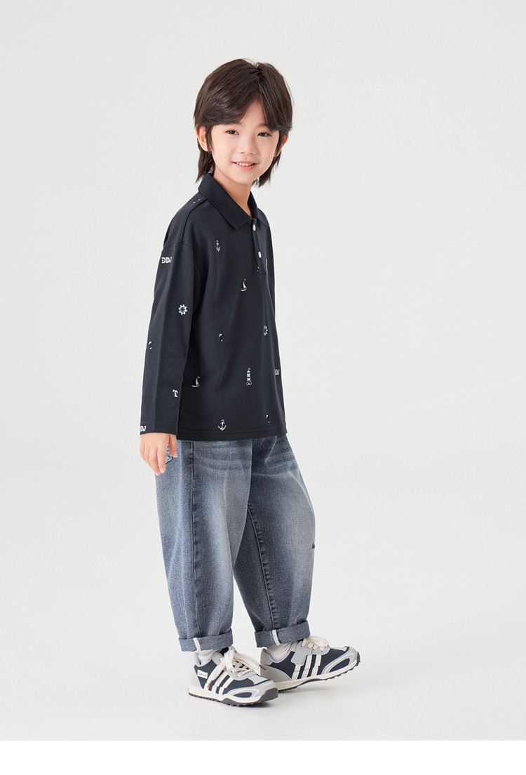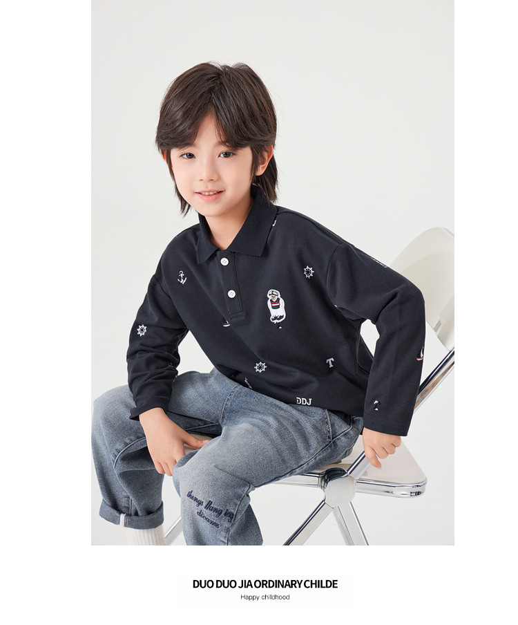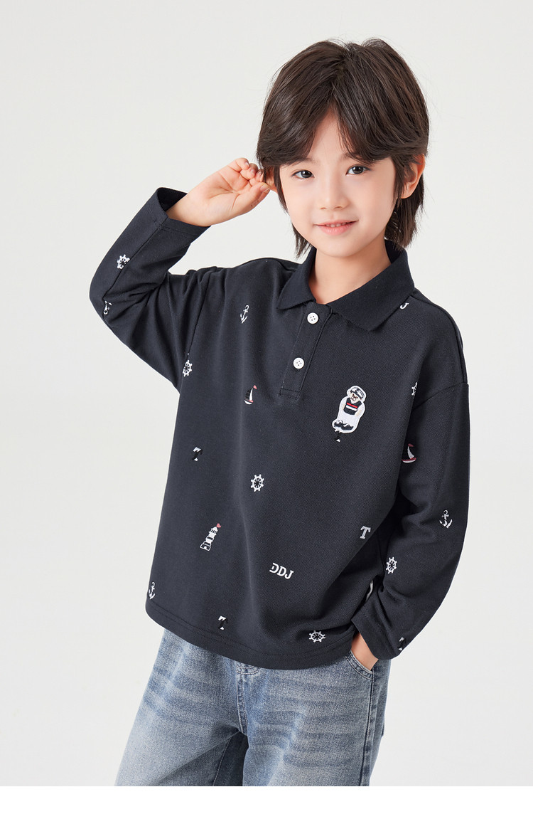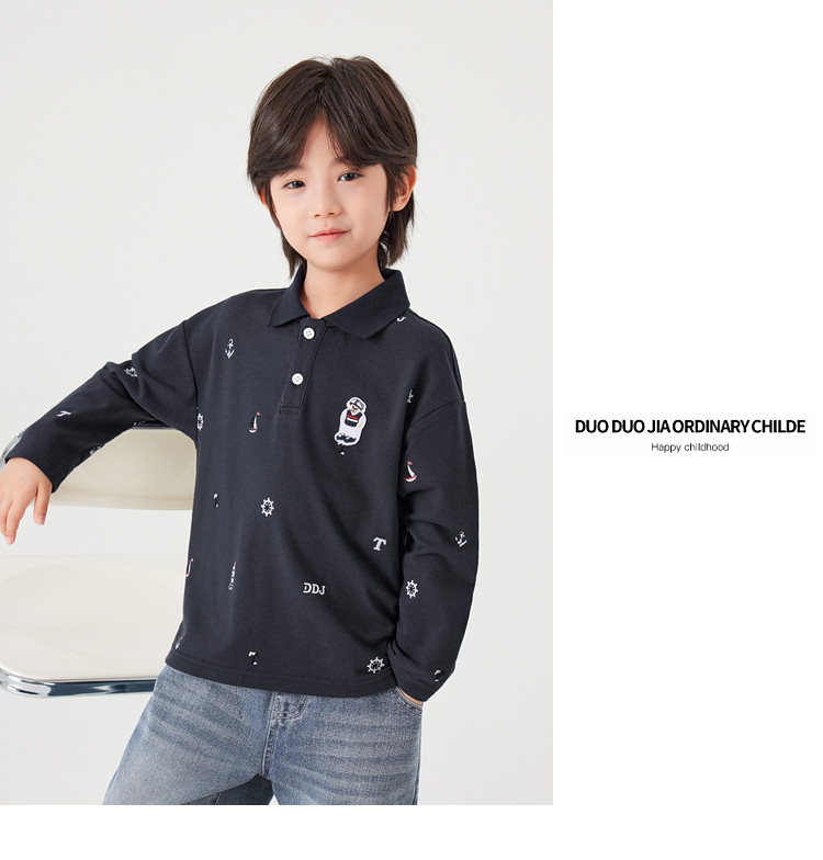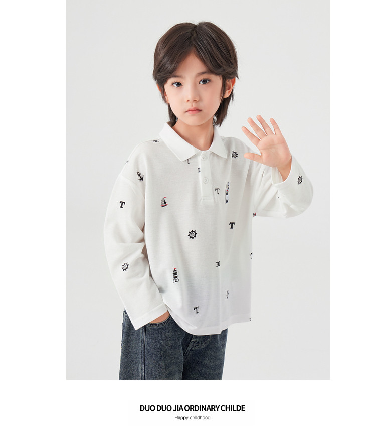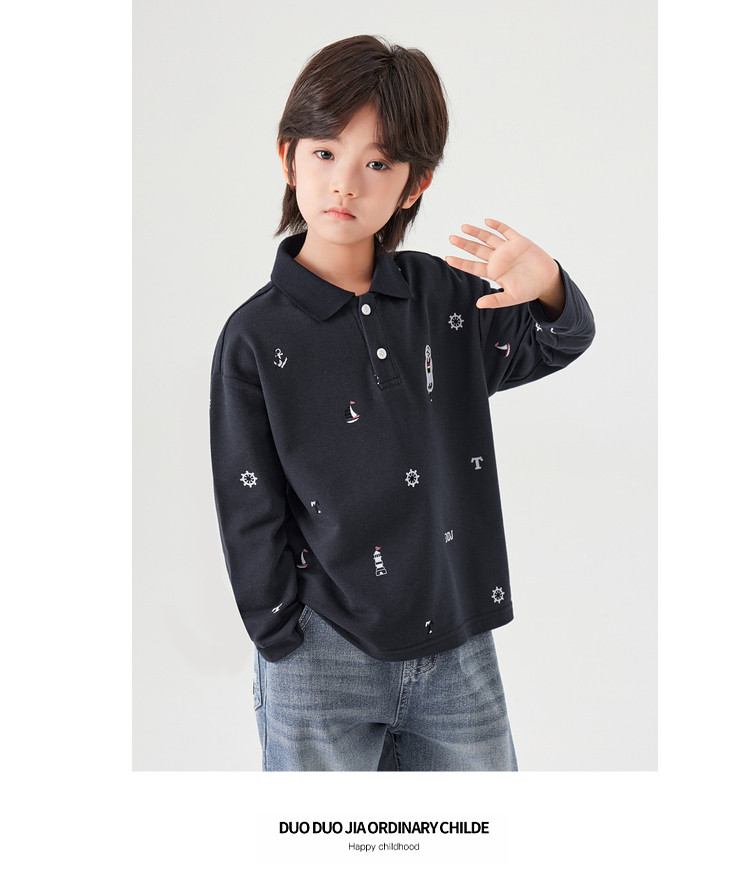 【件件底价,童装双倍积分】多多家男童满印polo衫儿童长袖T恤2026春装新款春秋男孩洋气上衣11495