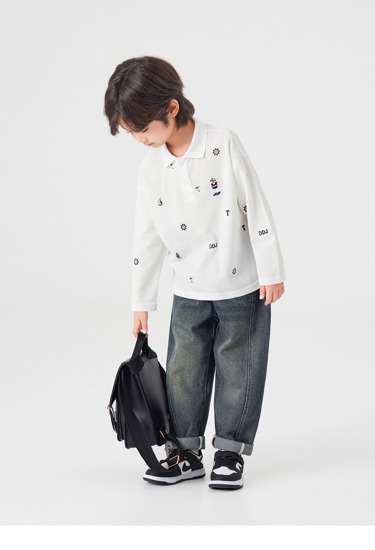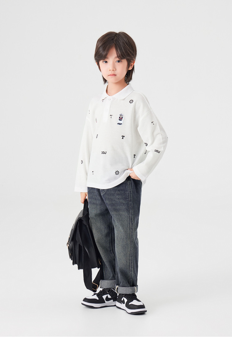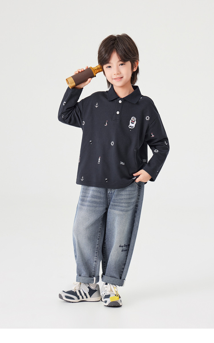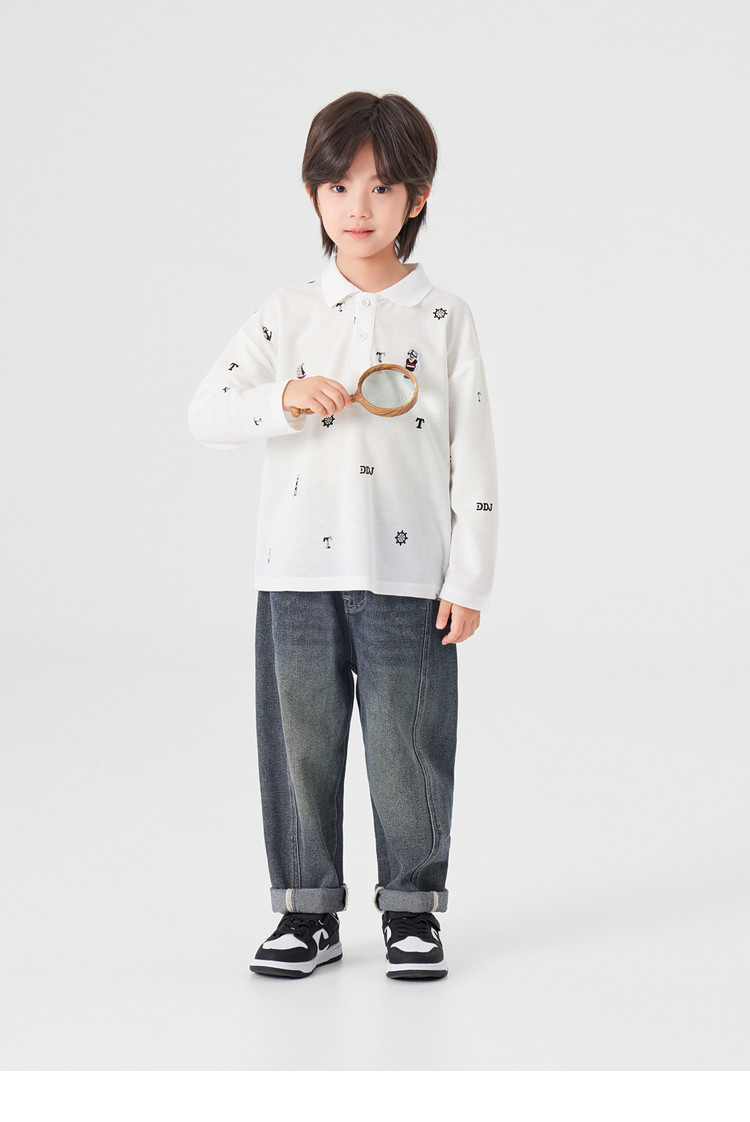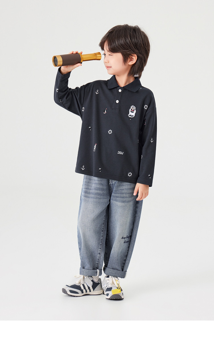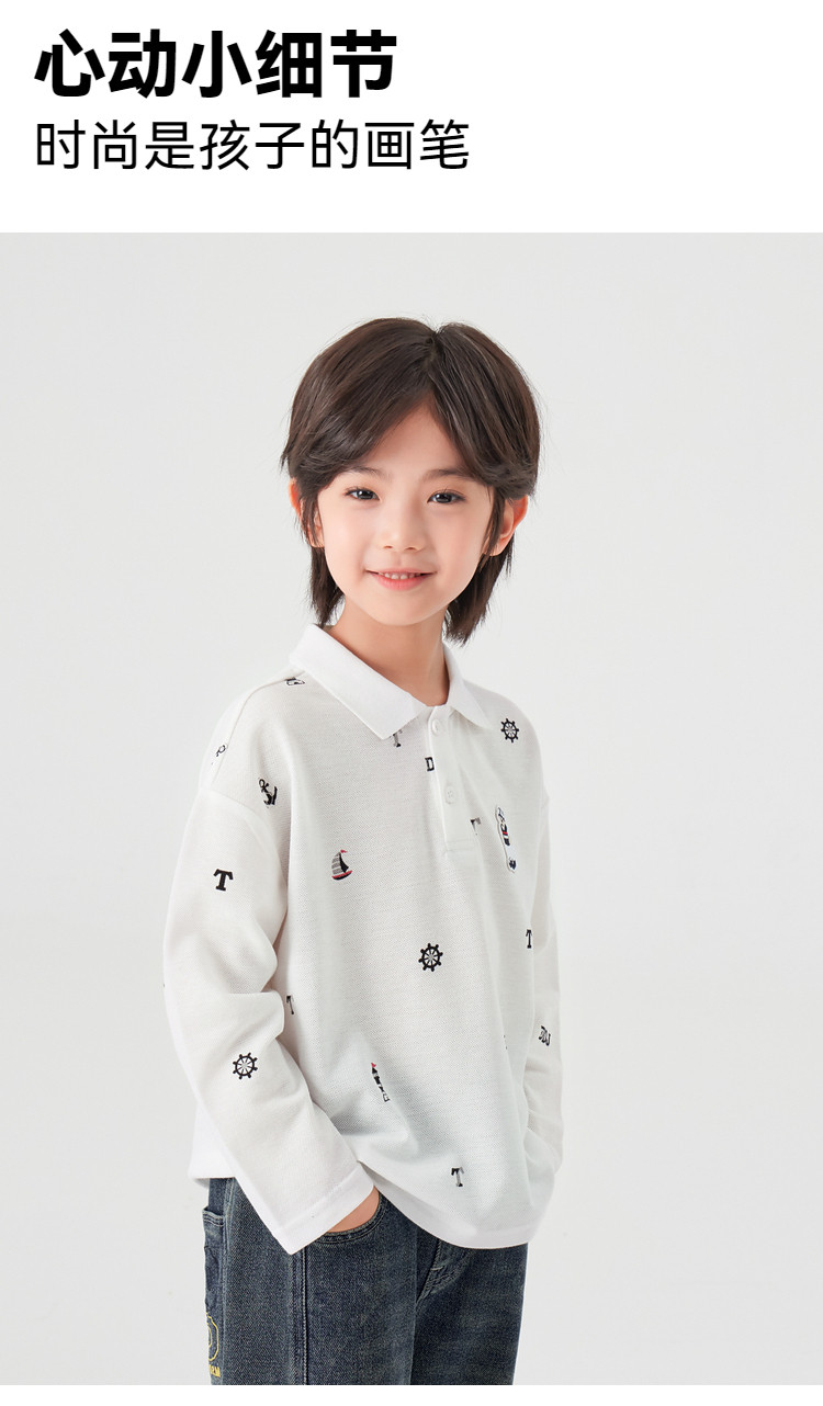 【件件底价,童装双倍积分】多多家男童满印polo衫儿童长袖T恤2026春装新款春秋男孩洋气上衣11495