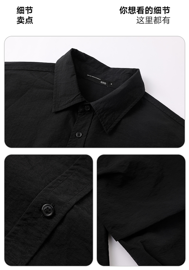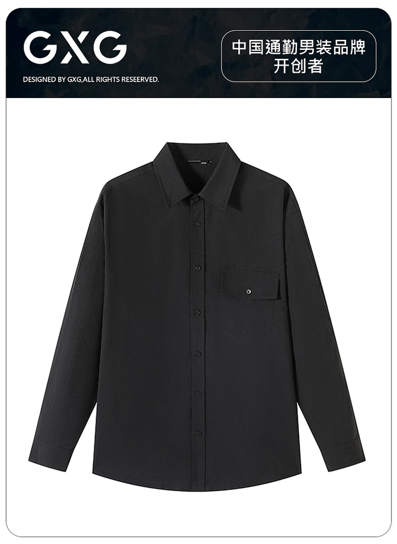 GXG男装25秋季日常通勤简约纯色翻领休闲男式长袖衬衫K&C