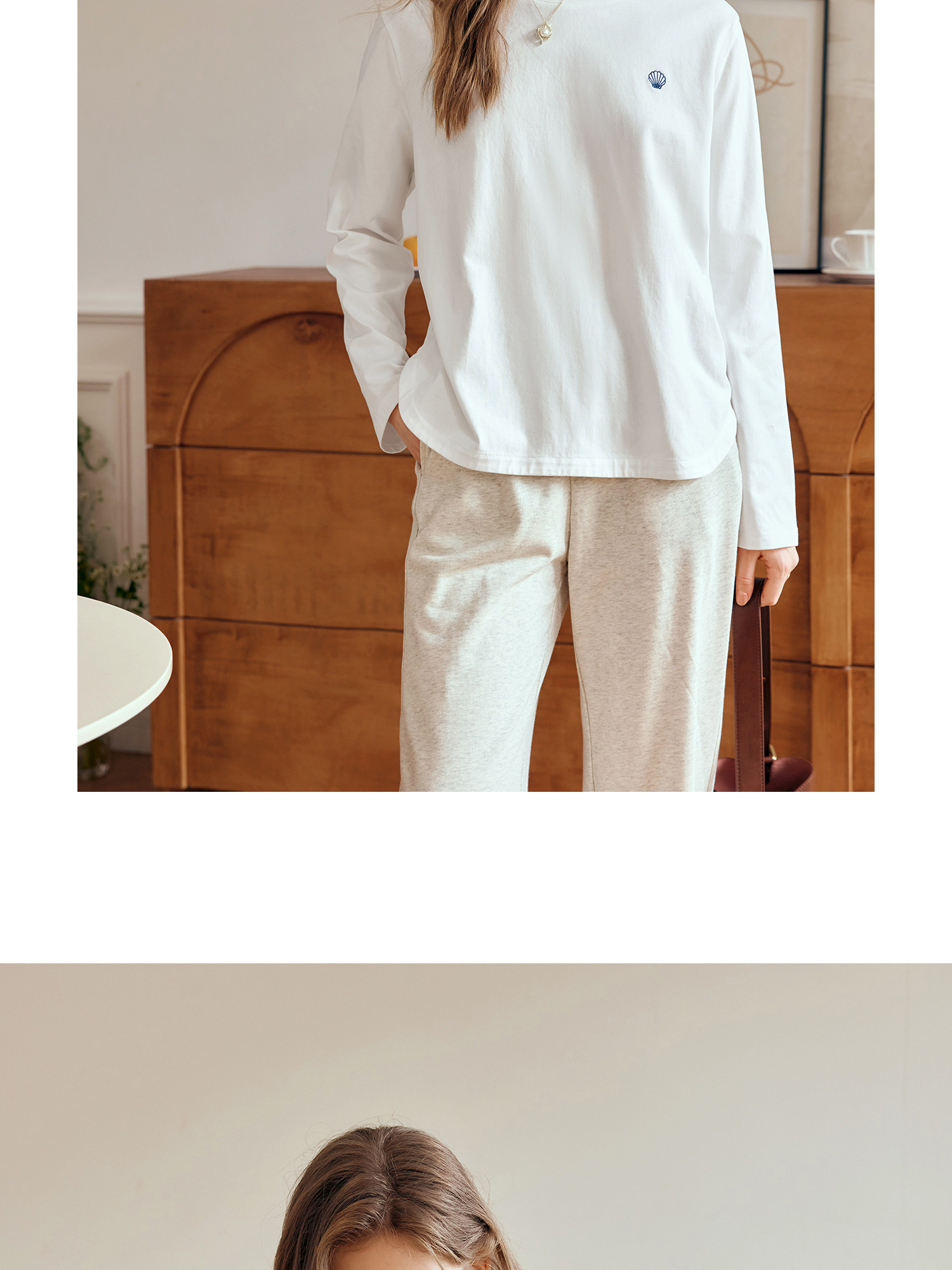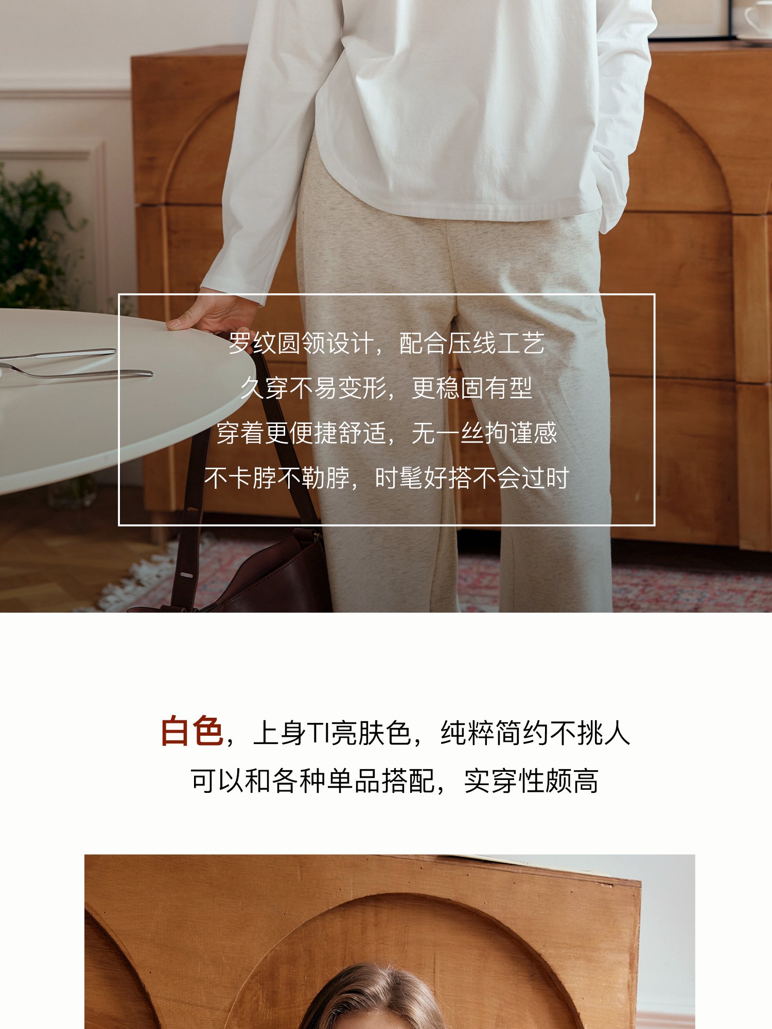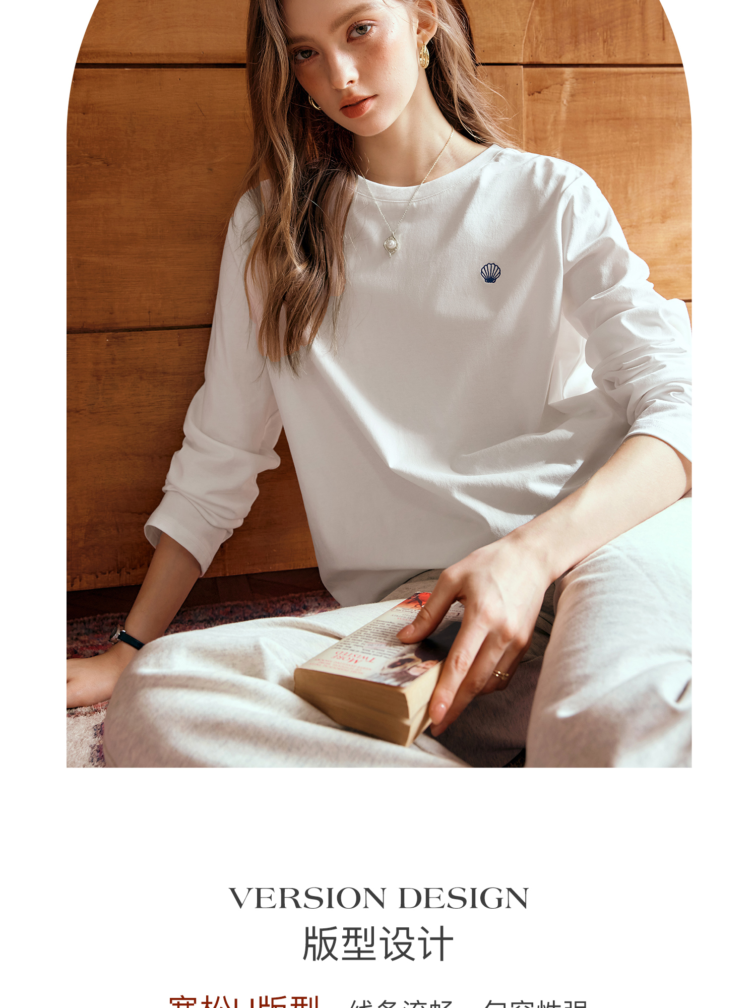 OLrain欧芮儿纯棉白色长袖T恤女秋季2024年新款圆领刺绣休闲上衣
