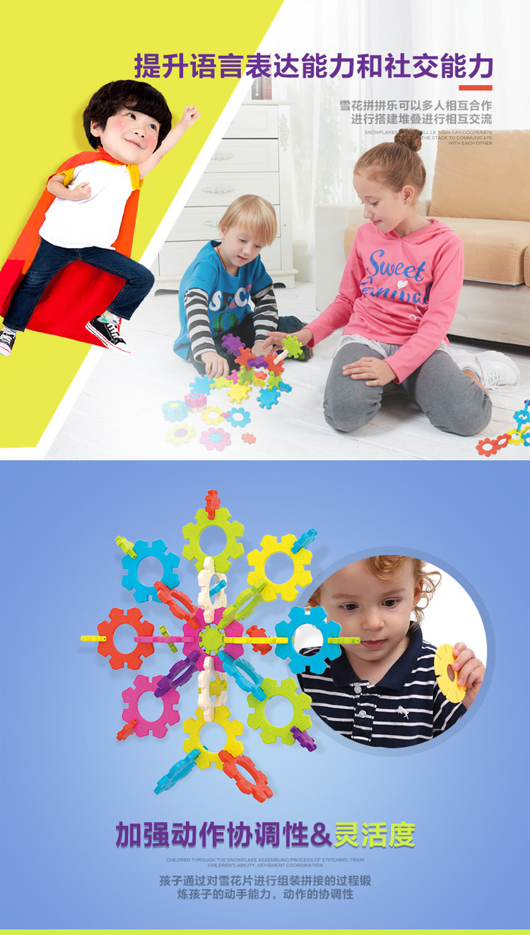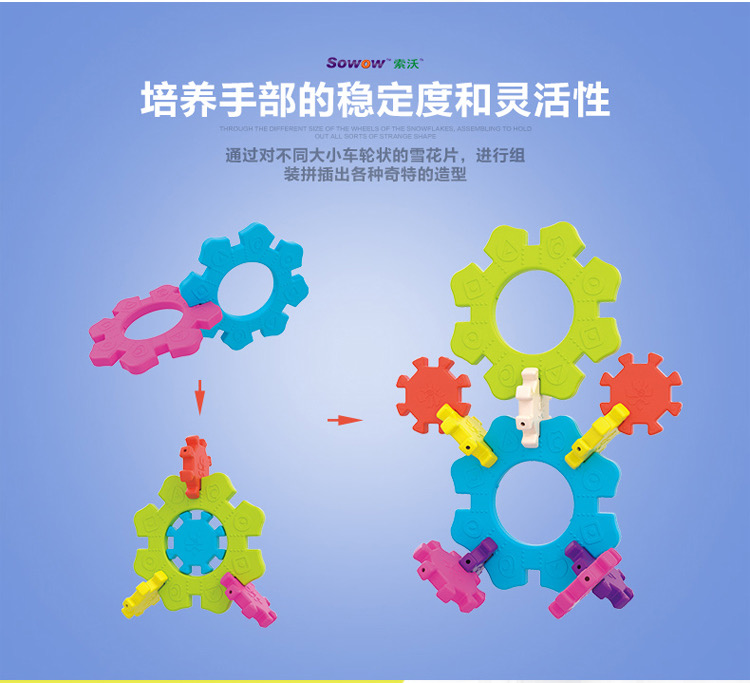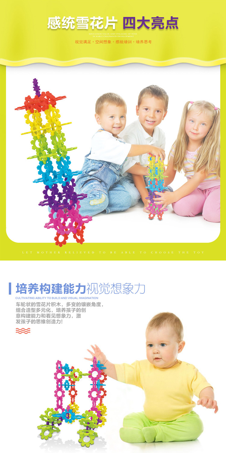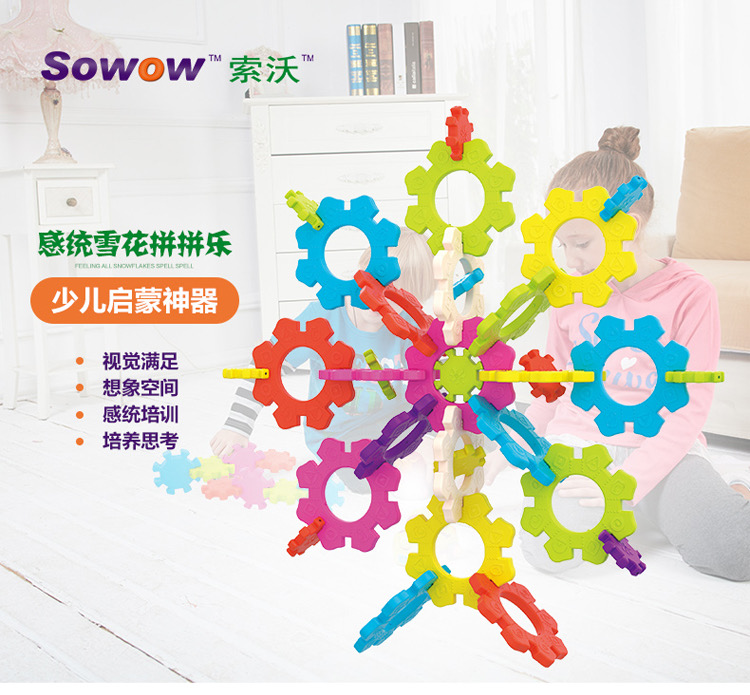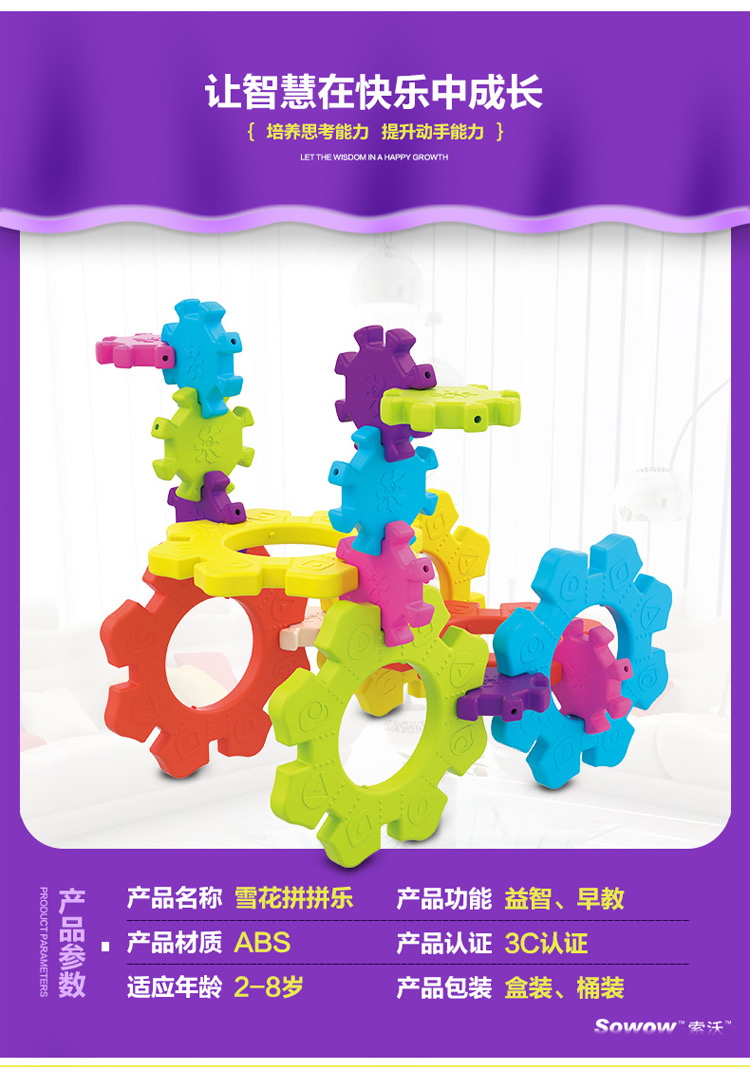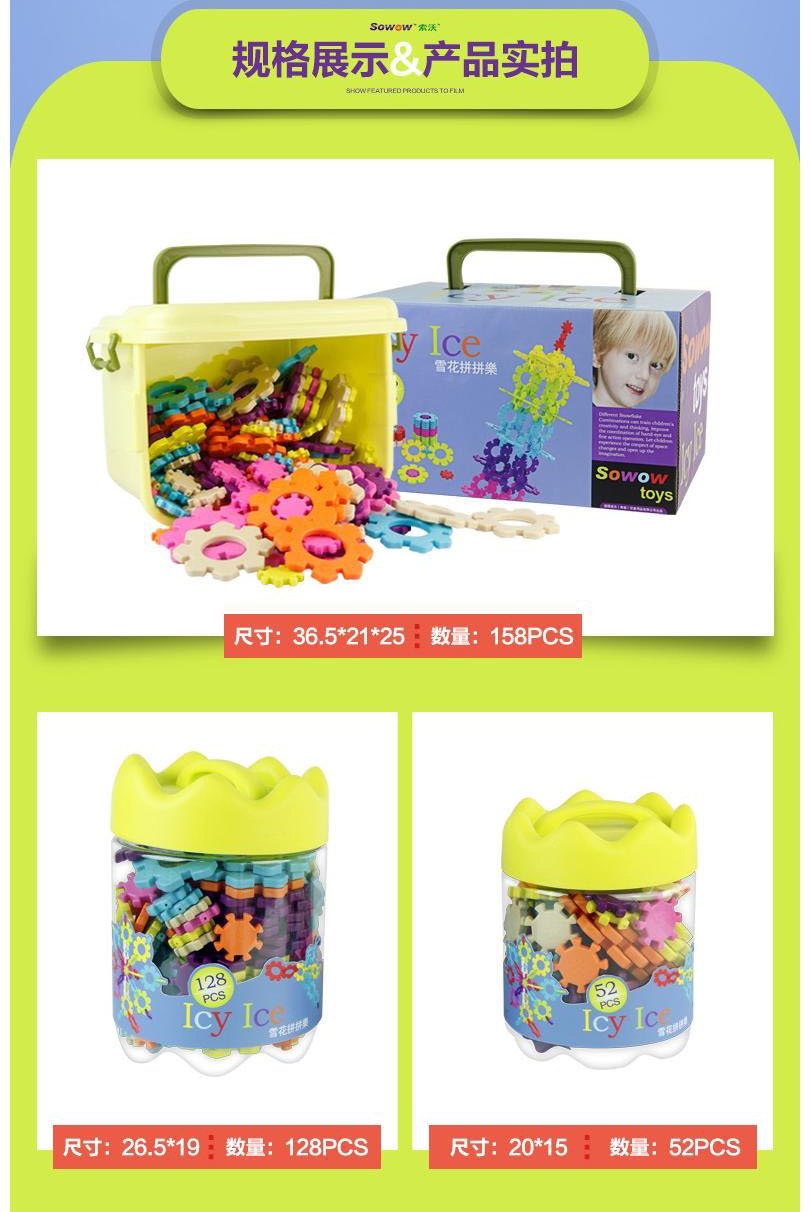 Sowow索沃水晶雪花片拼拼乐儿童拼插多种形状积木大颗粒桶装玩具