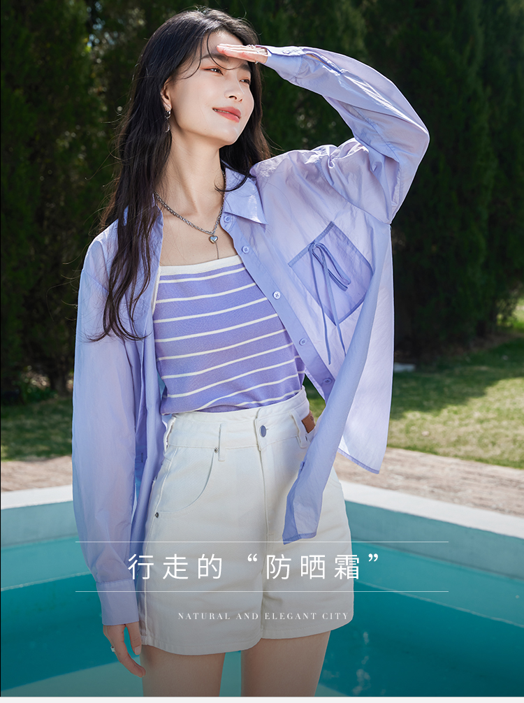 【专属特价】熙世界防晒衬衫女长袖夏季薄款设计感户外遮阳开衫上衣2025年新款