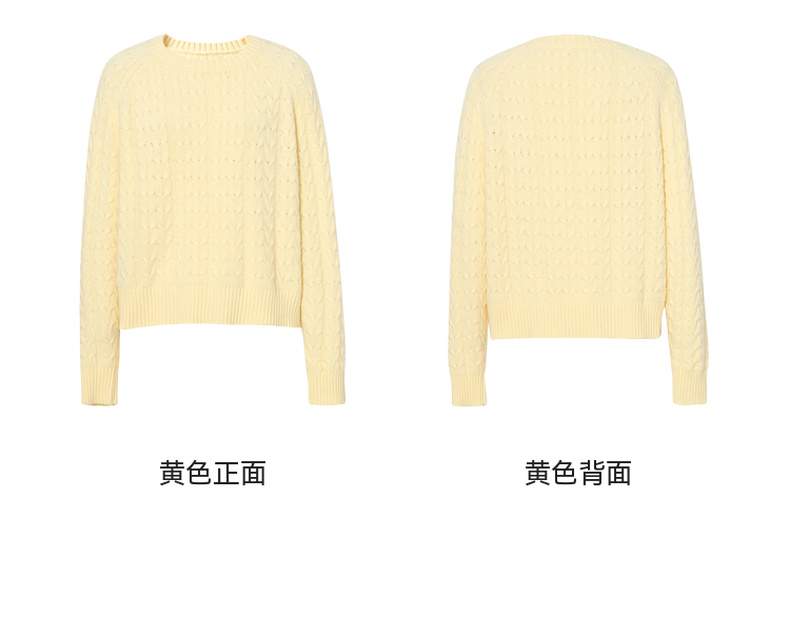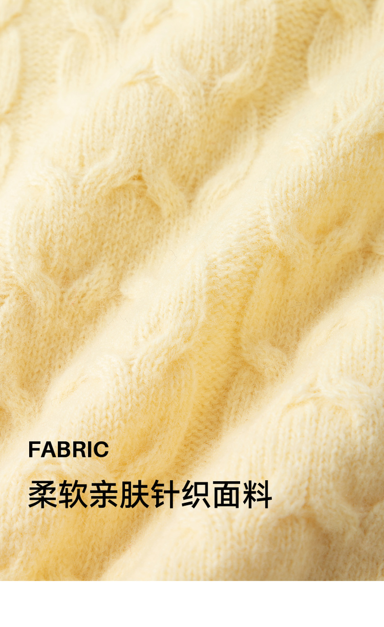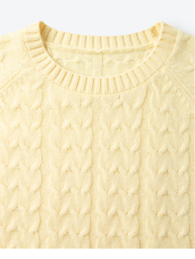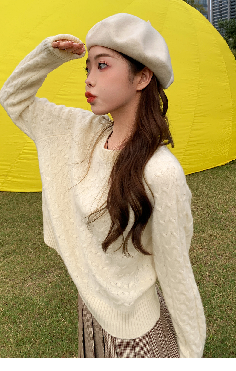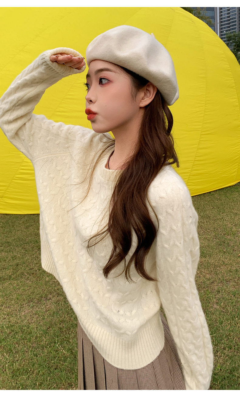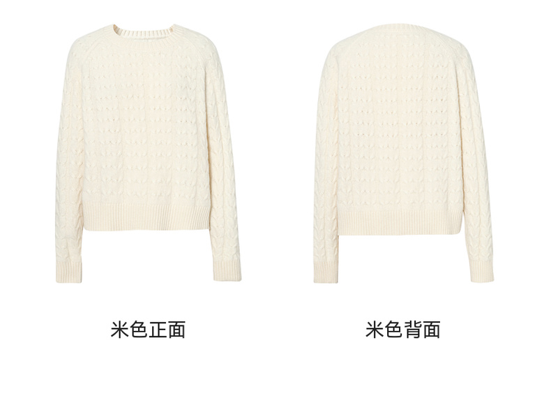 【严选】诗凡黎米色圆领绞花针织衫2024冬新款气质百搭宽松外搭毛衣女7FB131341