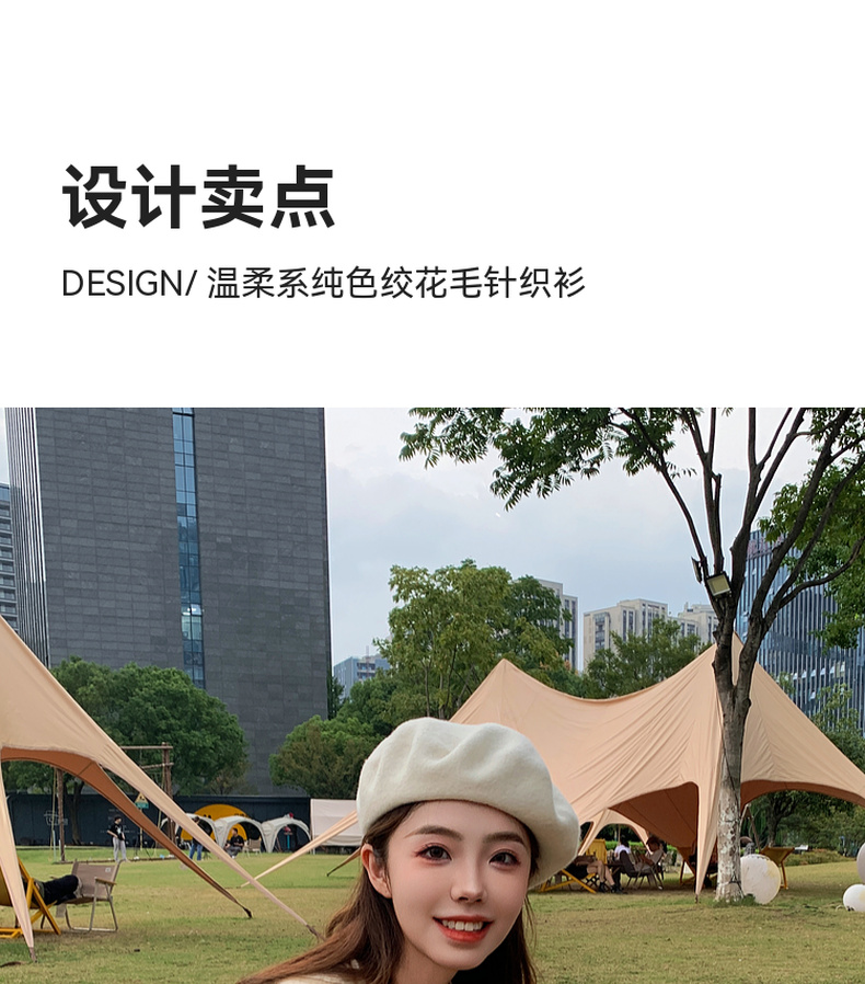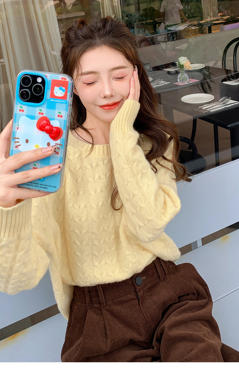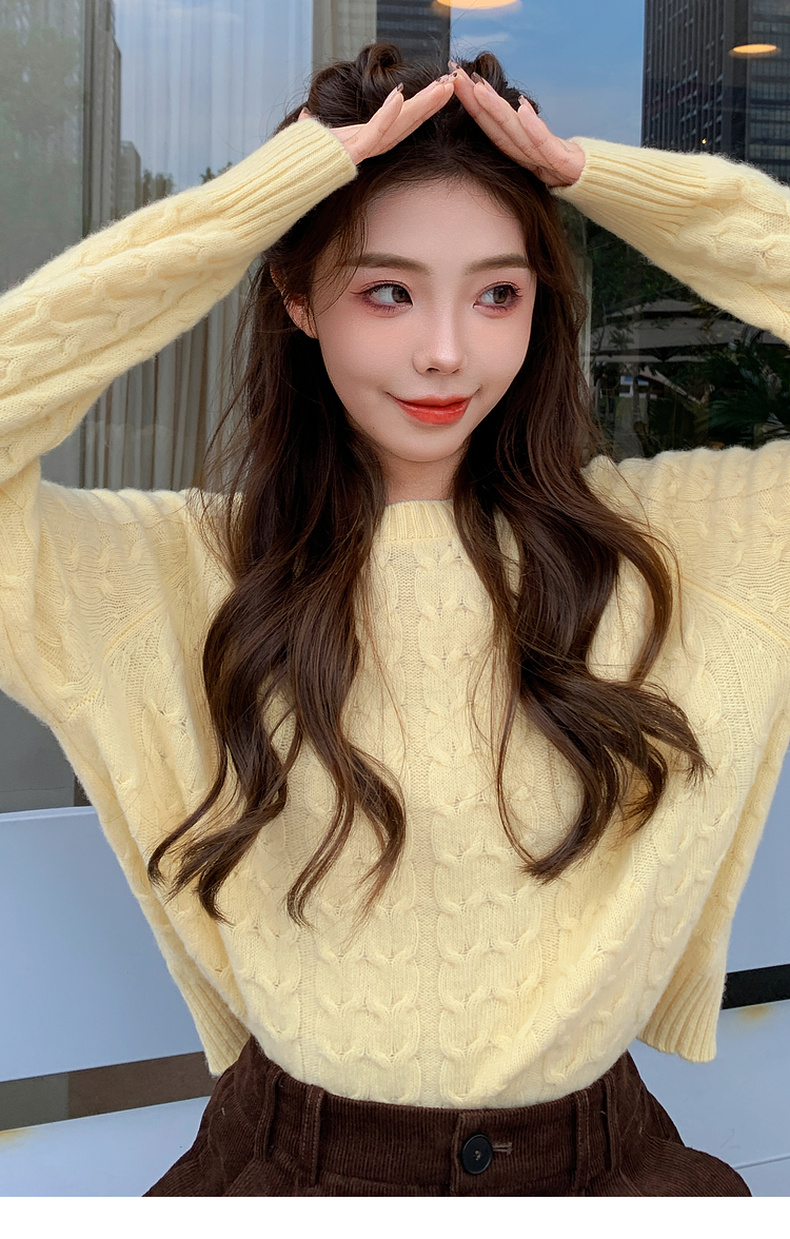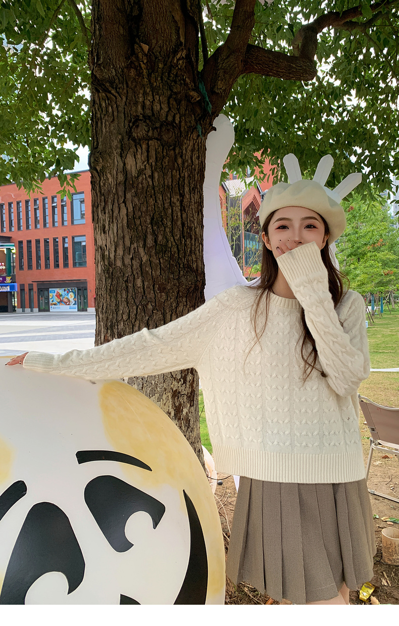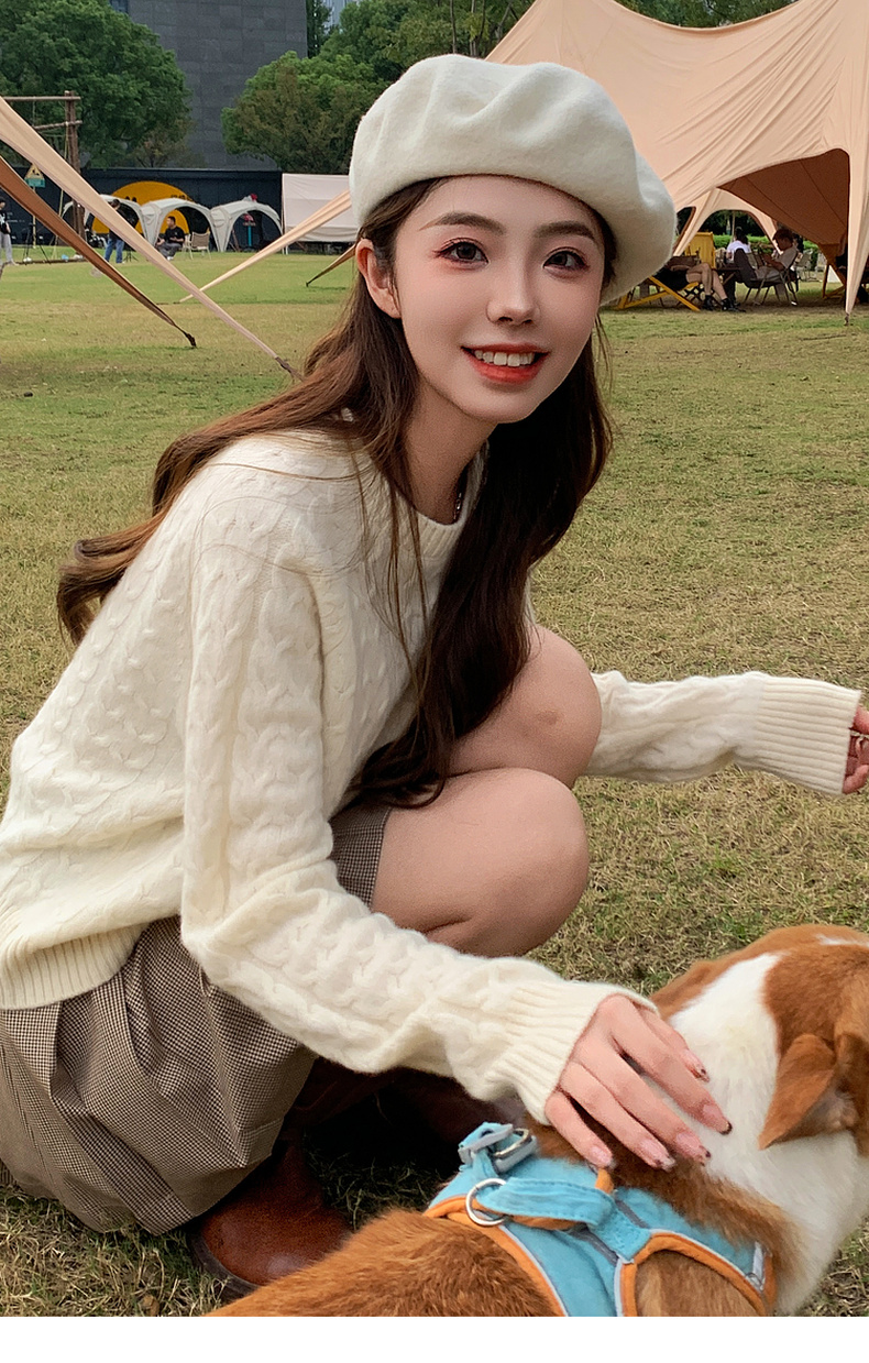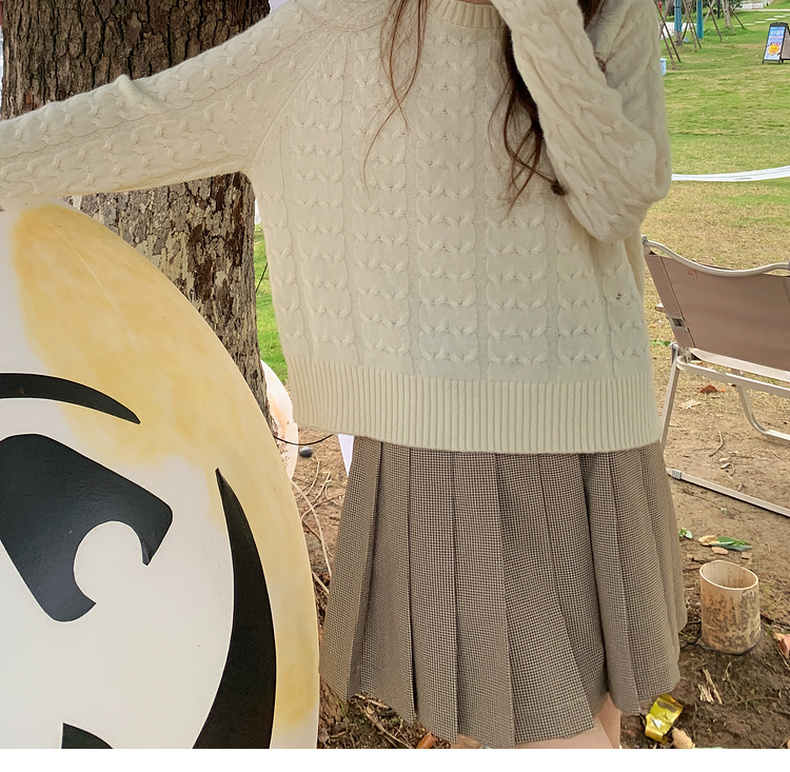 【严选】诗凡黎米色圆领绞花针织衫2024冬新款气质百搭宽松外搭毛衣女7FB131341