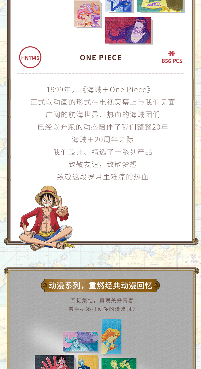 【折扣商品 不退不换】856片 无框套装组 平面拼图 HN1146 航海王 ONE PIECE