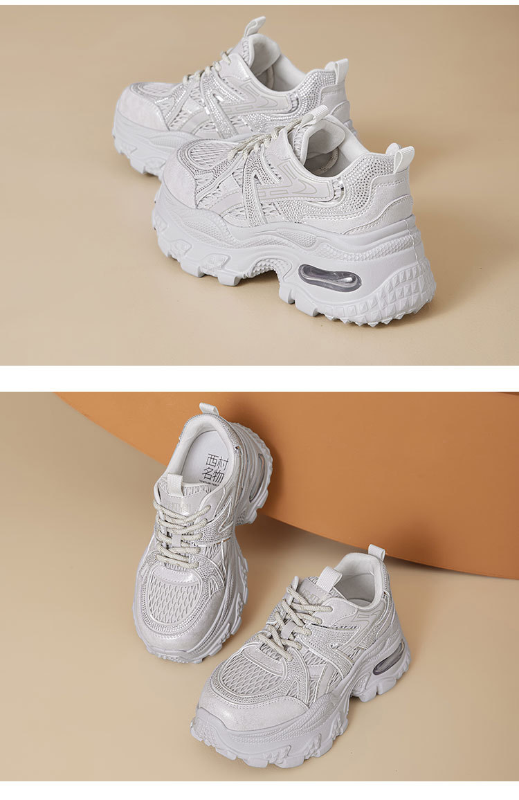 西村名物2025新款百搭休闲老爹鞋女厚底轻便舒适运动鞋网面运动风女鞋 X85YCM2761