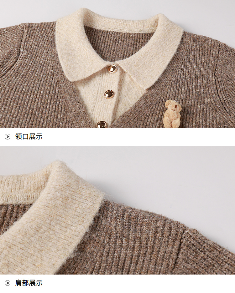 奢姿大码女装2025冬季时尚小熊装饰针织开衫胖妹妹气质甜美上衣9654691138