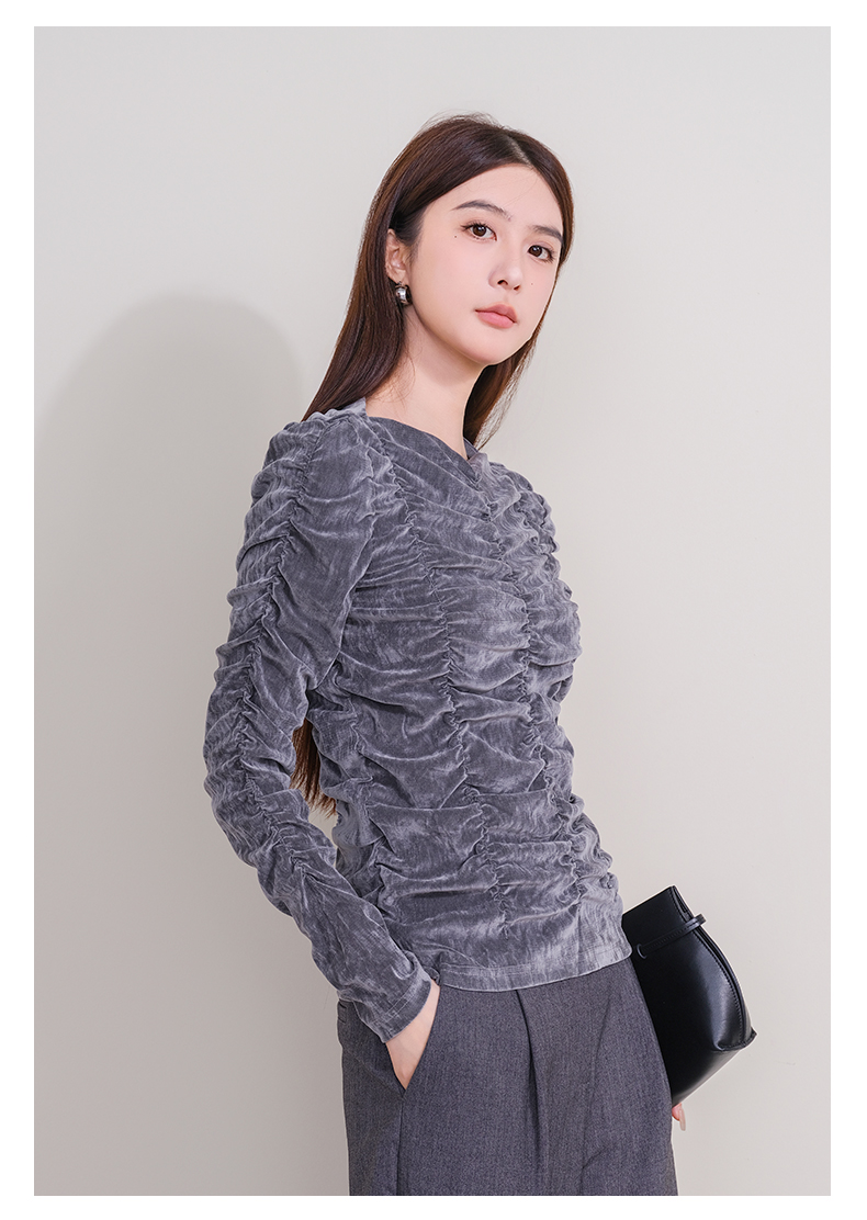 oldcolour欧珂冬季新品休闲时尚绒面长袖T恤女P430201A1