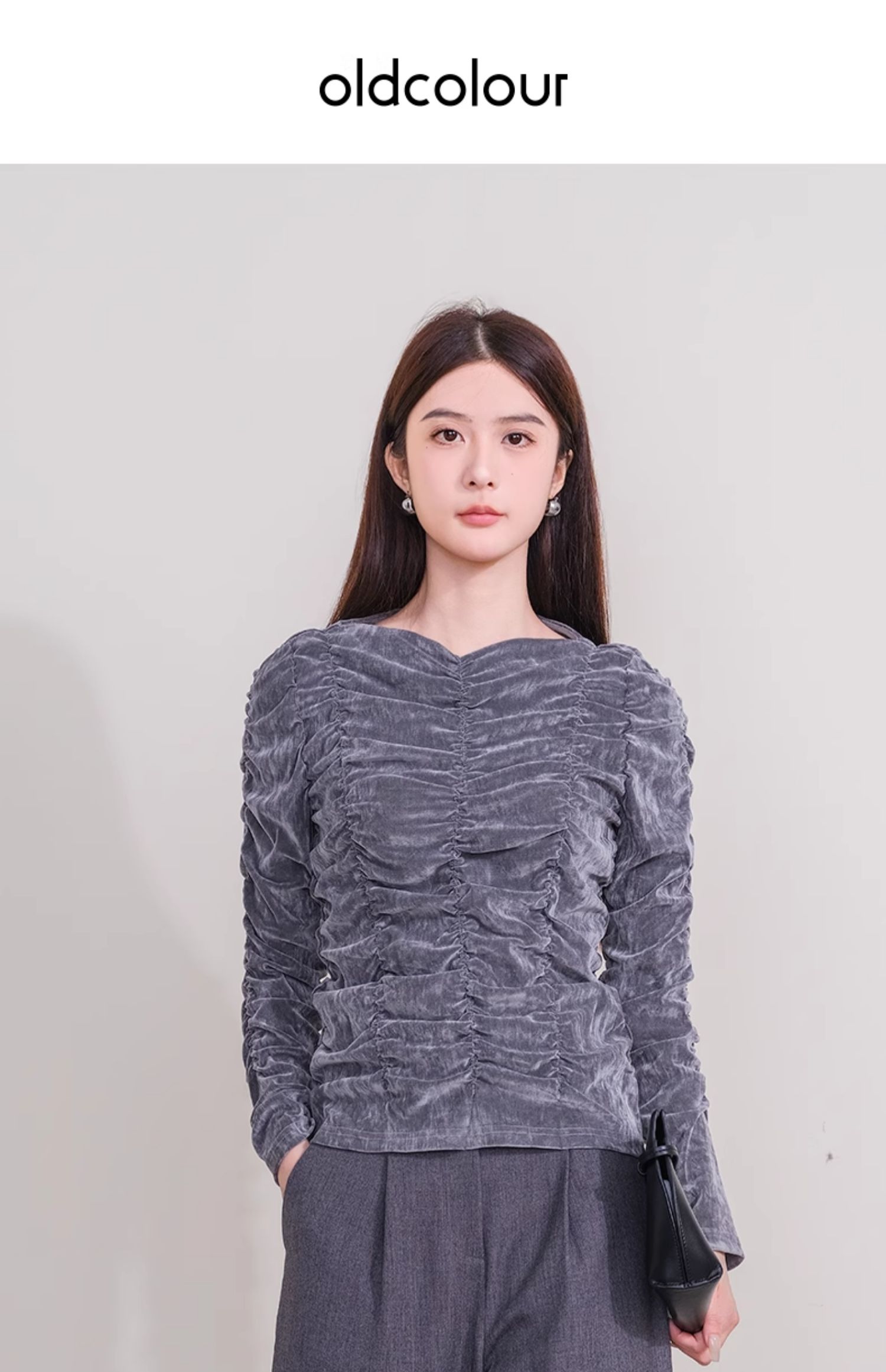 oldcolour秋季新款高腰休闲裤垂感设计感气质阔腿裤女P330703A1