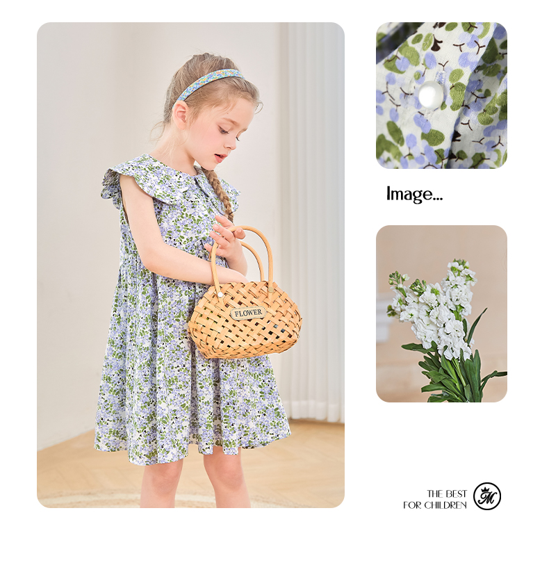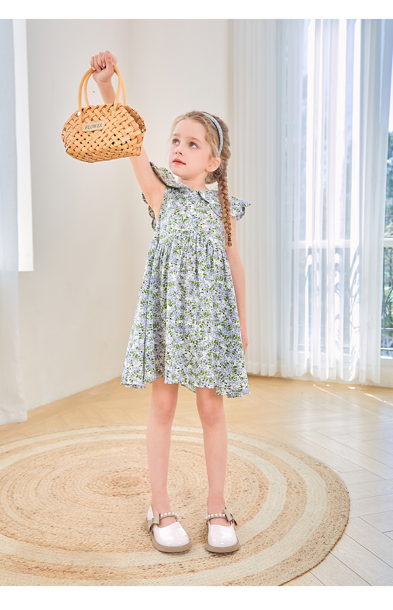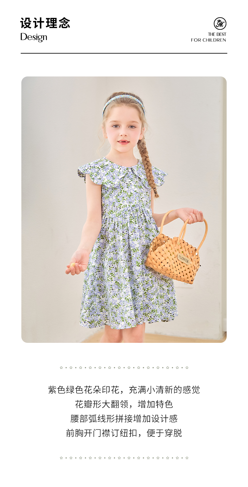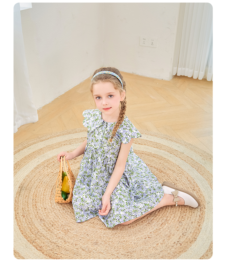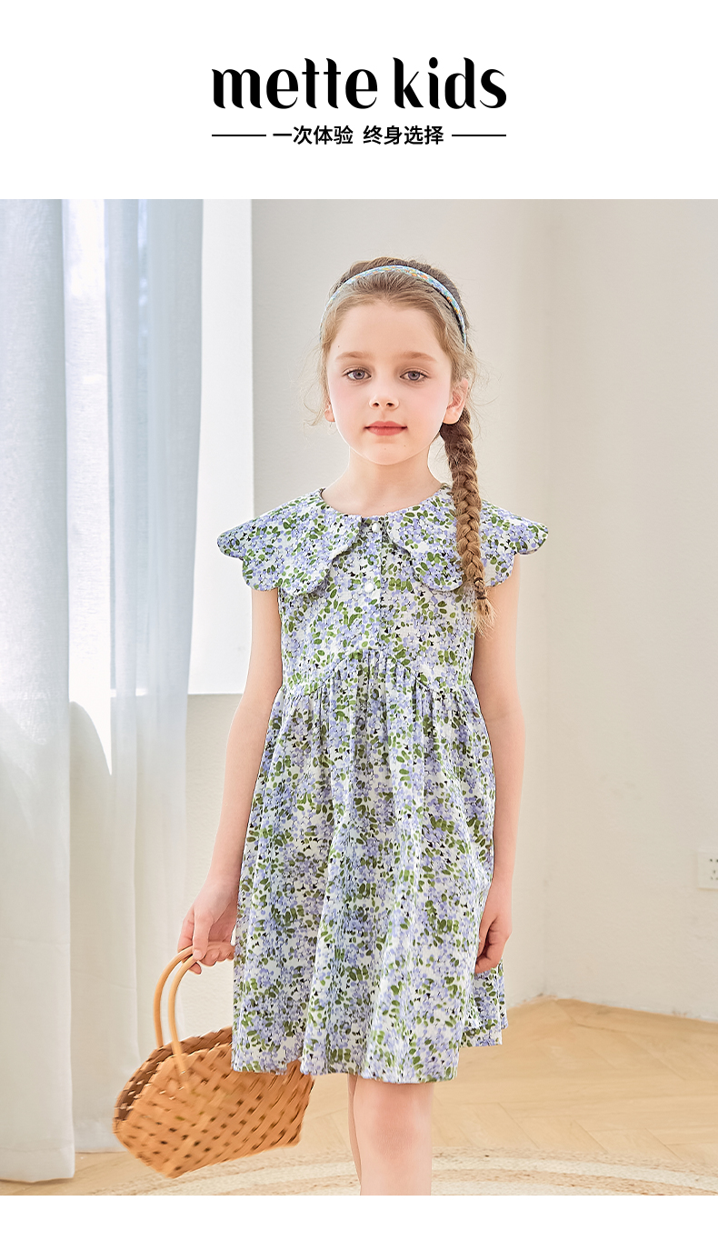 mettekids女童连衣裙2024夏季新款儿童花瓣领公主裙纯棉碎花裙子