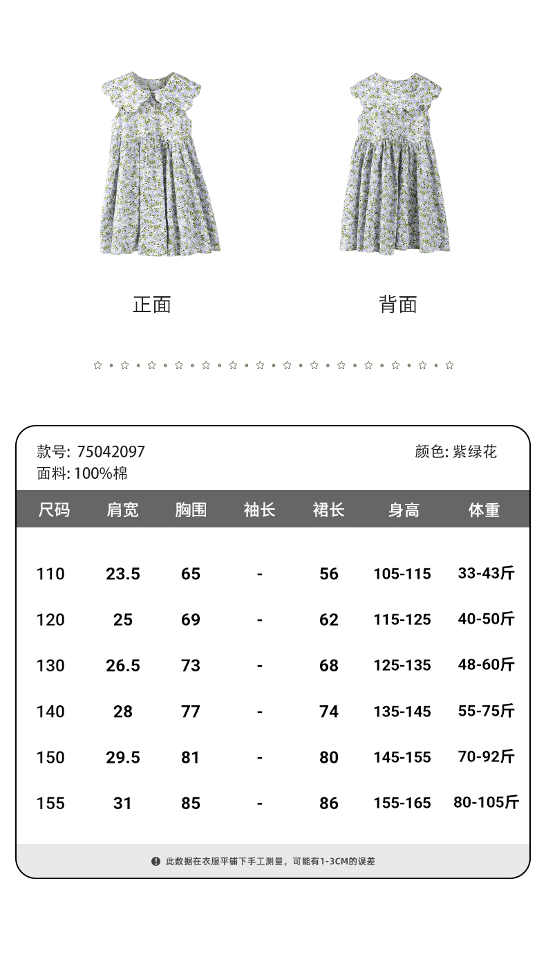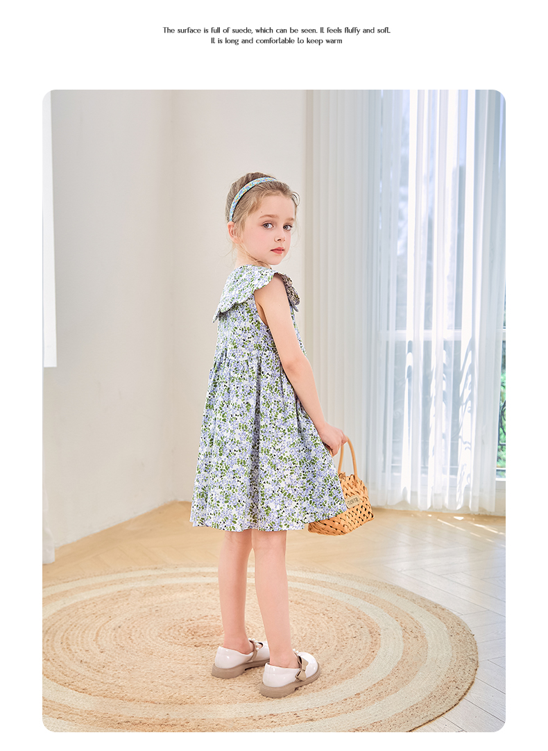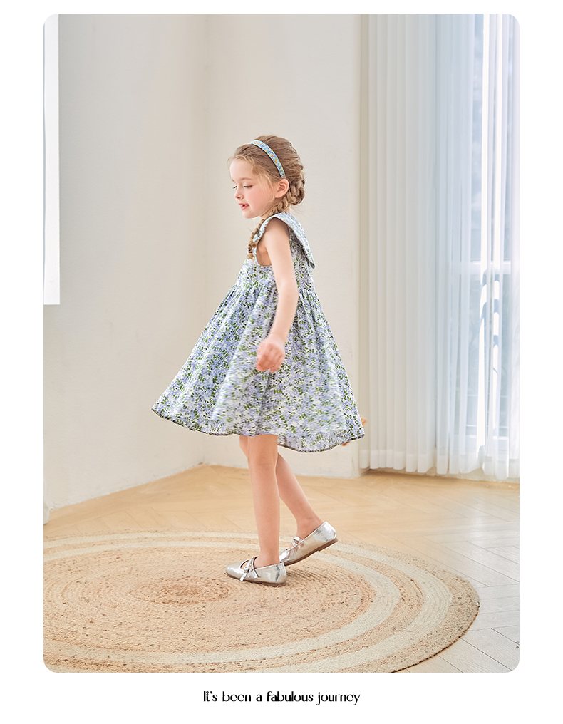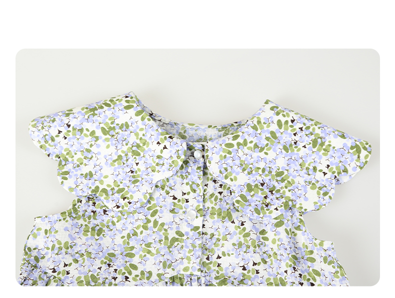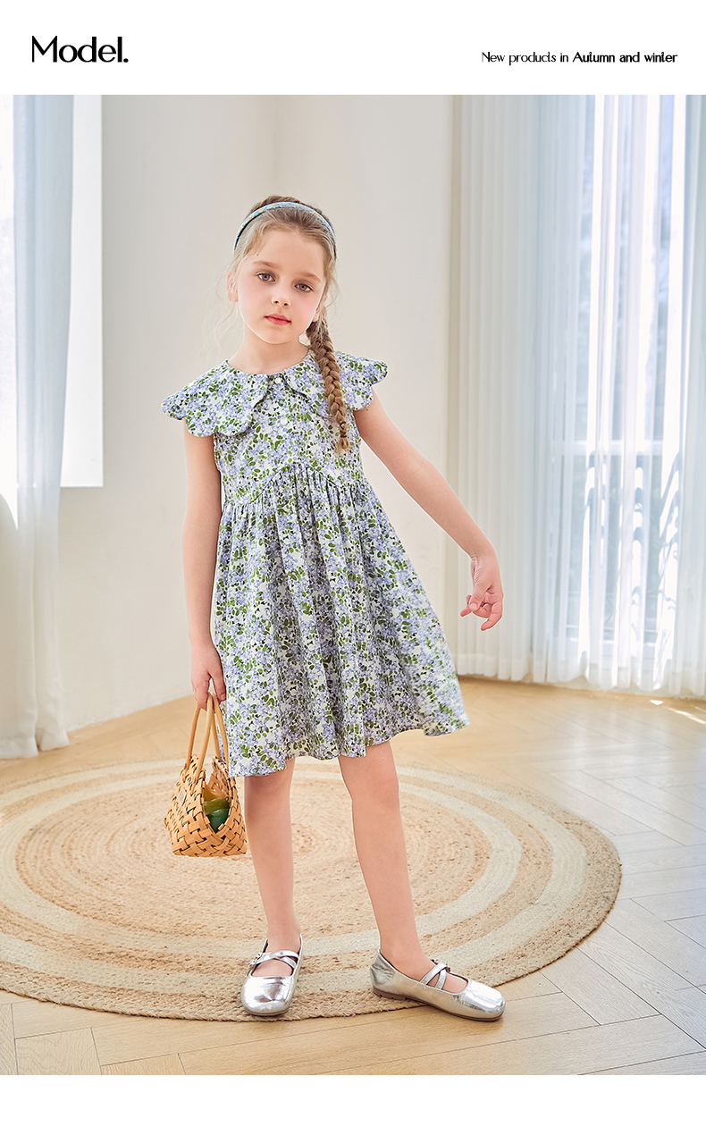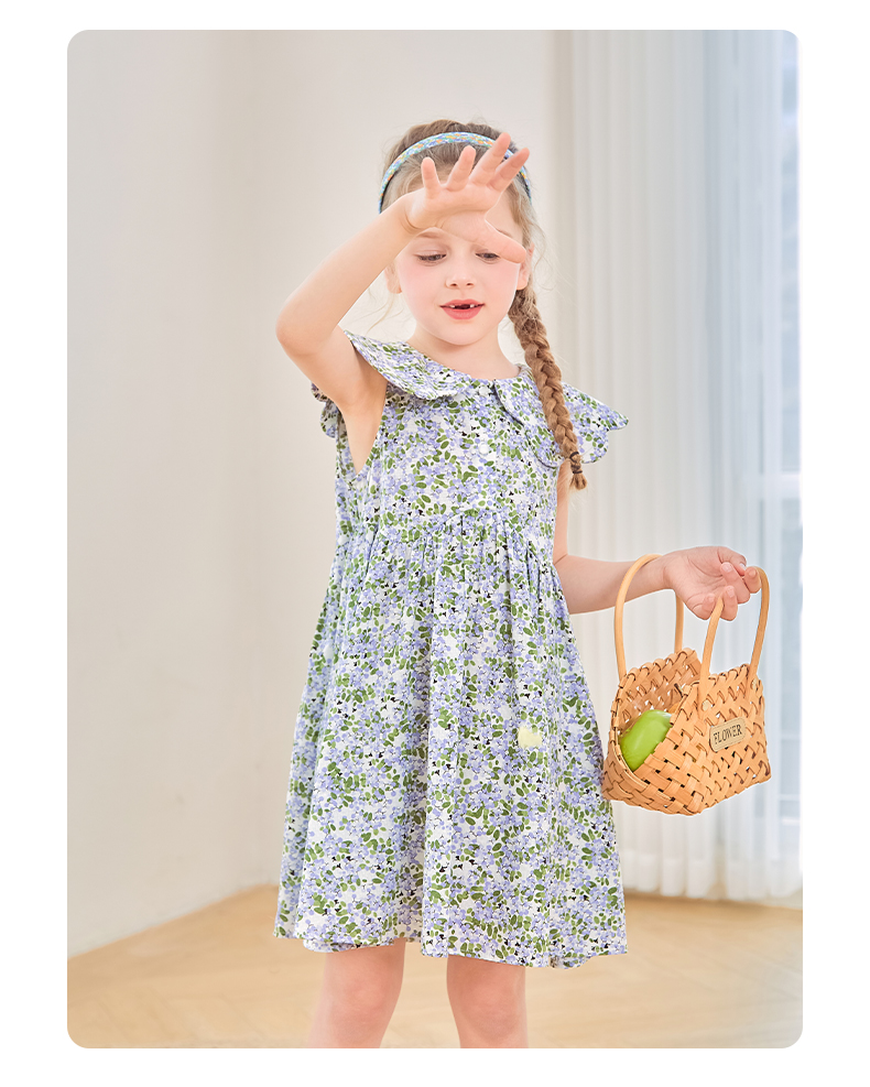 mettekids女童连衣裙2024夏季新款儿童花瓣领公主裙纯棉碎花裙子
