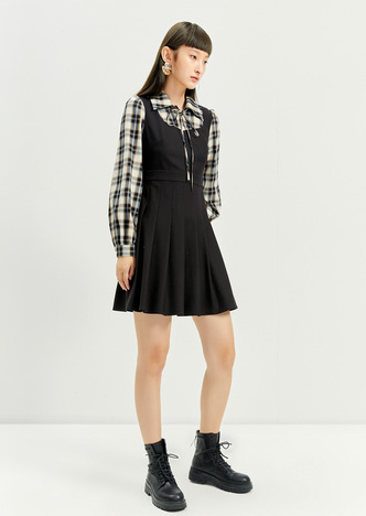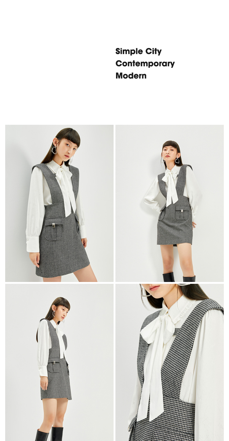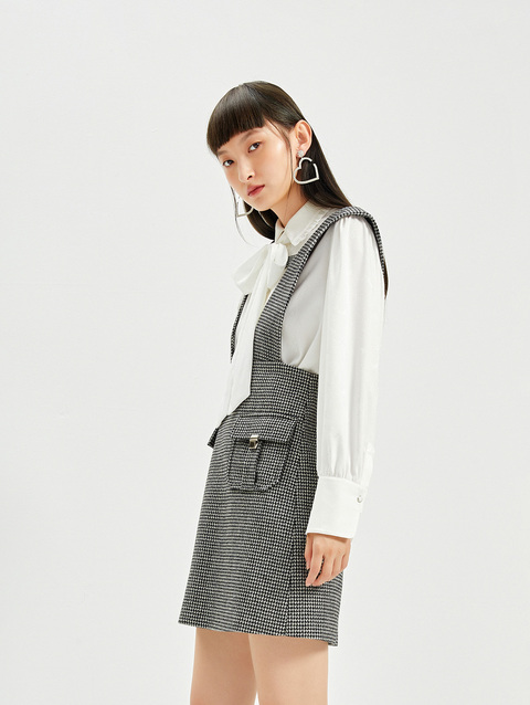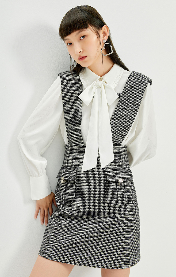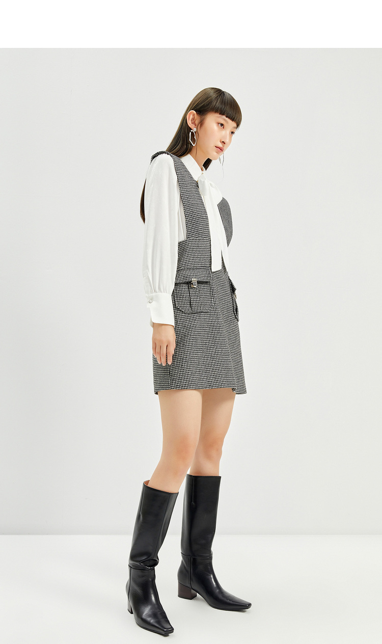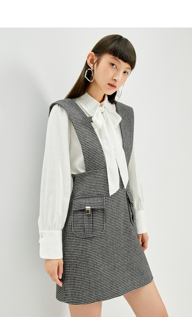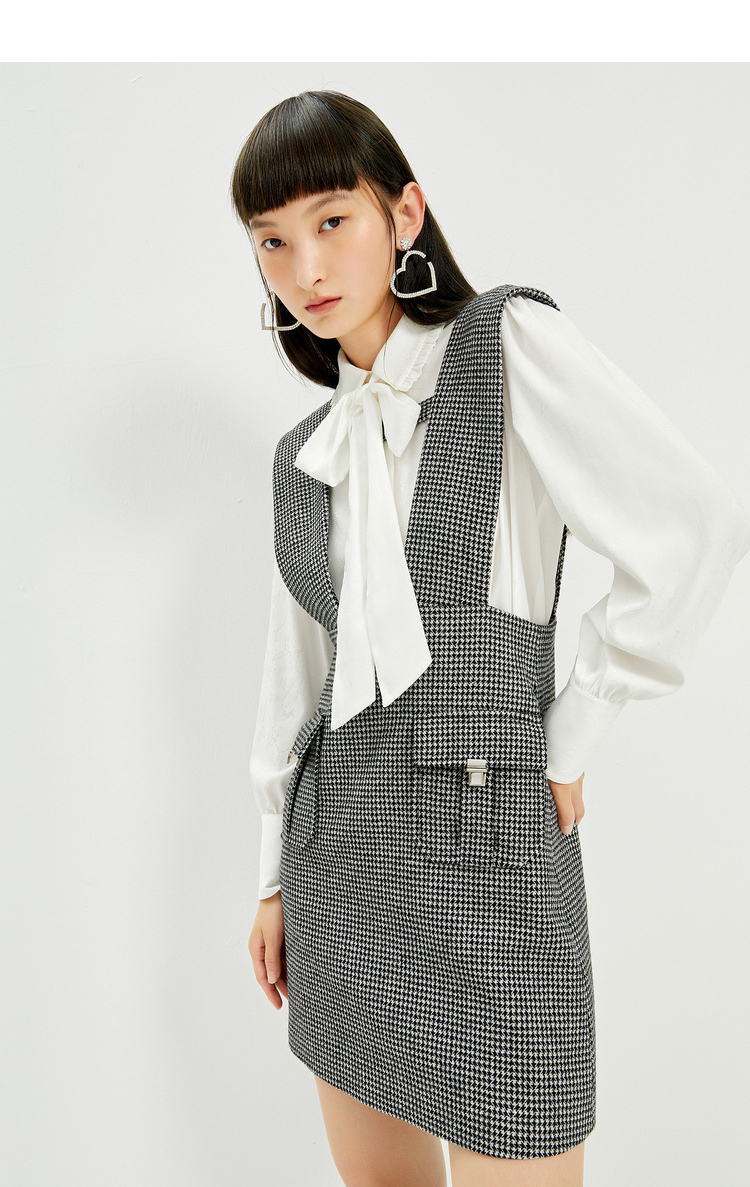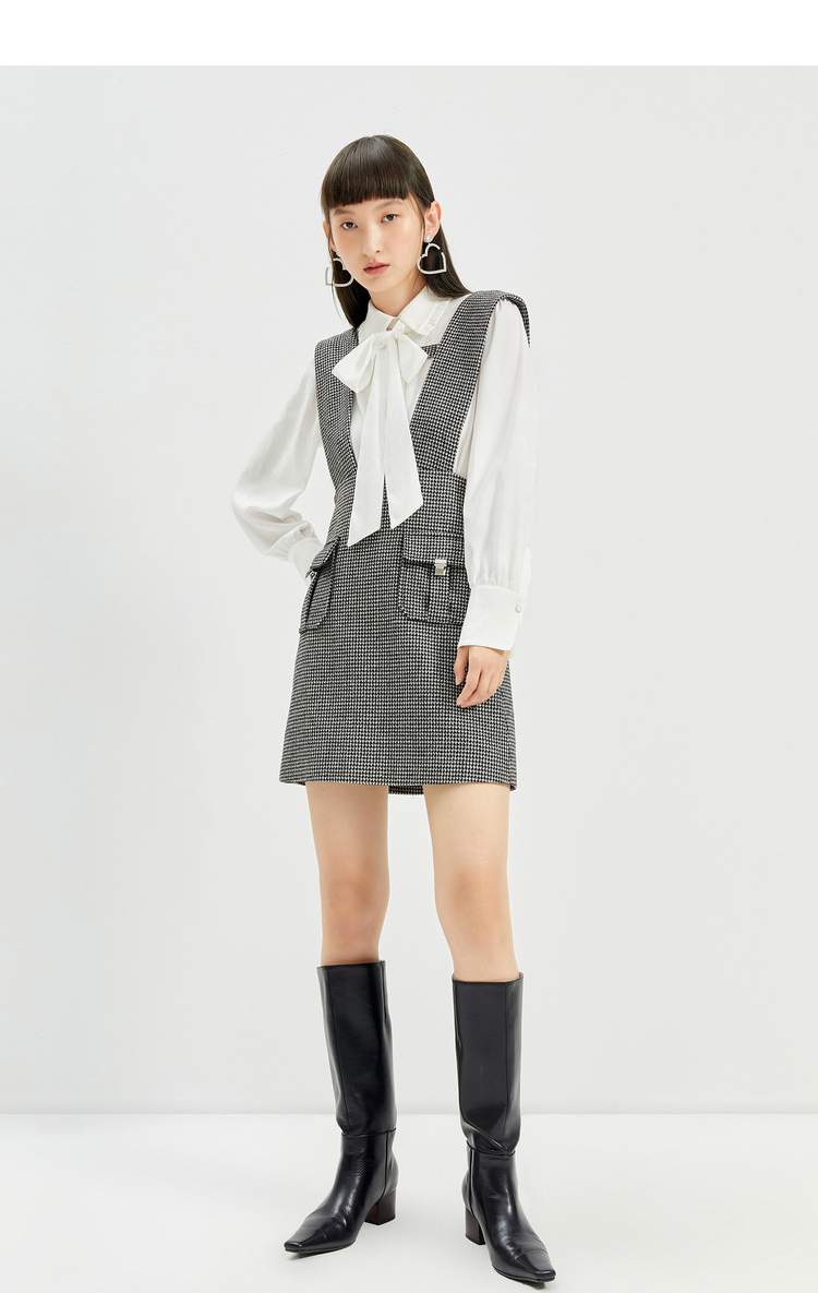 NEELLY纳俪千鸟格背带裙女羊毛A字裙秋冬内搭减龄小个子百搭显高N21101Y01027
