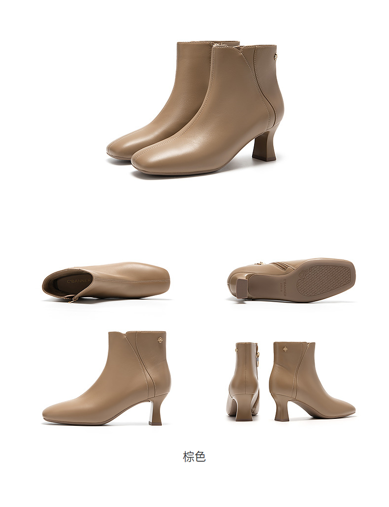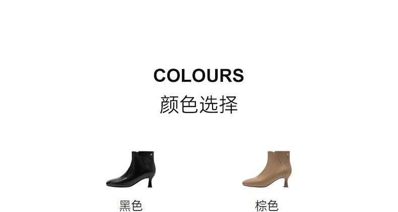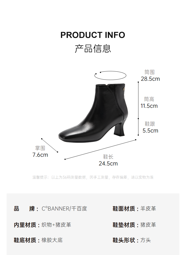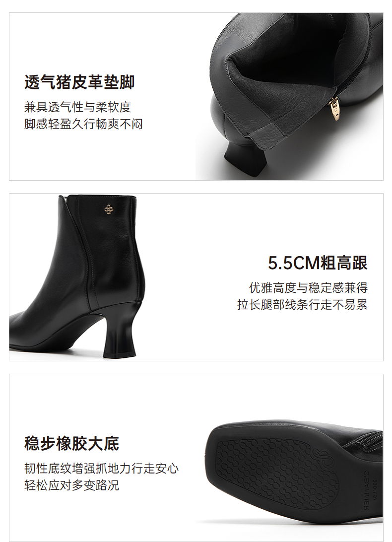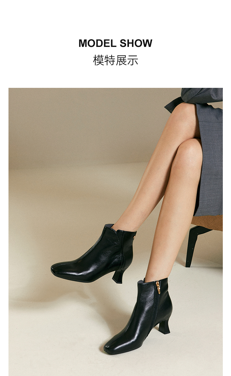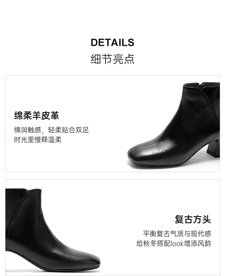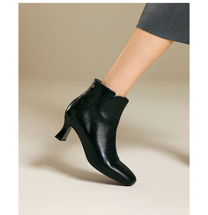 【静音系列】千百度粗高跟羊皮靴时装靴女通勤短靴子A25587070