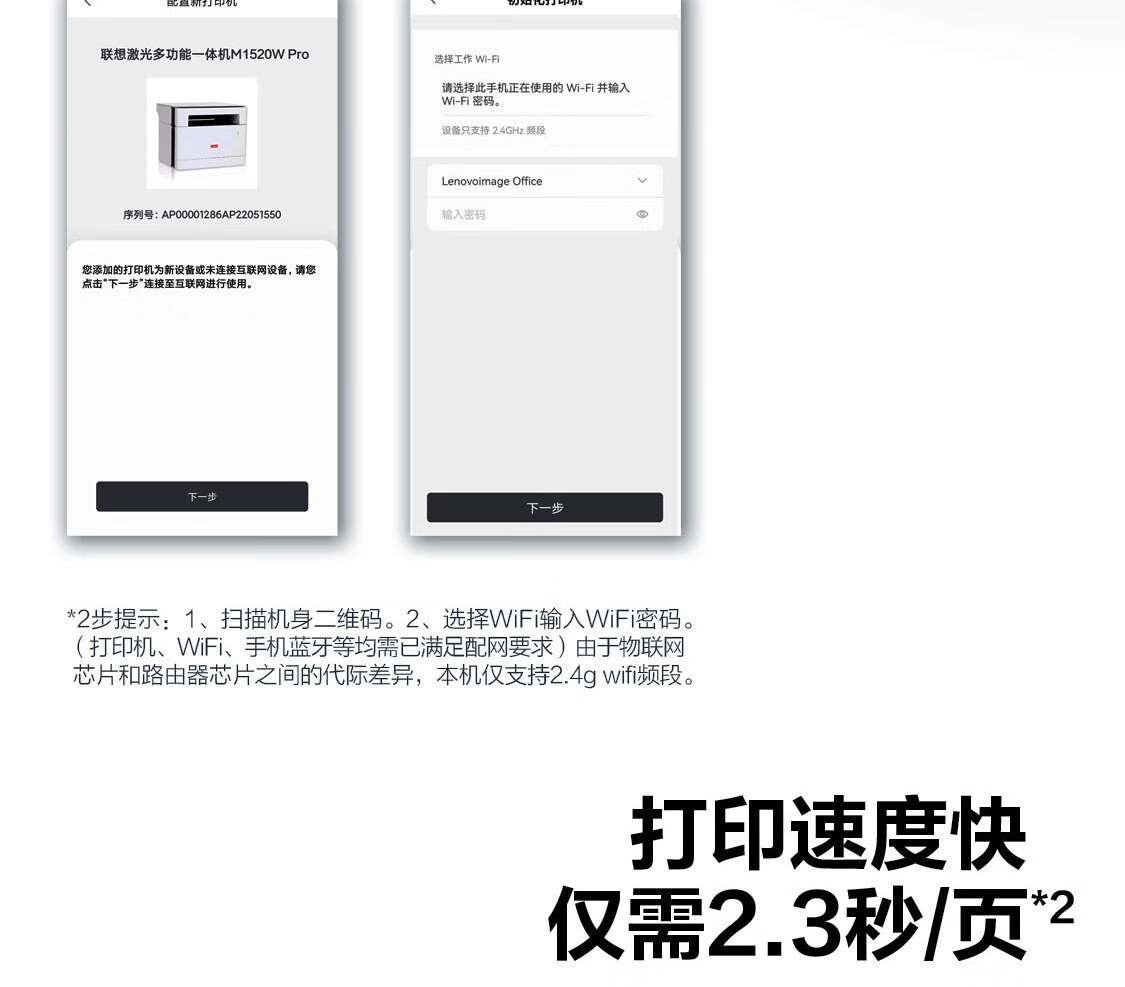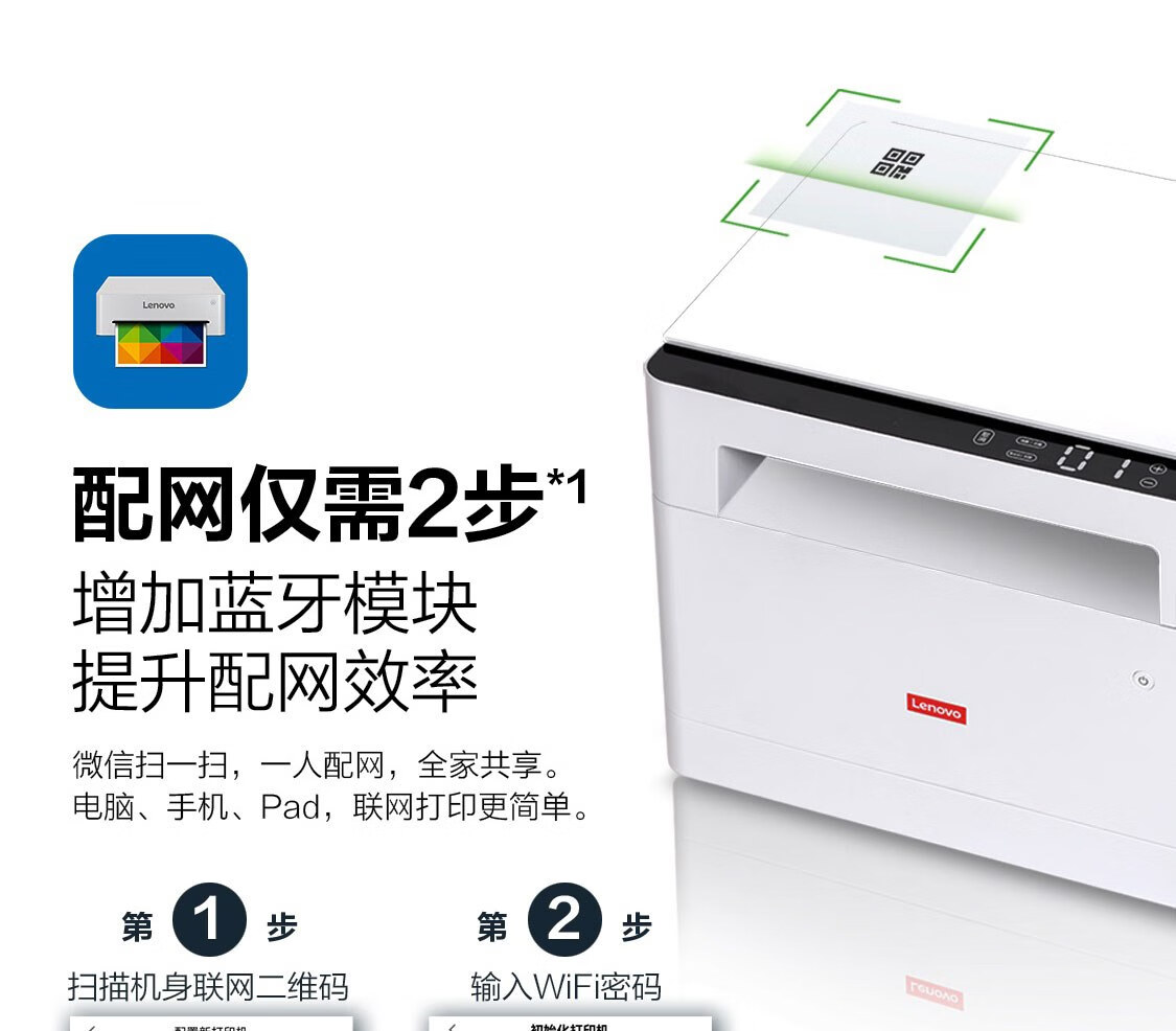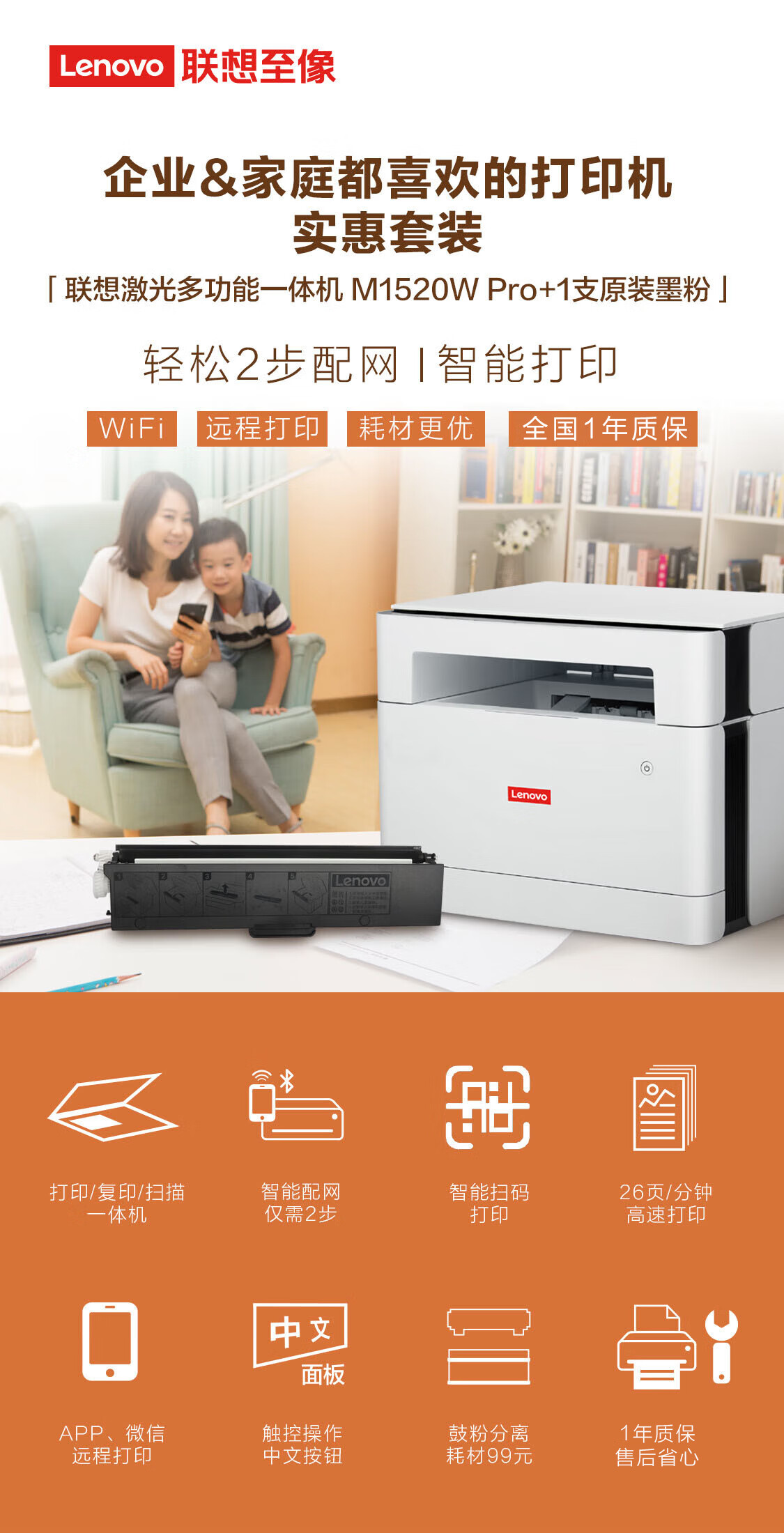 联想(Lenovo)M1520W Pro 黑白激光打印机 打印复印一体机