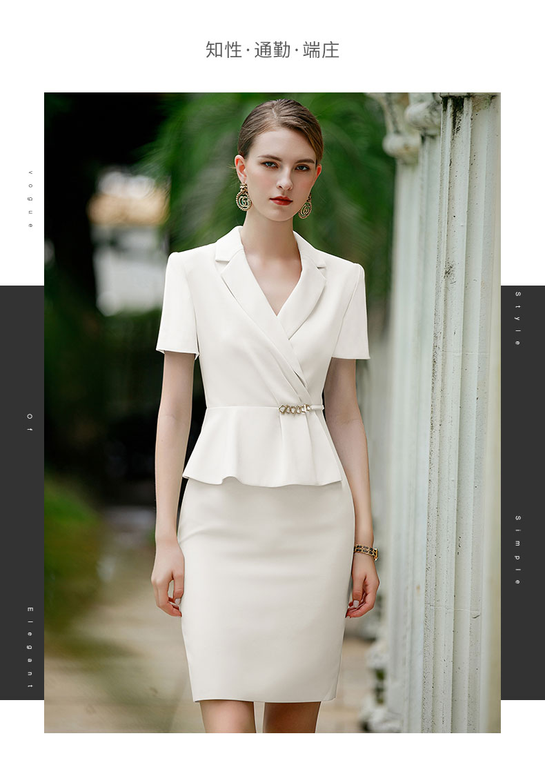 IWY/白色夏季短袖职业连衣裙女假两件薄款透气修身显瘦美容院工作服短袖西装连衣裙Q944