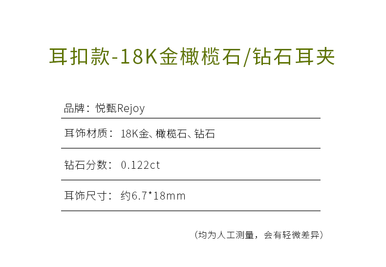 【挚友限定】耳扣款-18K金橄榄石钻石耳夹