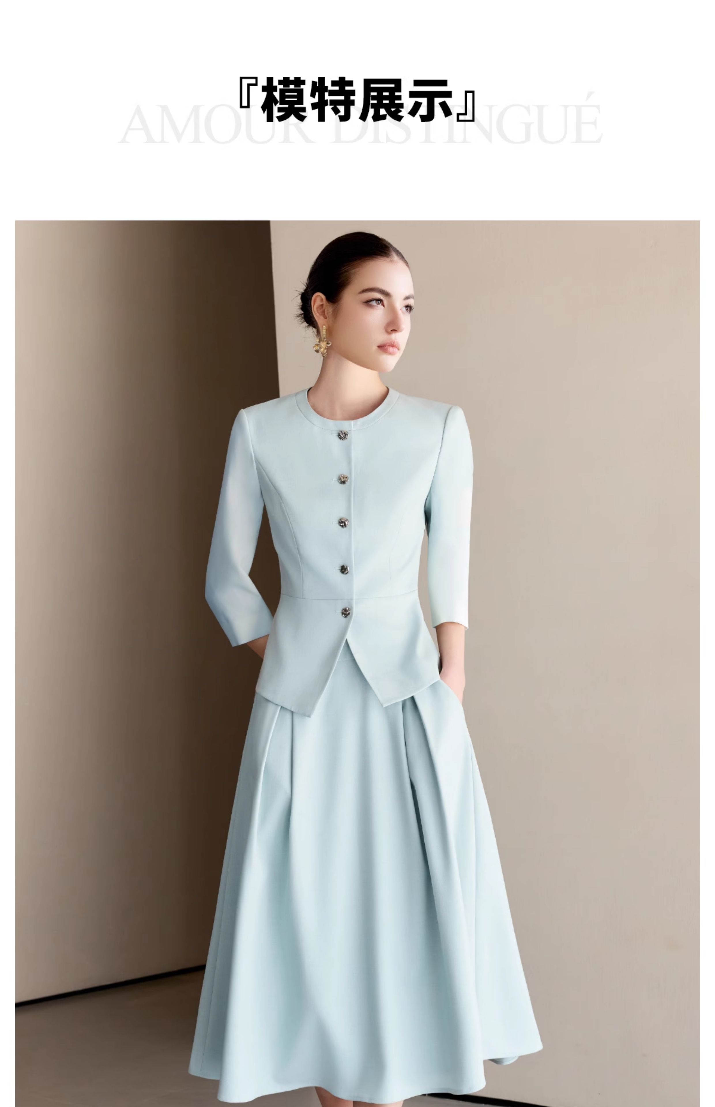 IWY/气质蓝色职业西装套裙女夏季新品高级感上镜两件套正装WCS130