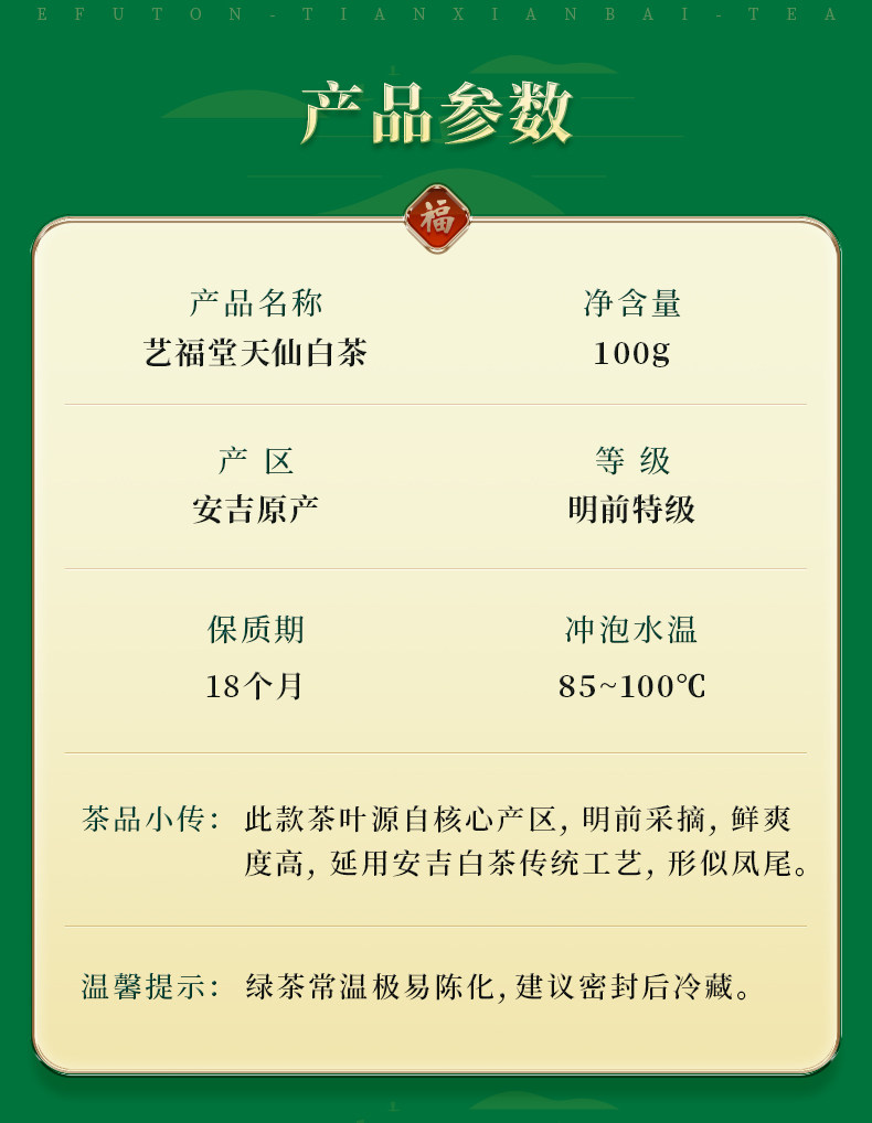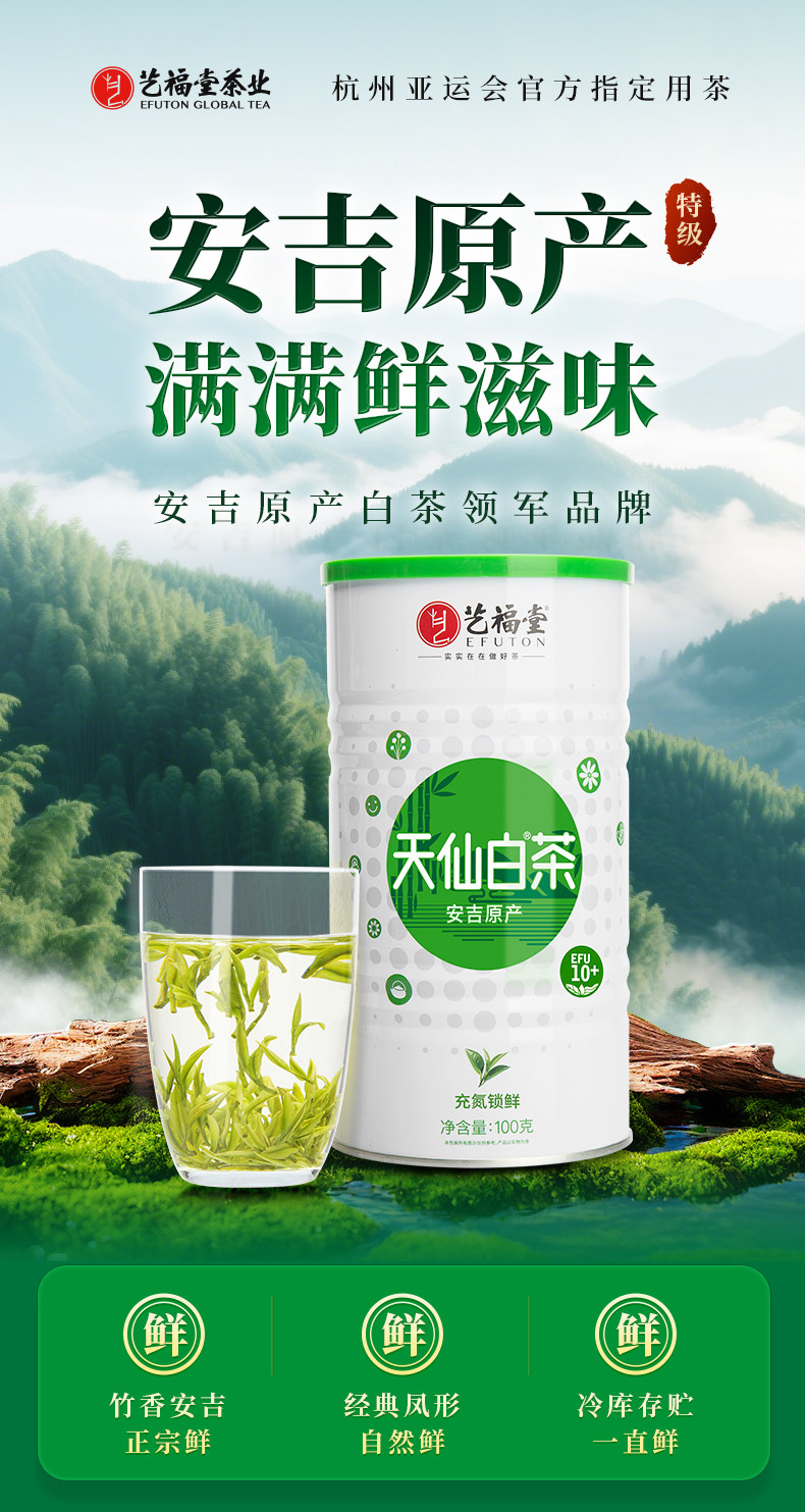 【新茶上市 下单减11,第2件半价送观山杯】艺福堂 明前特级安吉白茶 天仙白EFU10+ 2026新茶 100g/罐