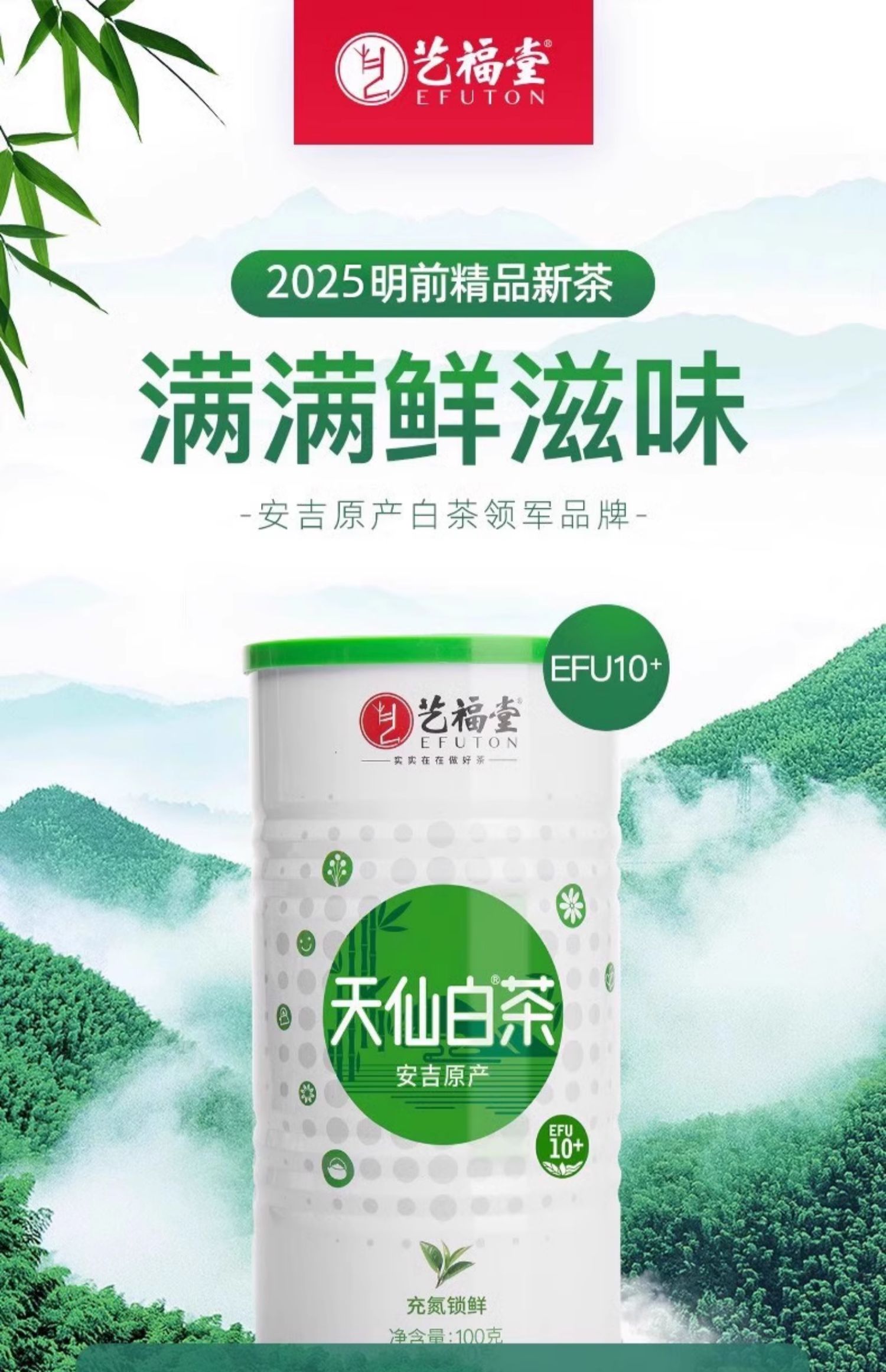 【下单减11,第2件半价送观山杯】艺福堂 明前特级安吉白茶 天仙白EFU10+ 2025新茶 100g/罐