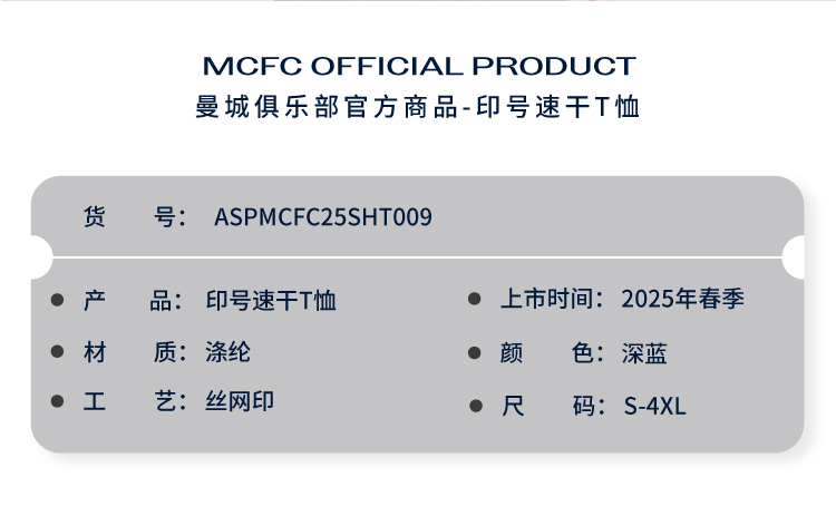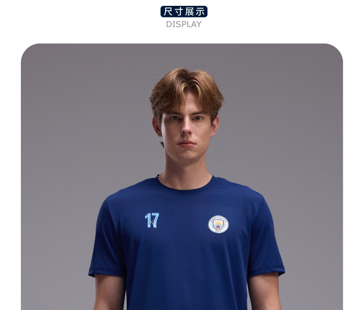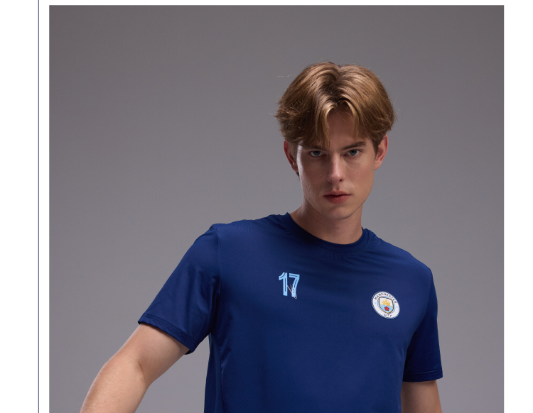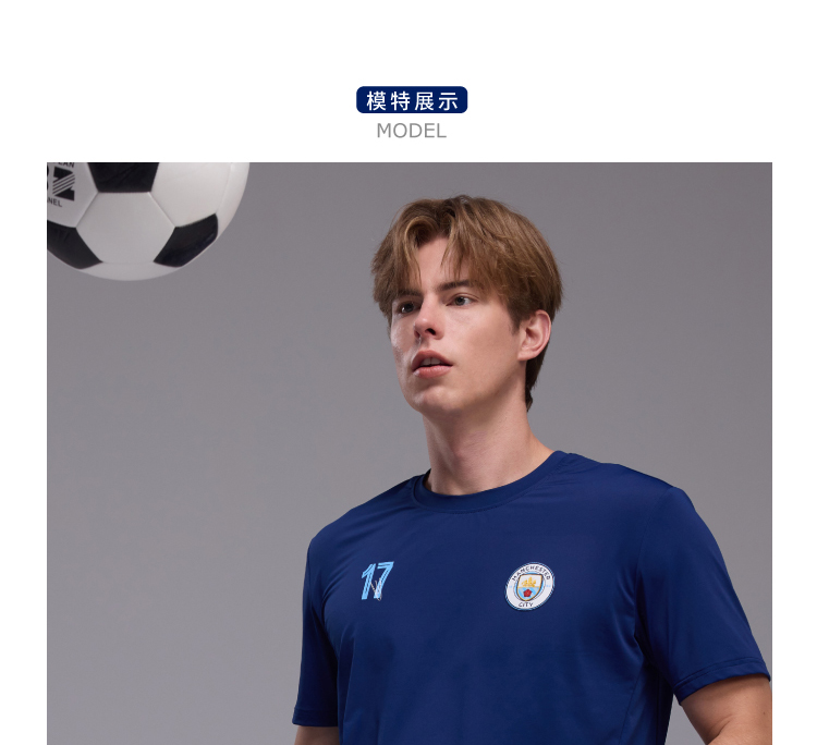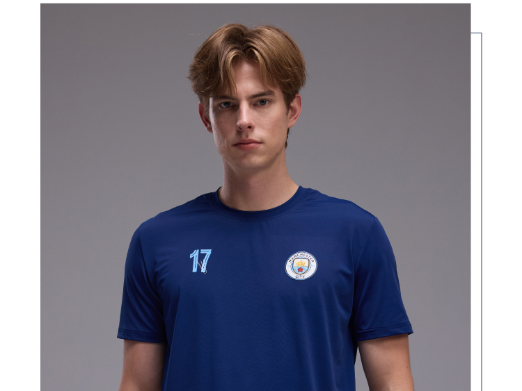 【官方正版】曼城俱乐部 | 深蓝色印号速干T恤 侧边透气网孔面料拼接胶标logo