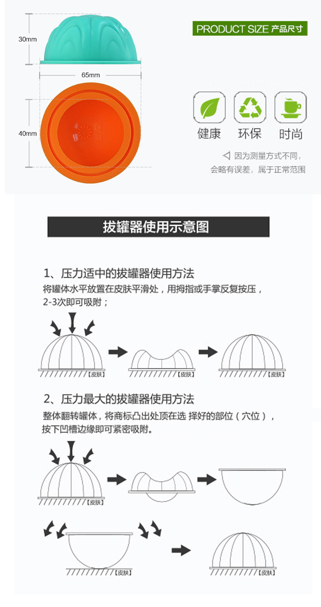 拔罐器中x8:45mm(内径)*65mm(外径)*30mm(高)