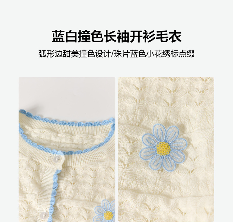 笛莎Deesha 童装女童毛衣2026春新蓝白撞色长袖开衫毛衣