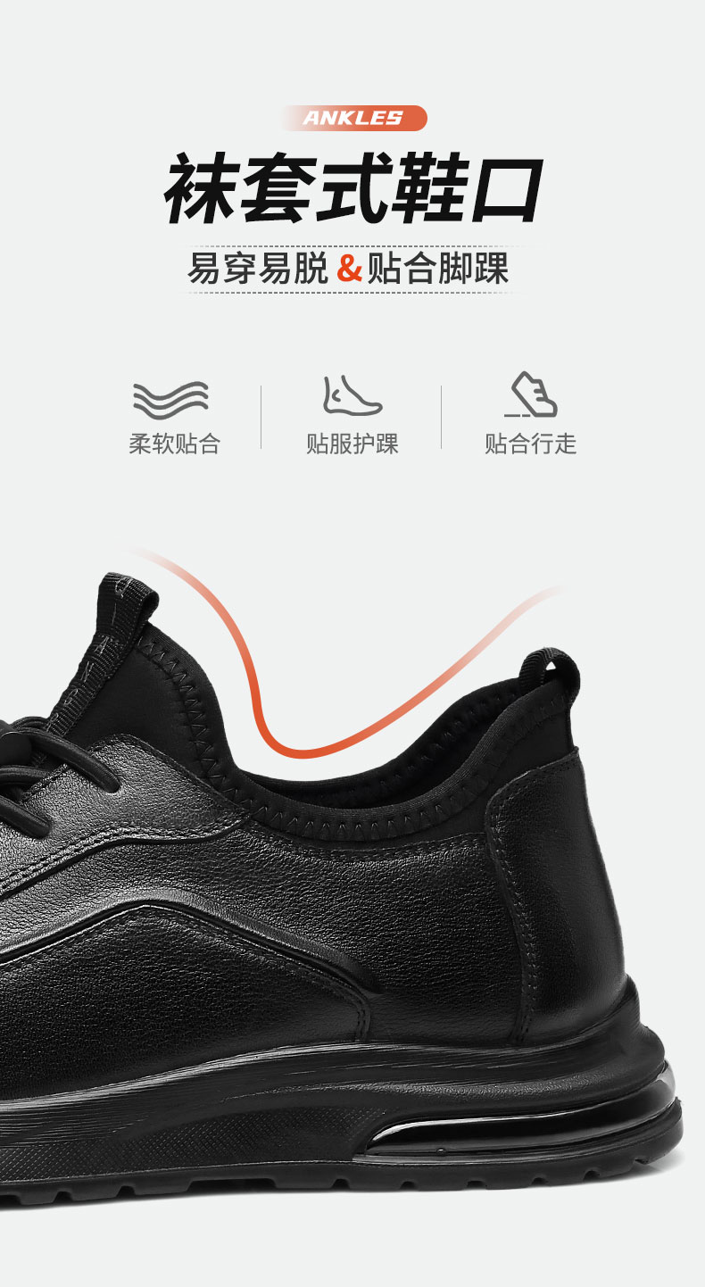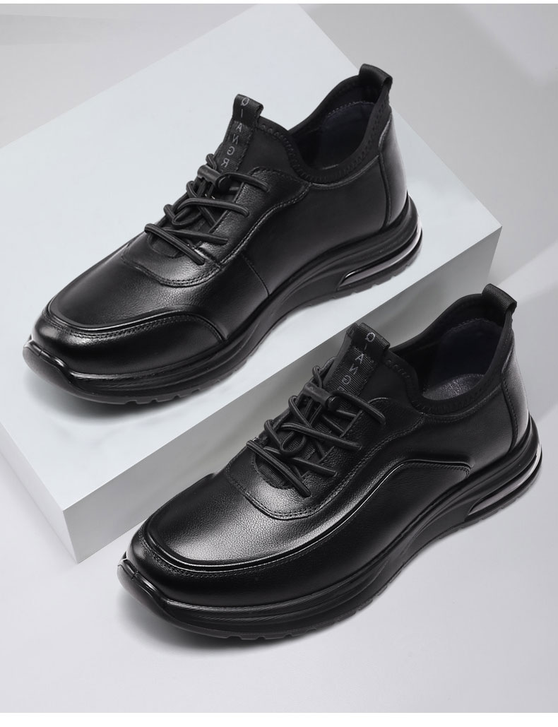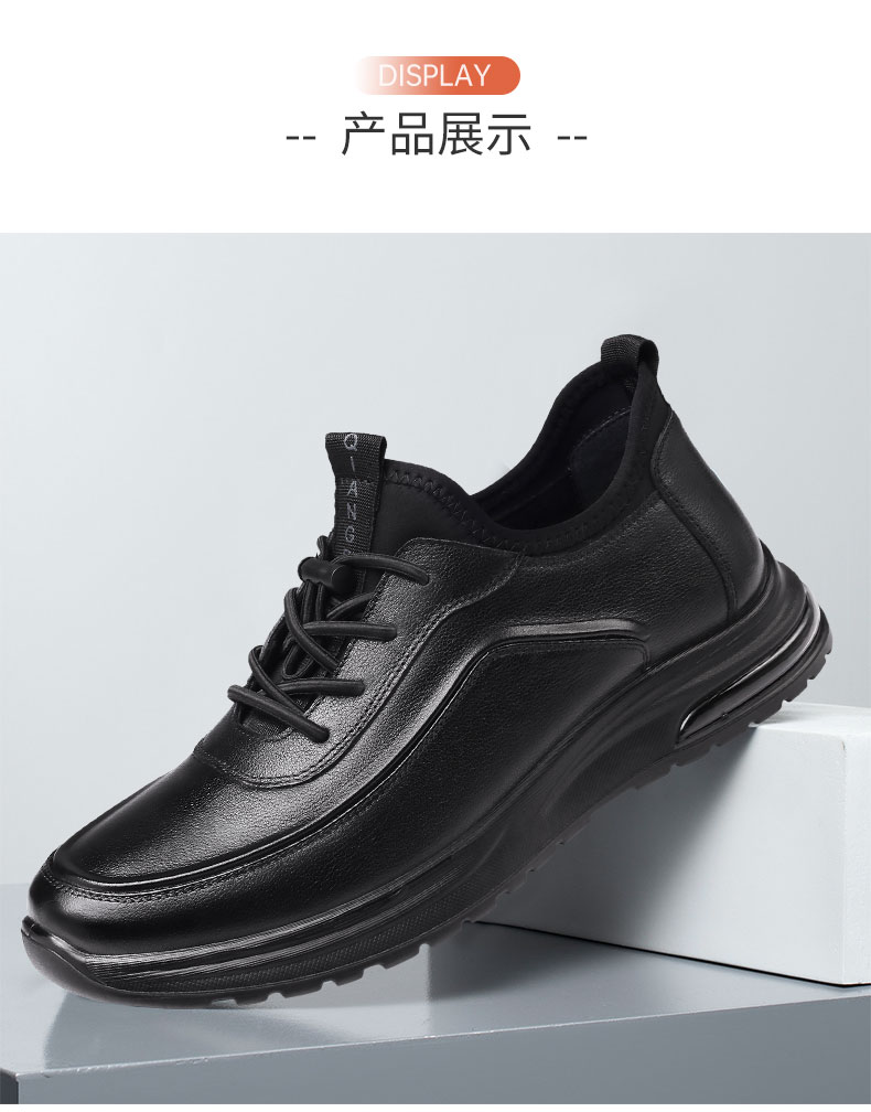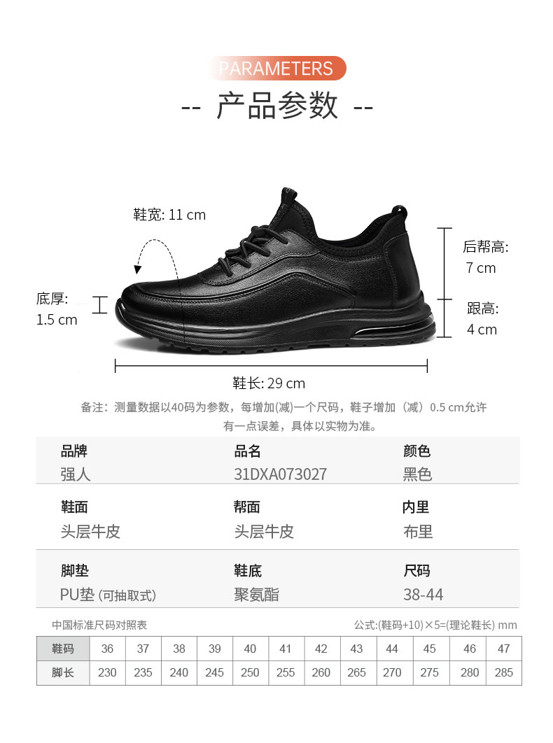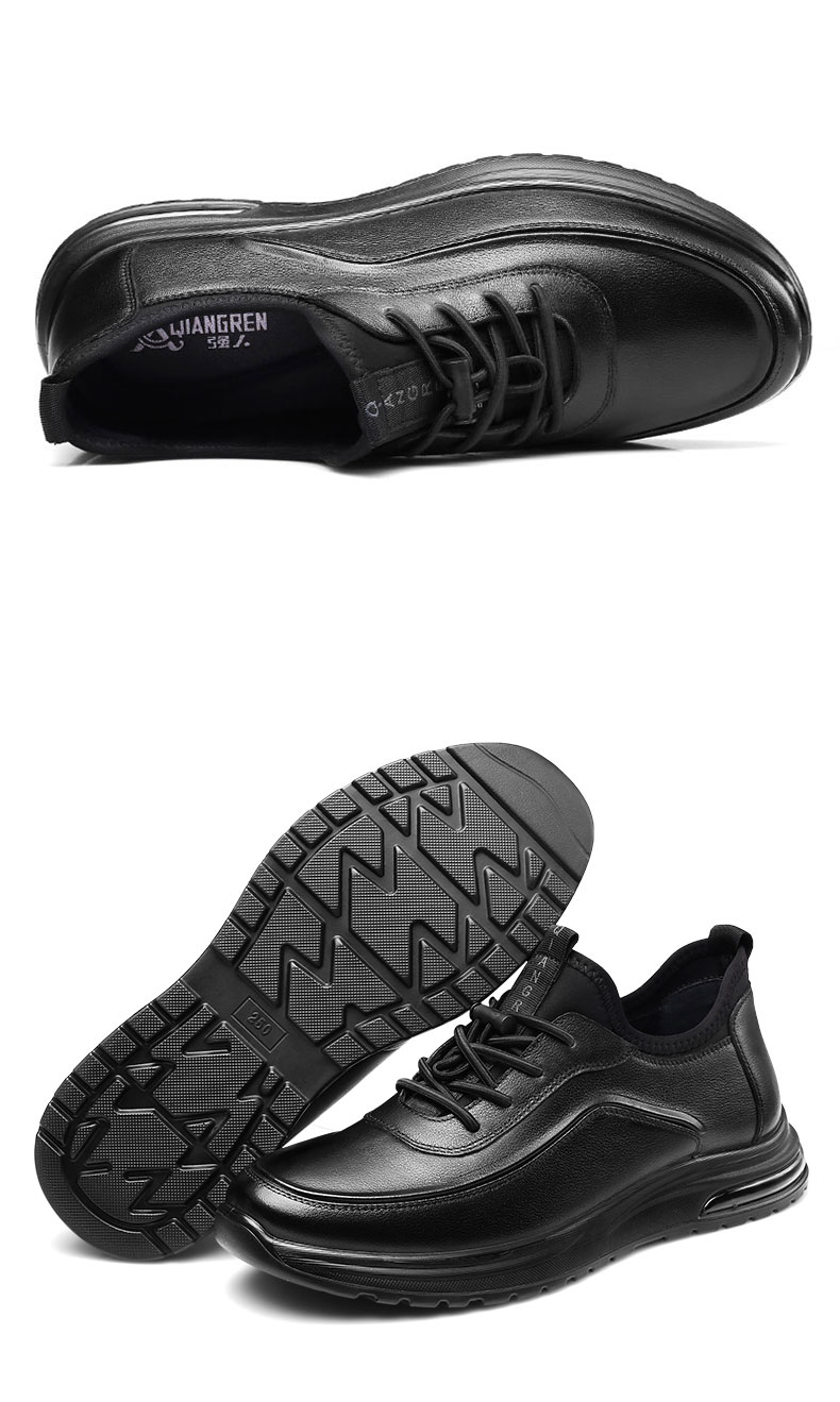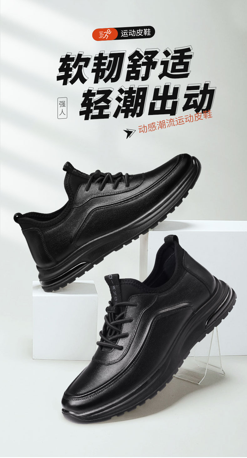 强人3515男鞋休闲皮鞋透气运动跑步鞋2023春季新款旅游鞋黑色