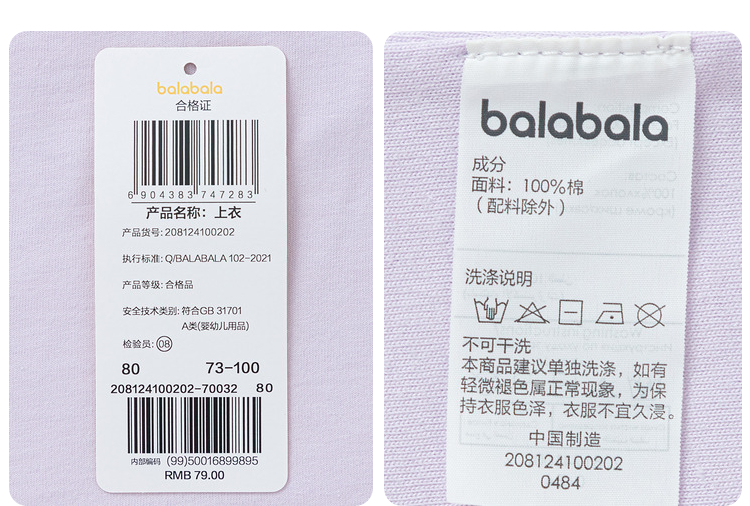 巴拉巴拉宝宝打底衫婴儿长袖t恤女童童装新款简约上衣舒适萌