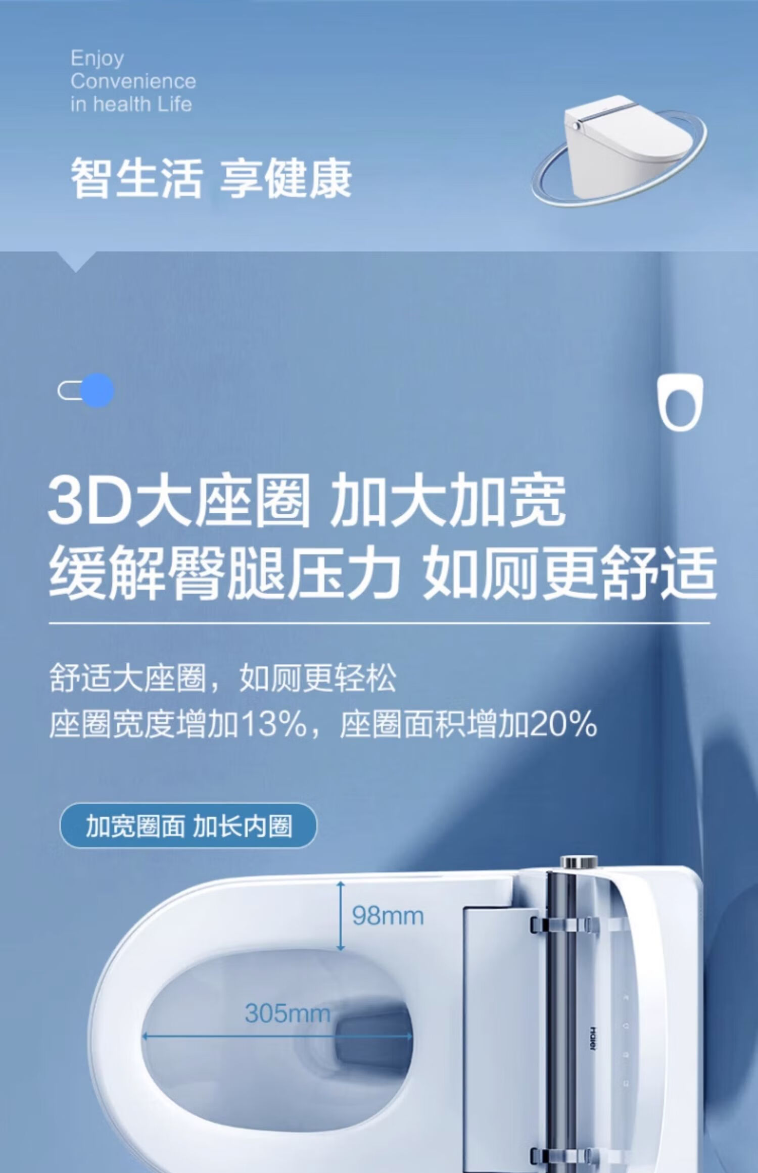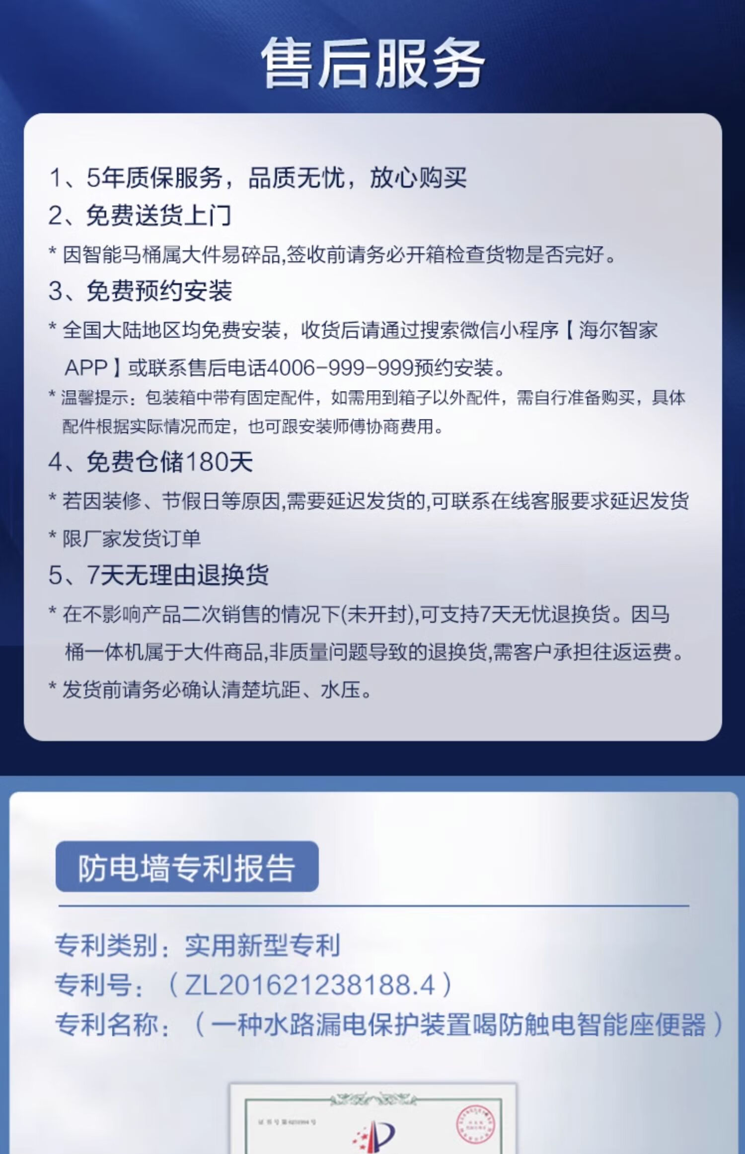 海尔(Haier)智能马桶 无水压限制等离子杀菌款 U型大座圈HF 无水压限制HF-U 详询客服备注坑距