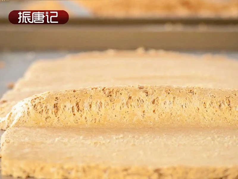 炒熟搅碎的花生与熬好的糖裹在一起就到了这些食材进行质变的时候了,经过反复几次的折叠与压平,不同状态的食材达到了完美的结合,通过反复的折叠与挤压酥糖成坯,经过打条、切块,就到了最后一步:拧层,双手用拇指和食指拿住一条,用力同时向相反的方向转动约6公分,双手再回旋到开始平放的位置,同时再向左右用力把它抻长约2公分。