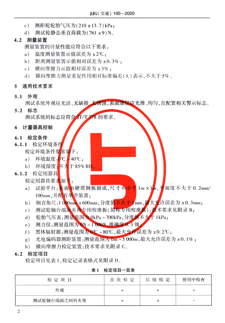 双轮式横向力摩擦系数自动测试系统[JJG(交通)100—2020]