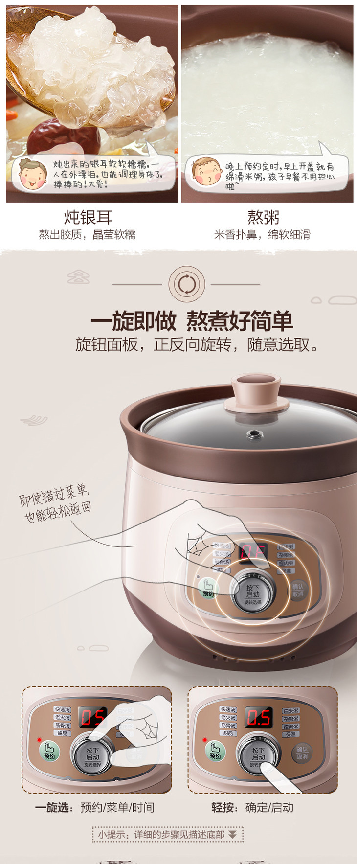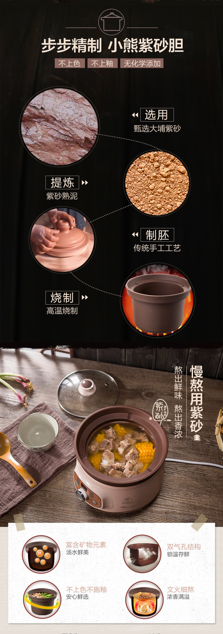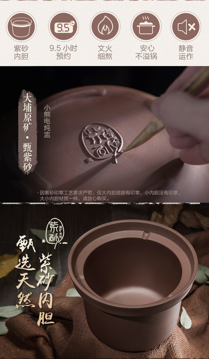 小熊(Bear) 电炖锅 紫砂煲电炖盅电砂锅BB熬粥煮粥煲粥宝宝辅食煲汤锅 DDG-D20T5 2L