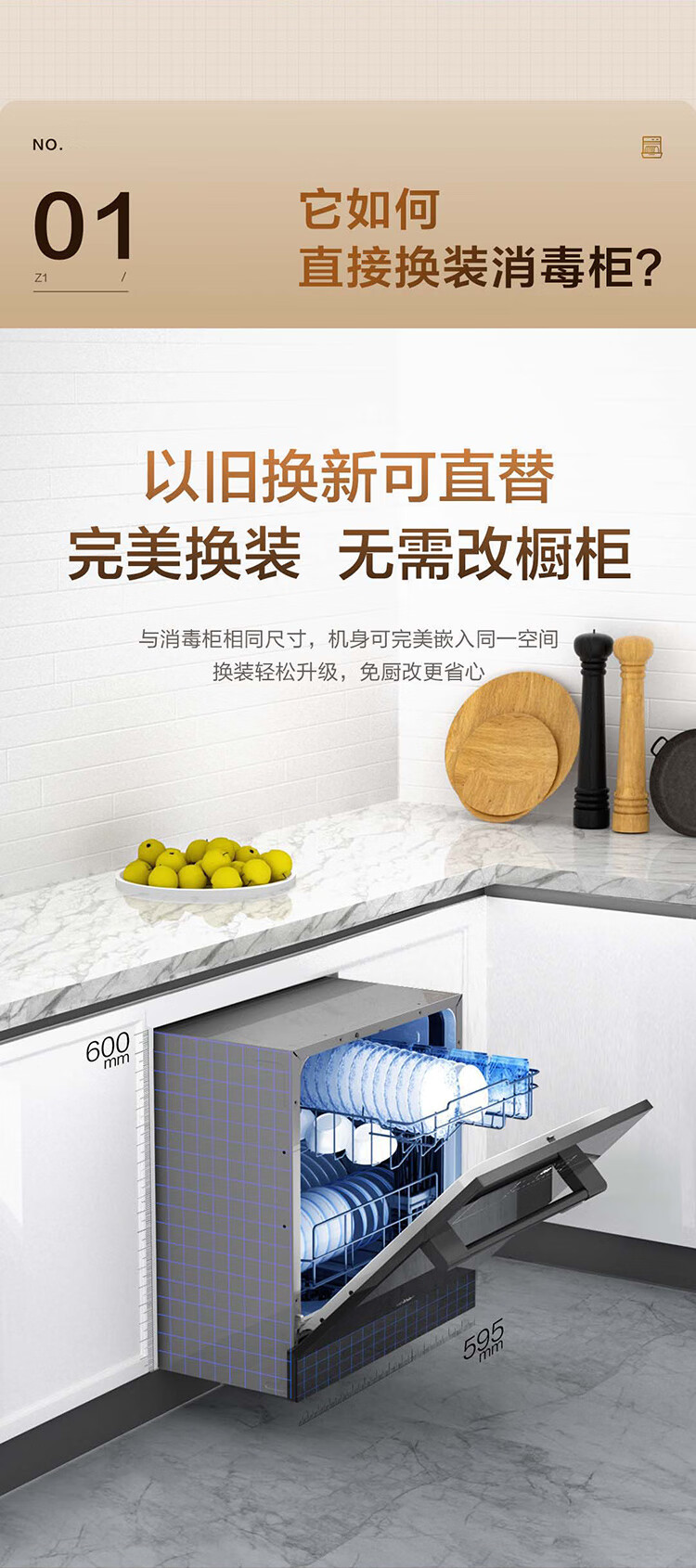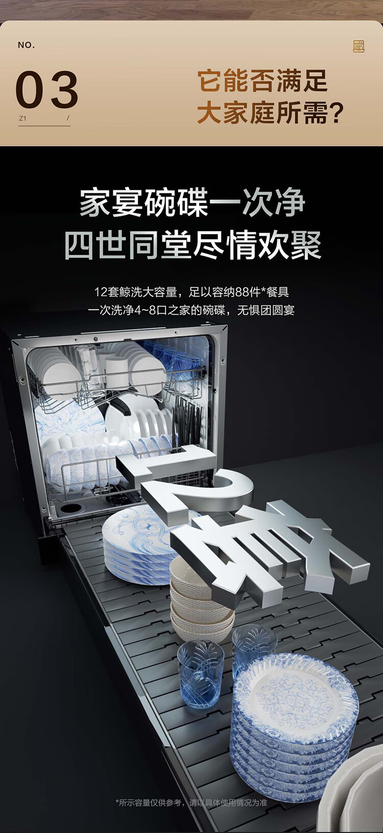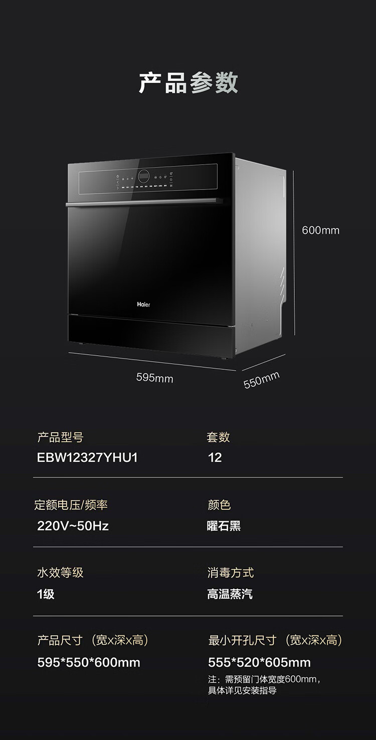 【超级新品】海尔(Haier)12套嵌入式壁嵌洗碗机焕新家Z1(EBW12327YHU1)