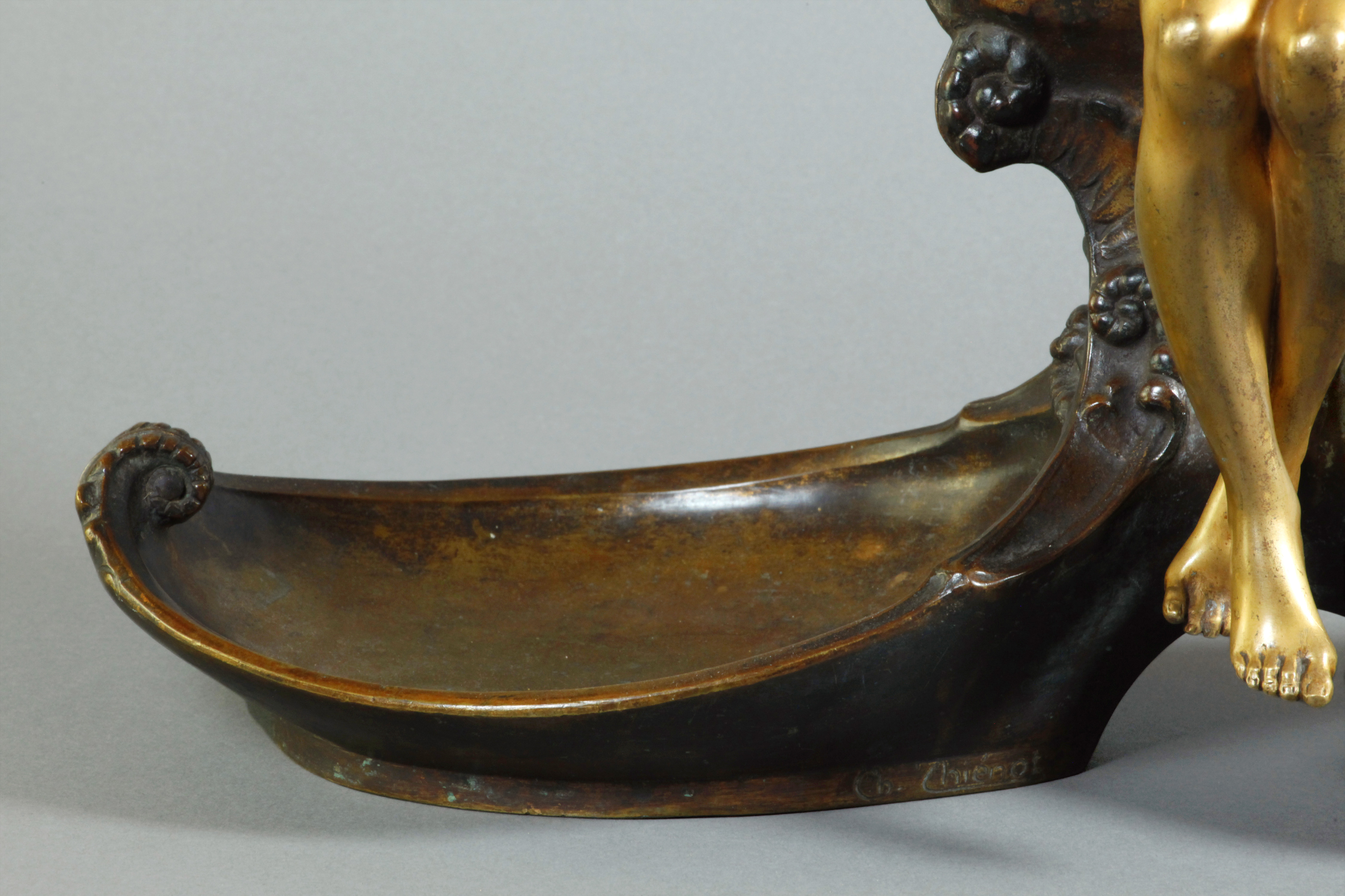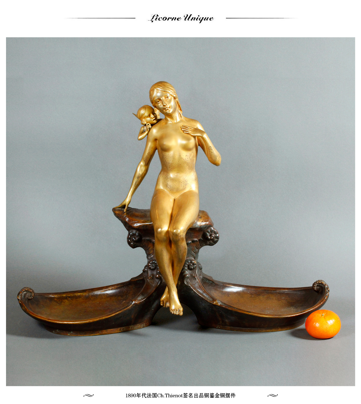 独角鹿西洋古董1890年代法国Ch.Thienot签名出品铜鎏金铜摆件