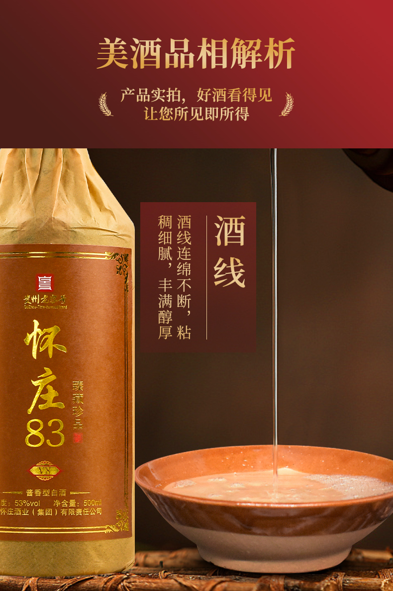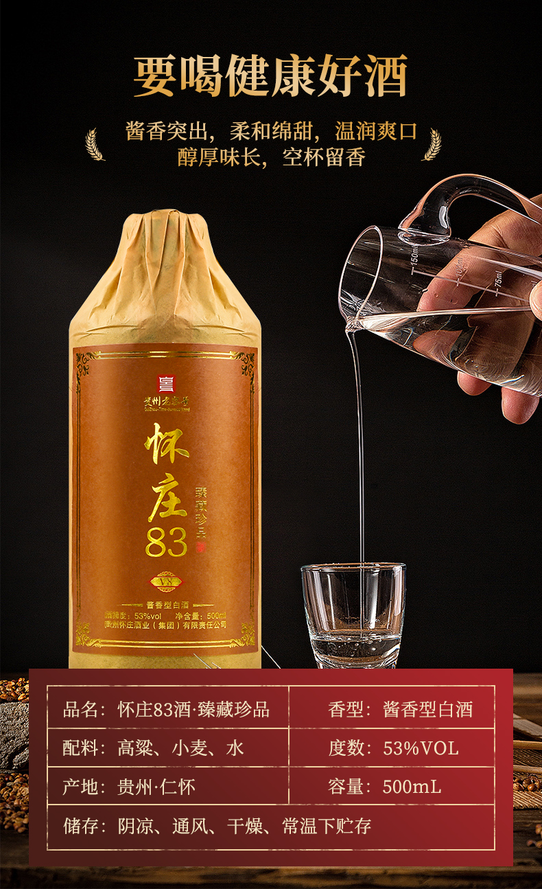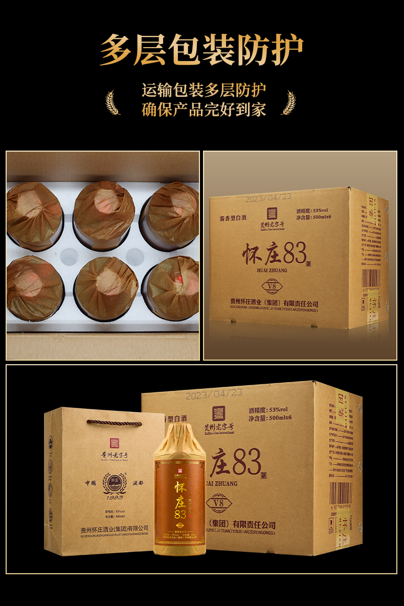 怀庄83·V8 酱香型白酒 53度 500mL*6瓶整箱装