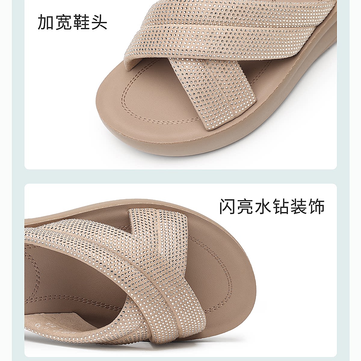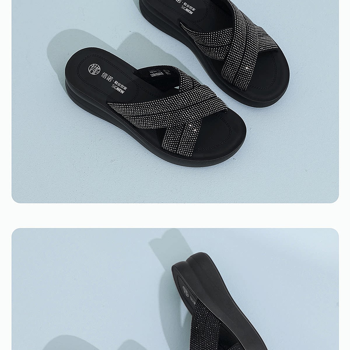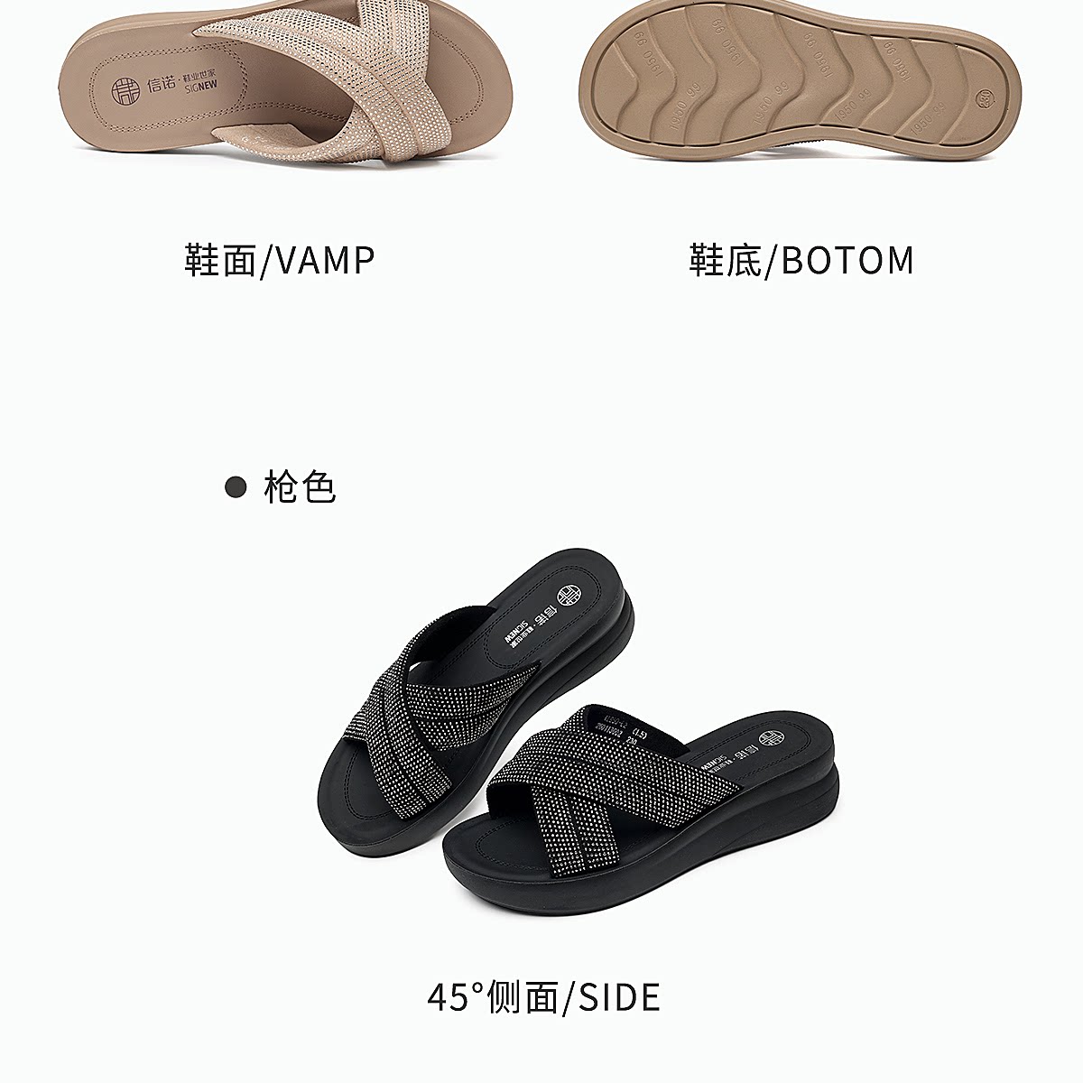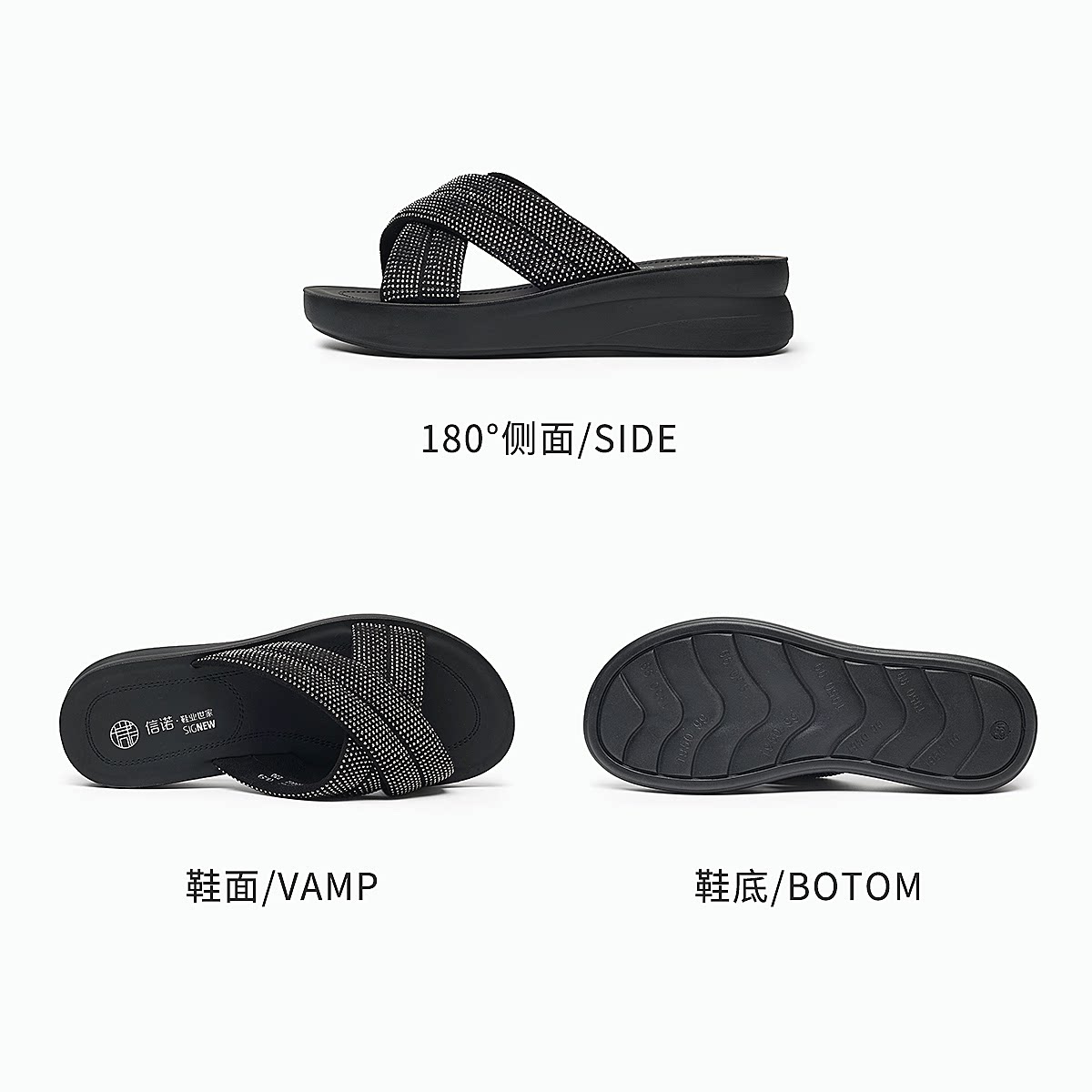 信诺妈妈鞋时尚水钻一字拖女外穿软底舒适厚底凉拖鞋2026夏季新款6L950-62