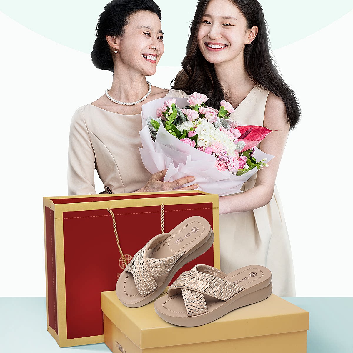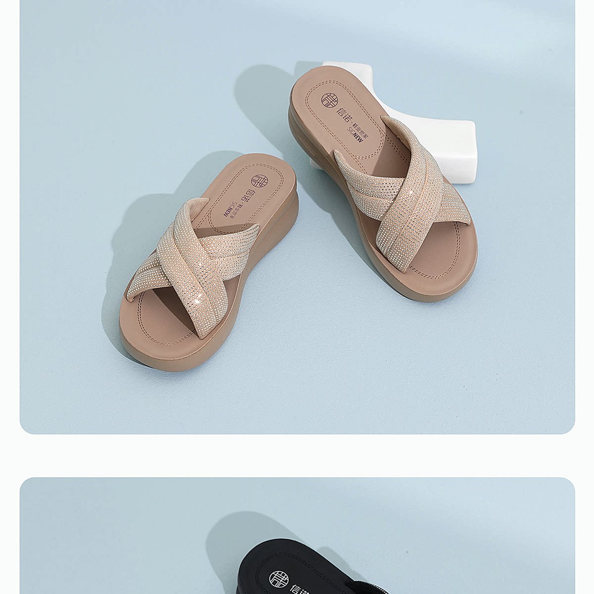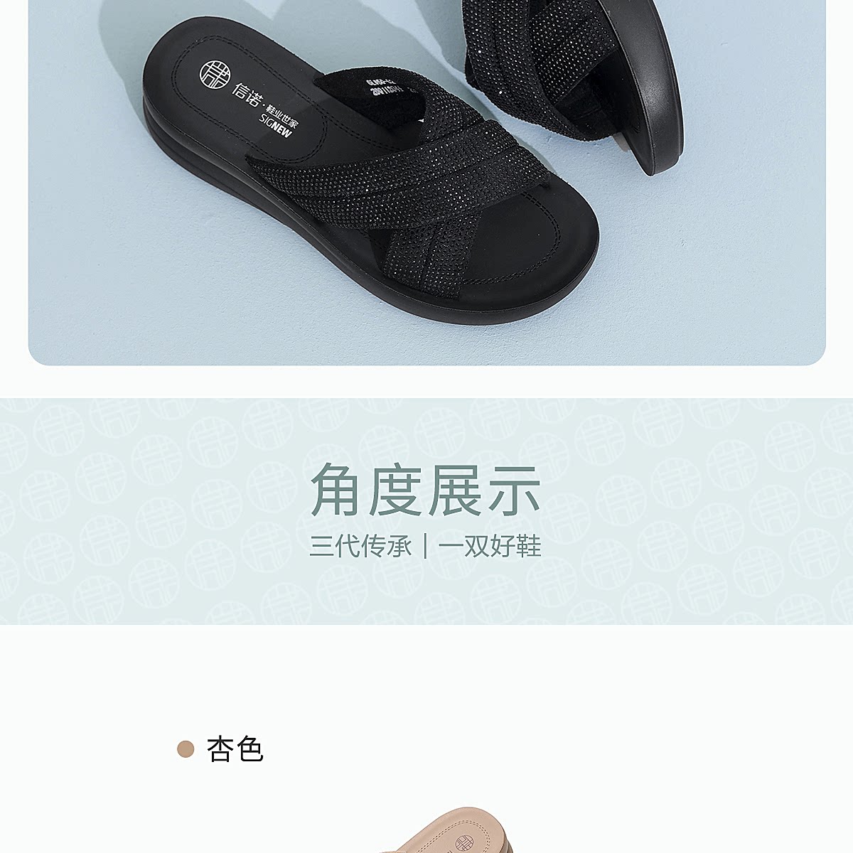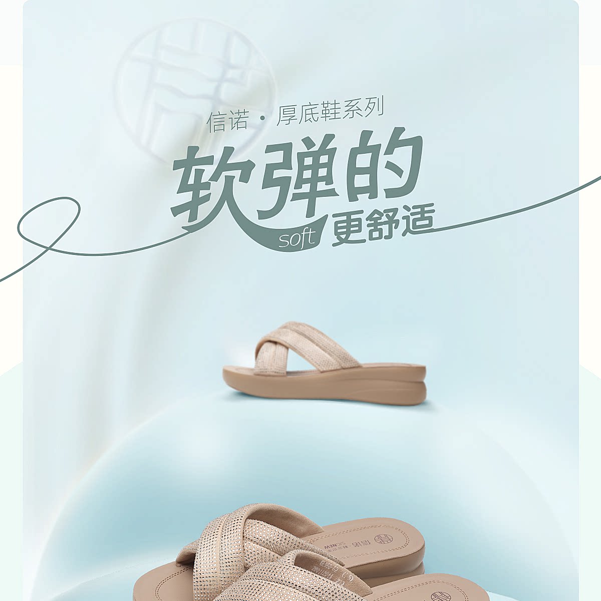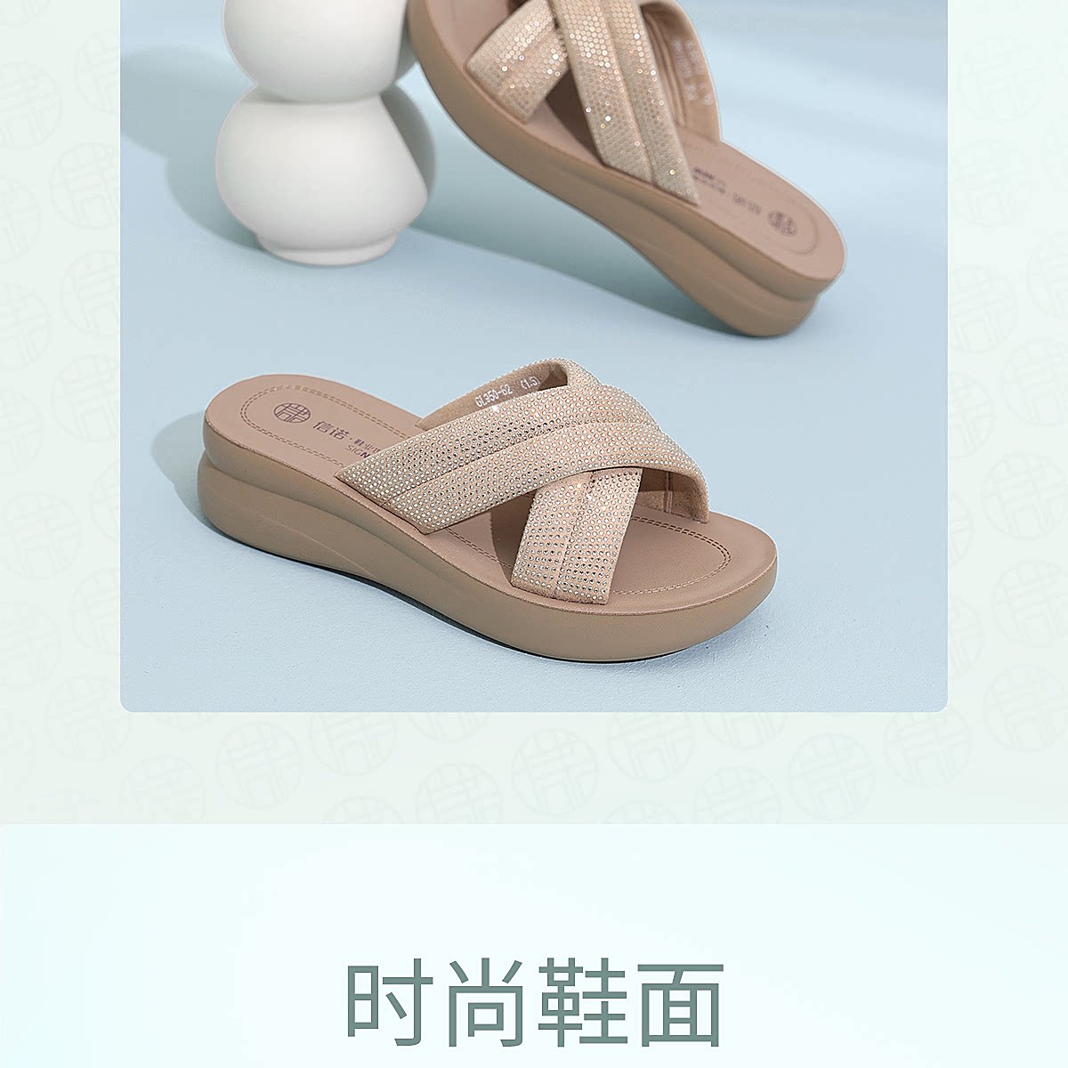 信诺妈妈鞋时尚水钻一字拖女外穿软底舒适厚底凉拖鞋2026夏季新款6L950-62