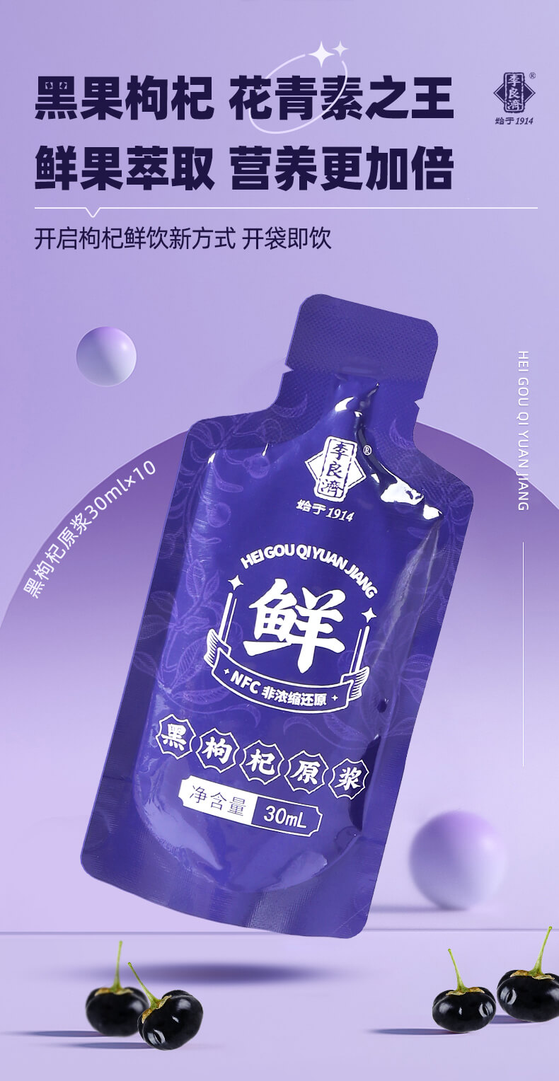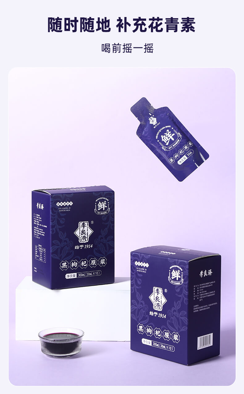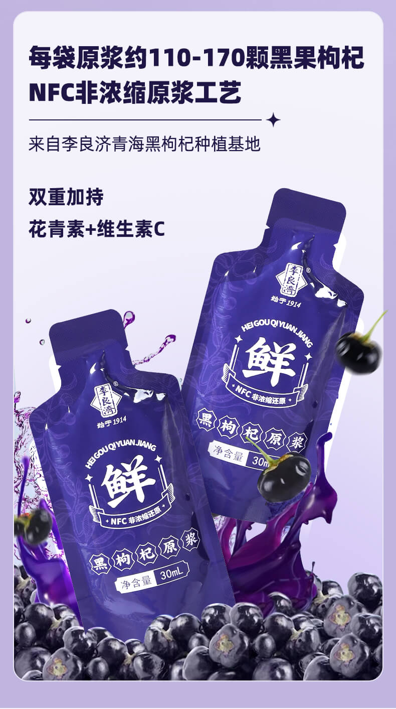 【官方直发】李良济黑枸杞原浆 30ml*10袋/盒【原果鲜榨富含花青素】