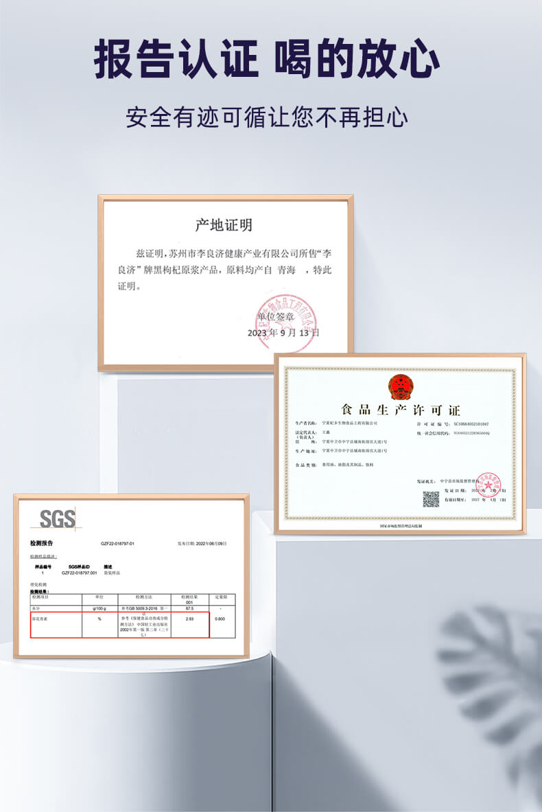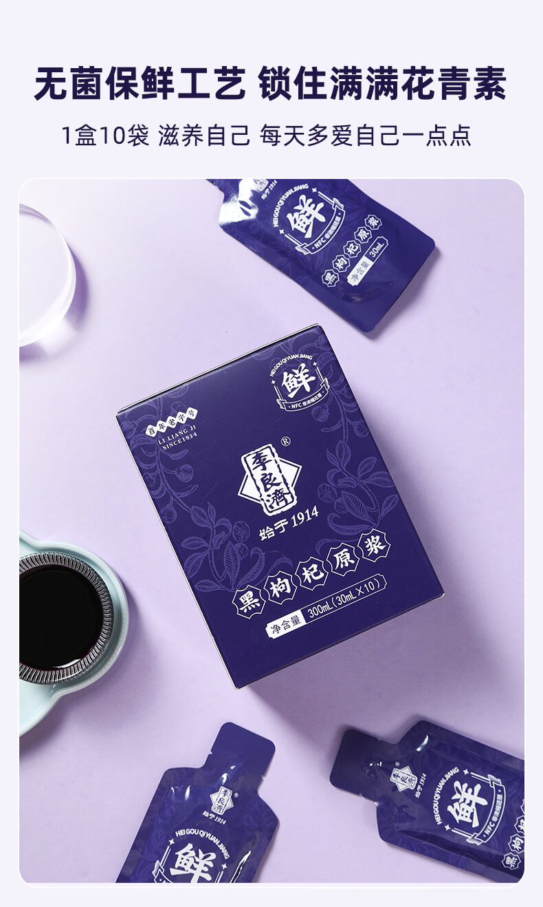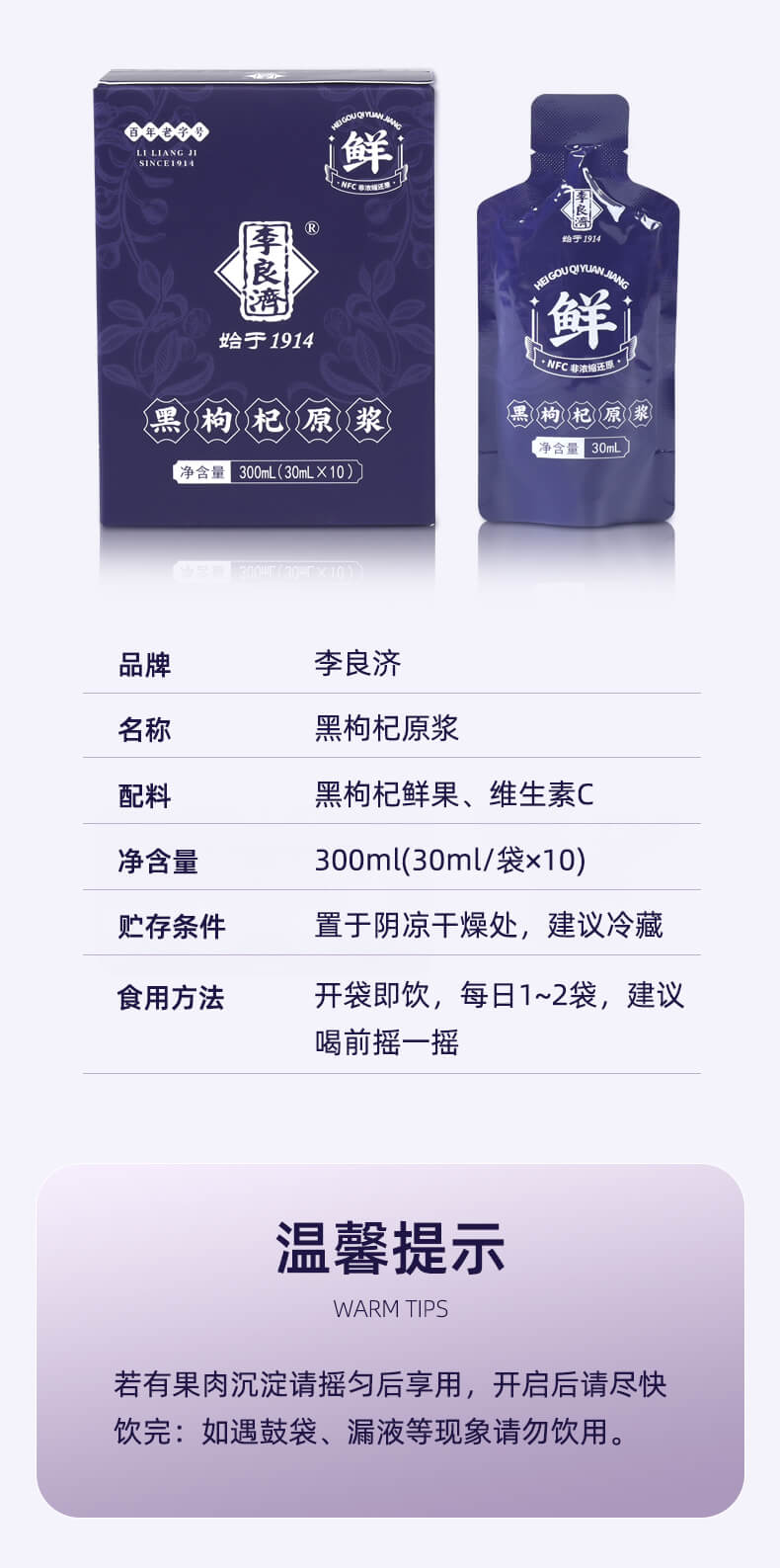 【官方直发】李良济黑枸杞原浆 30ml*10袋/盒【原果鲜榨富含花青素】