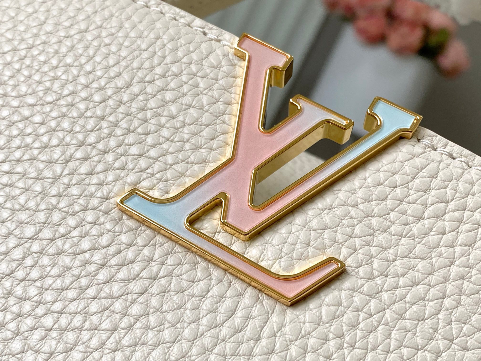 秋冬特惠💰1700 渠道级LV 新品 te级LV 全套包装 M23082/M48865七夕款 本款Capucines手袋出自 Milky Way系列 为情人佳节呈献专属勤力臻礼 Taurillon皮革浸染柔美色调 金属件的耀目光芒和彩虹渐变映衬雅致对比 可拆卸链条和皮革肩带方便肩背或斜挎 Size:27 * 18 * 9 cm
