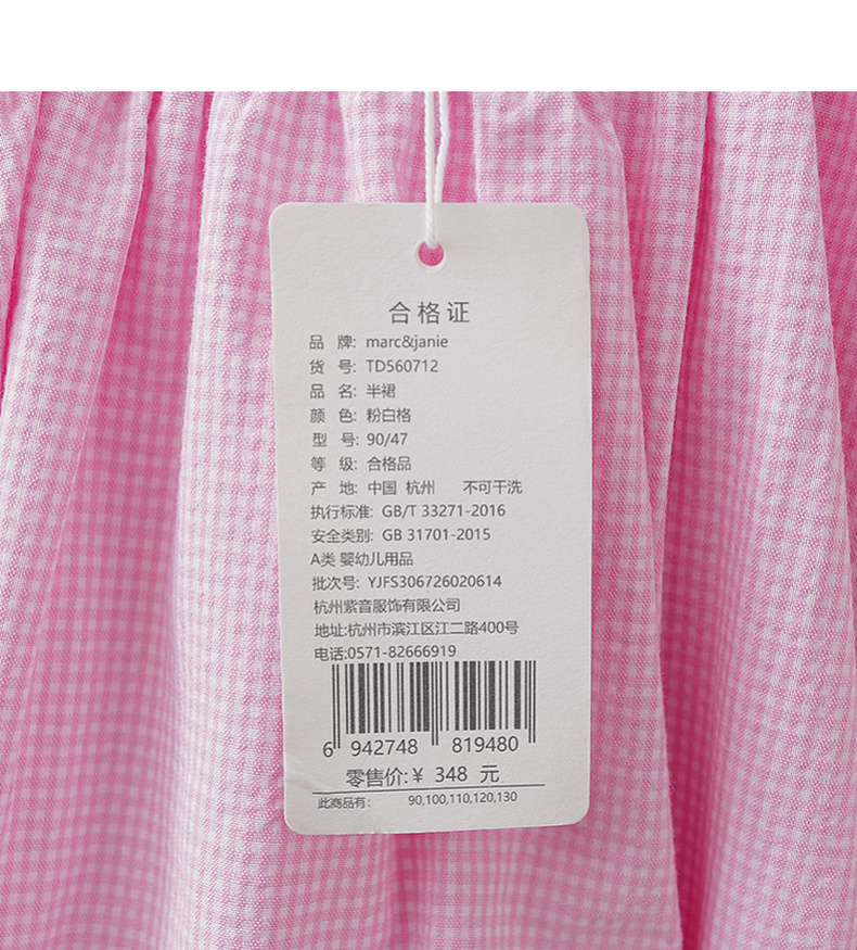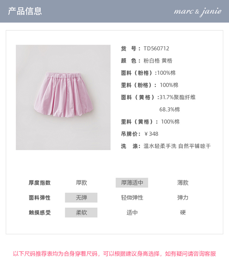 马克珍妮春日花苞女童格纹半裙2026年夏装新款560712