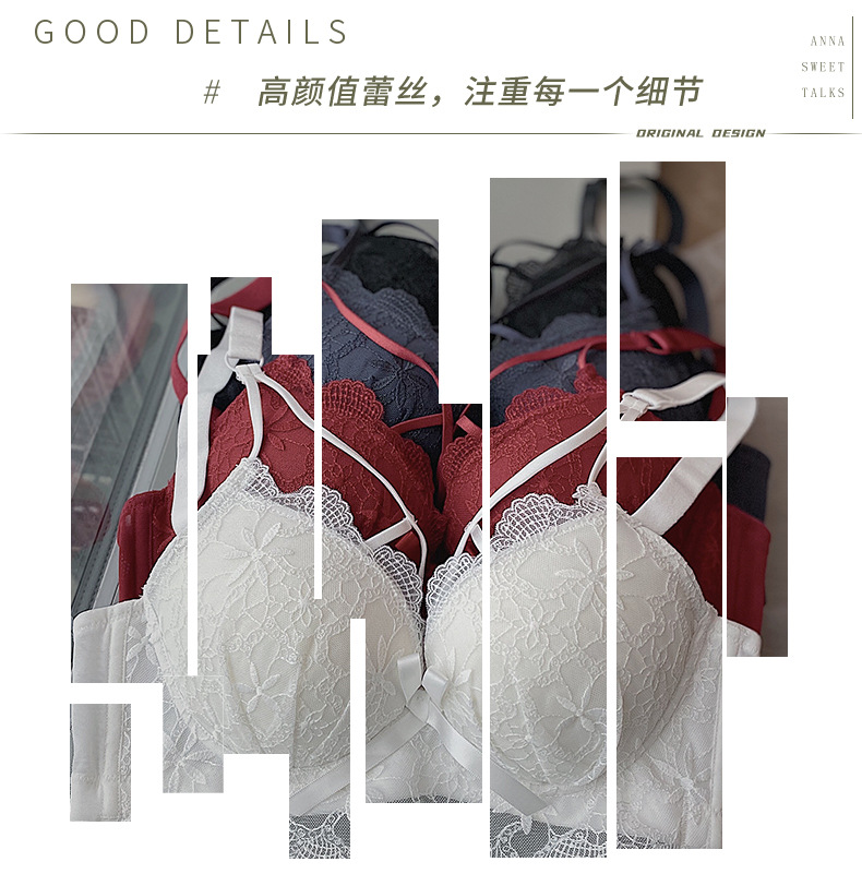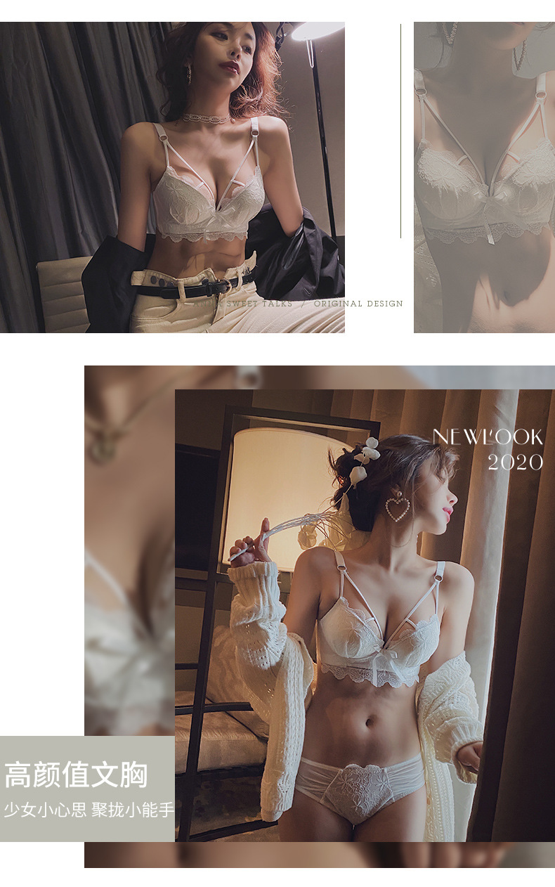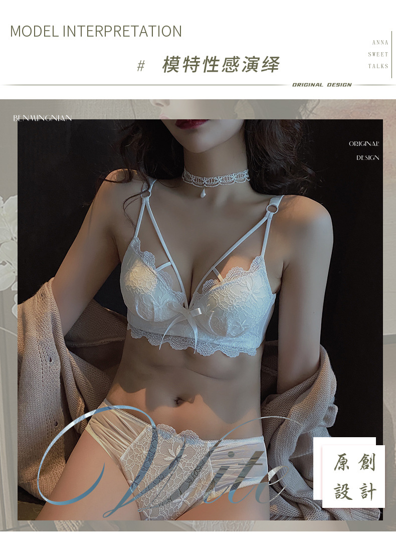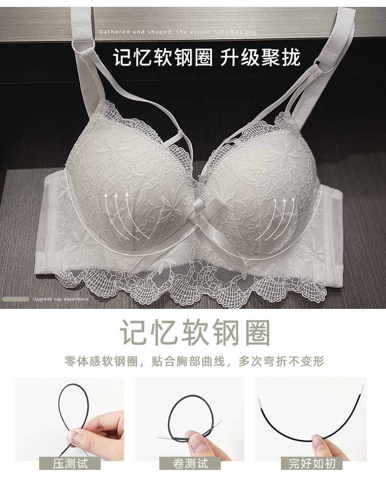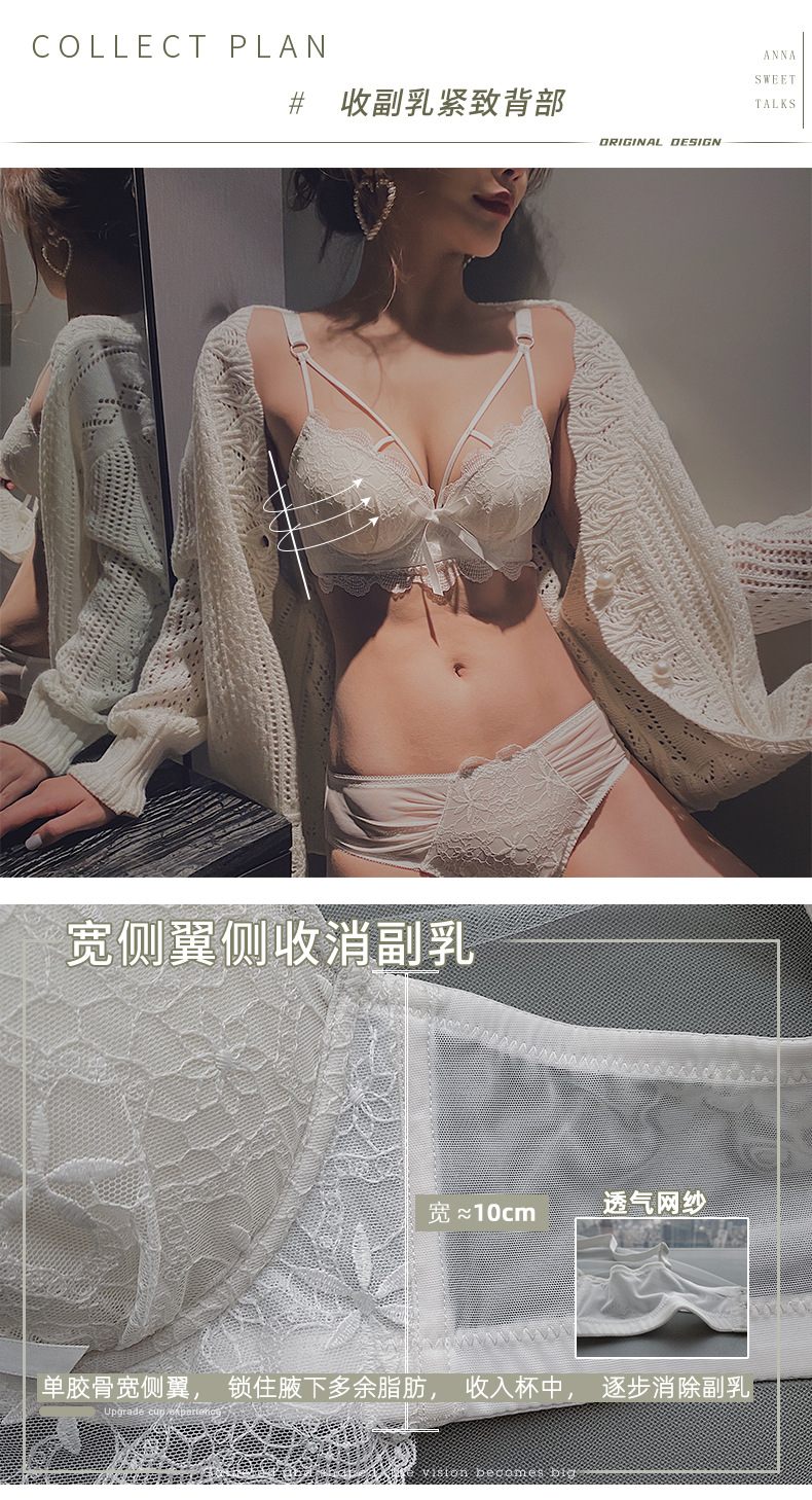 黛唯梵白色内衣套装女性惑夏季小胸聚拢文胸收副乳防下垂蕾丝性感文胸罩