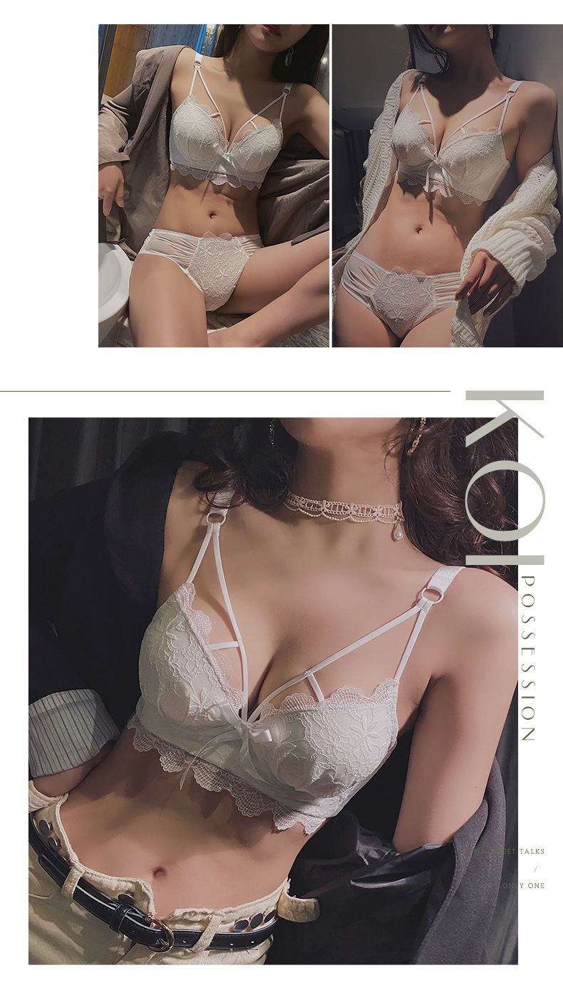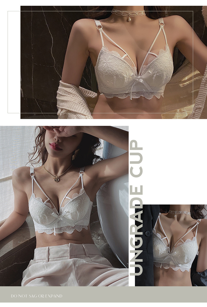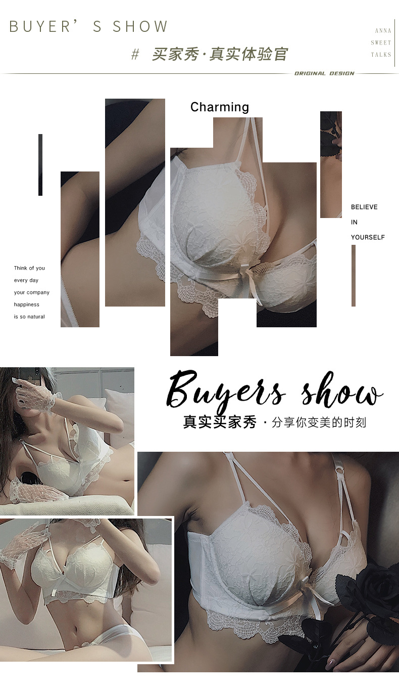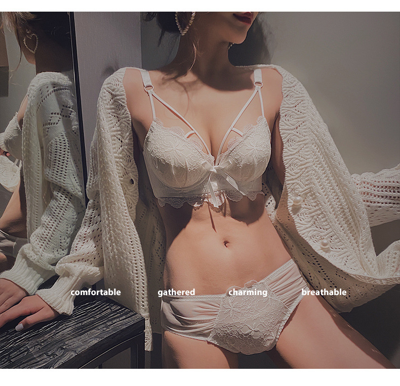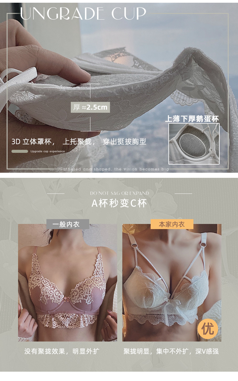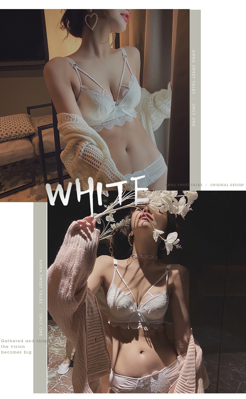 黛唯梵白色内衣套装女性惑夏季小胸聚拢文胸收副乳防下垂蕾丝性感文胸罩