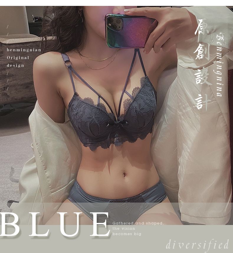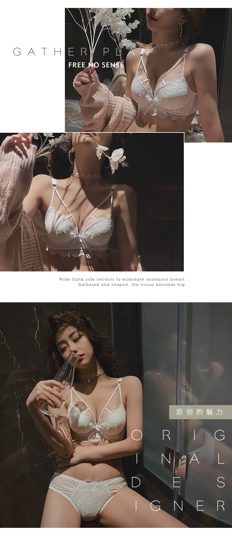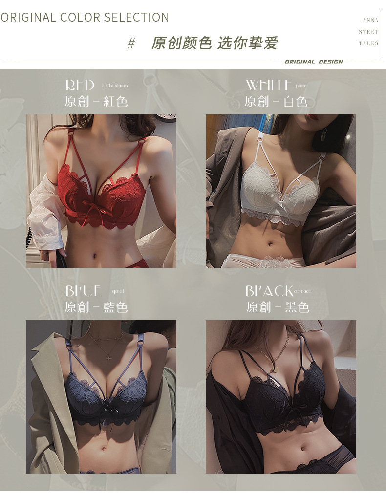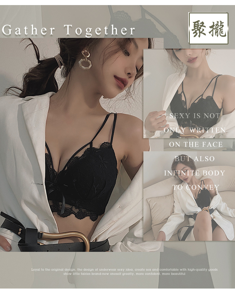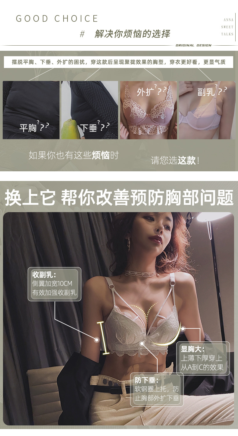 黛唯梵白色内衣套装女性惑夏季小胸聚拢文胸收副乳防下垂蕾丝性感文胸罩